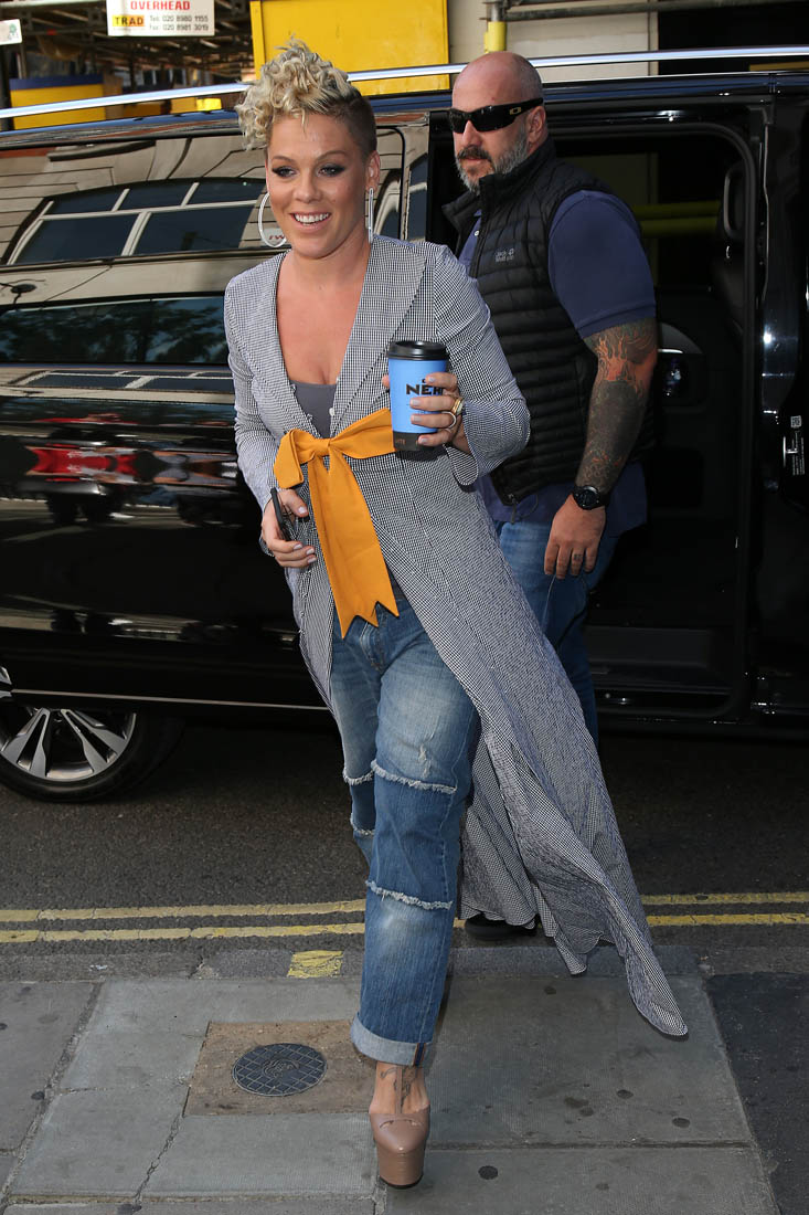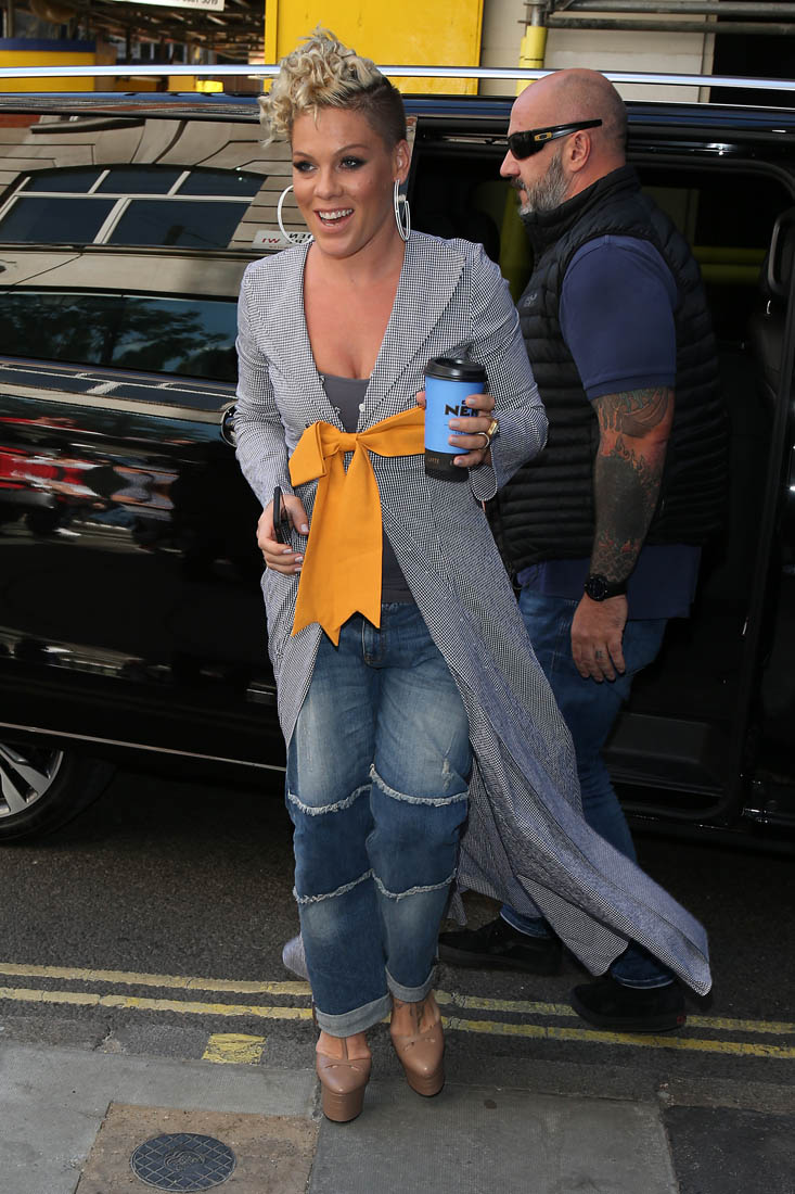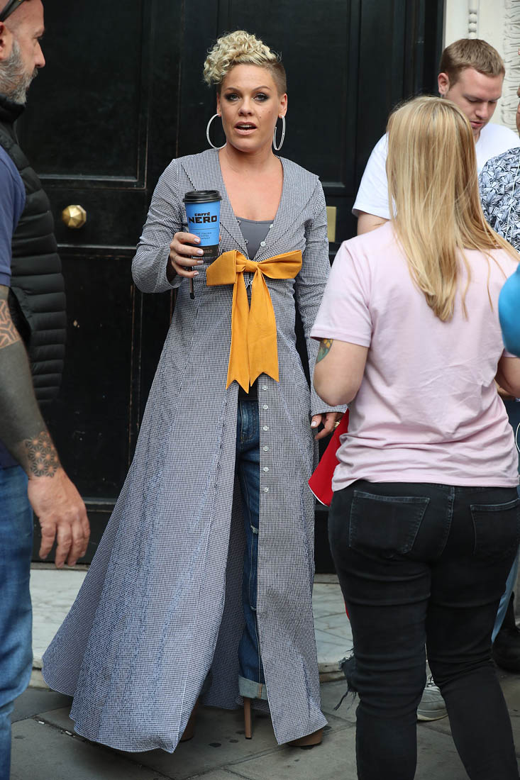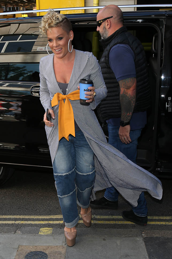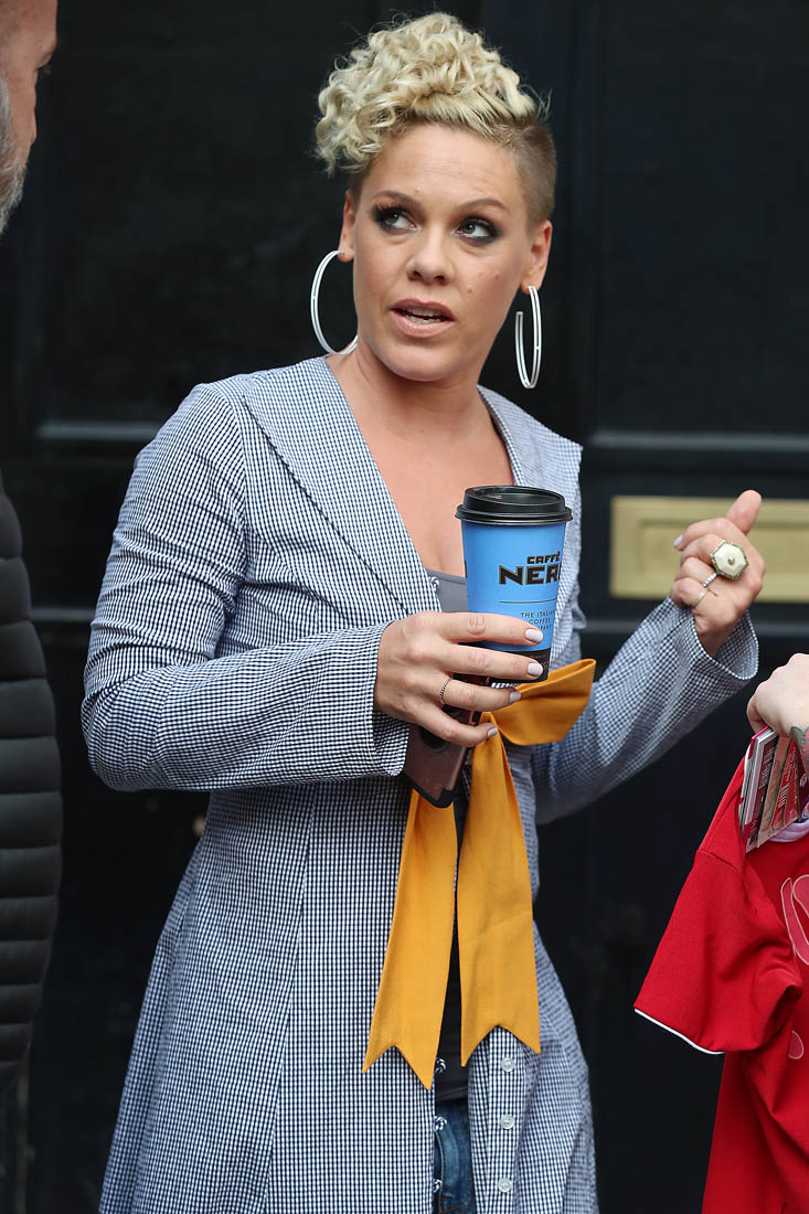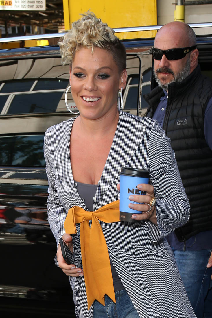 Attached - Pink promoting What About Us in London yesterday.