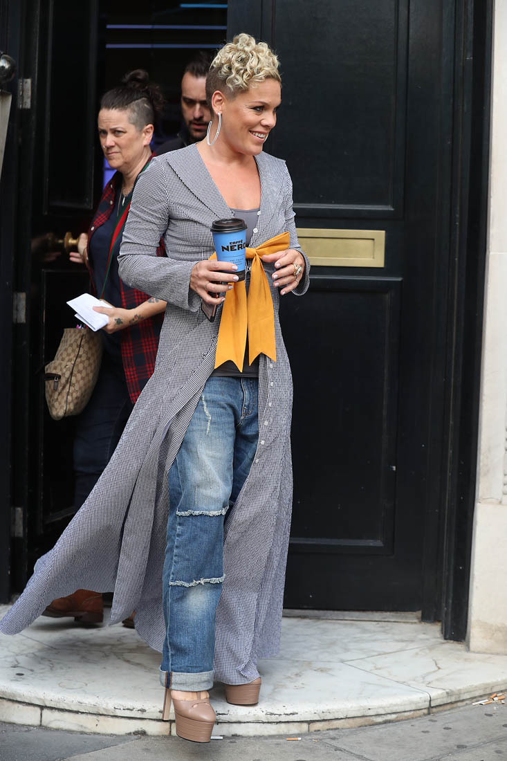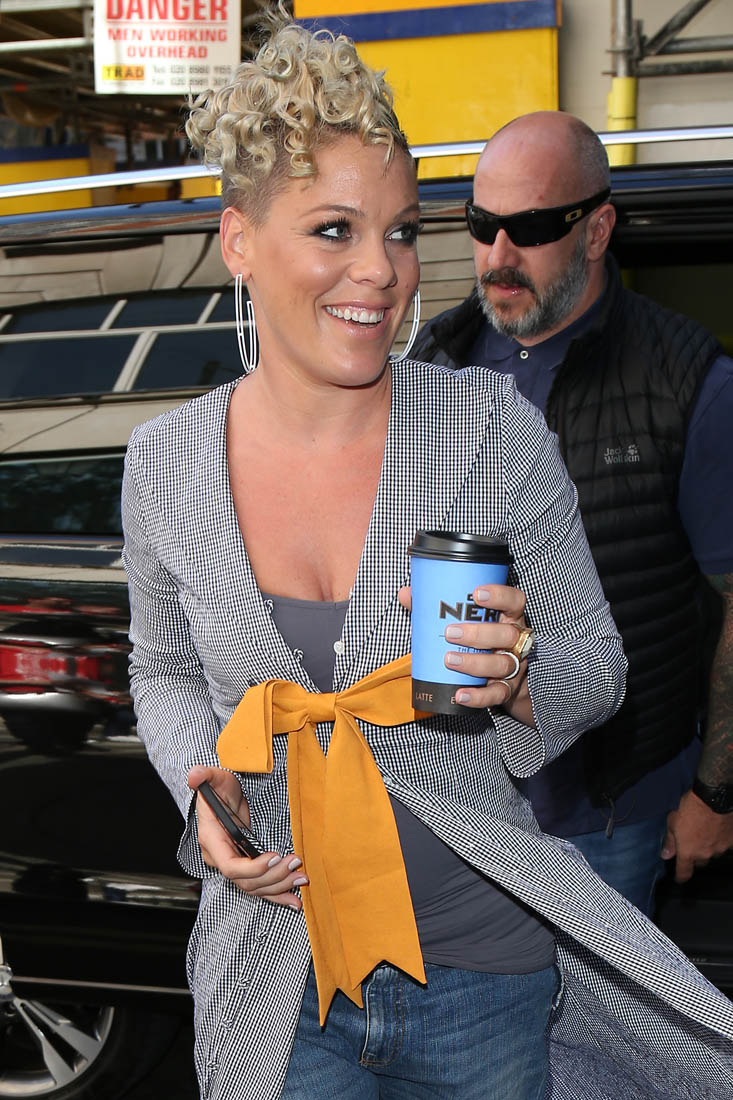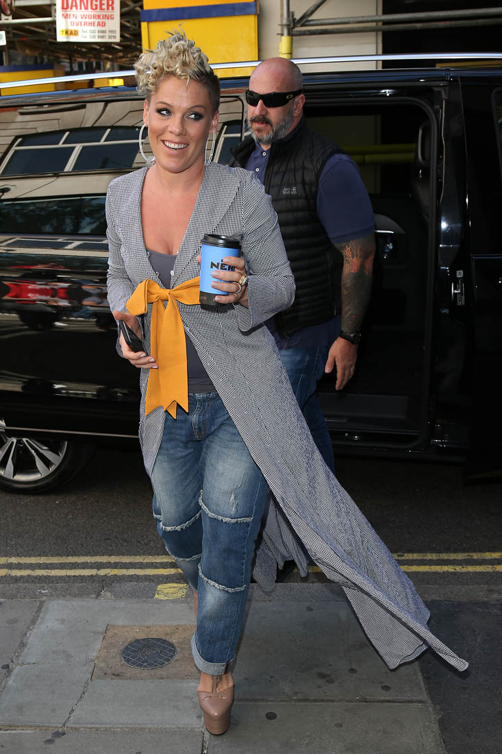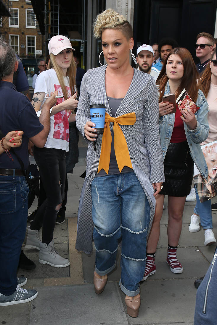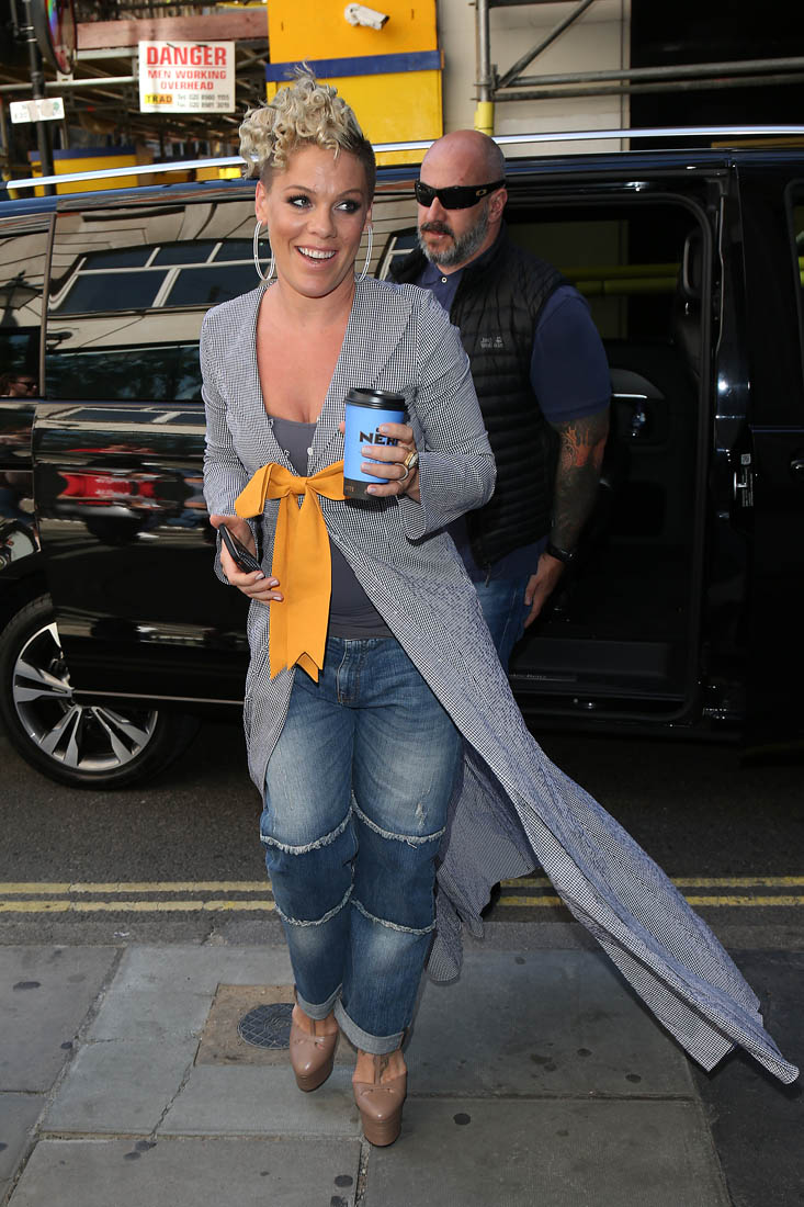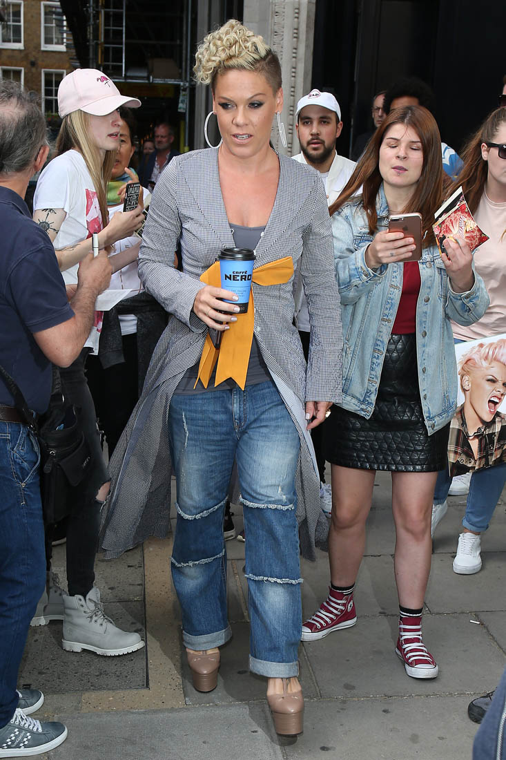 Attached - Pink promoting What About Us in London yesterday.