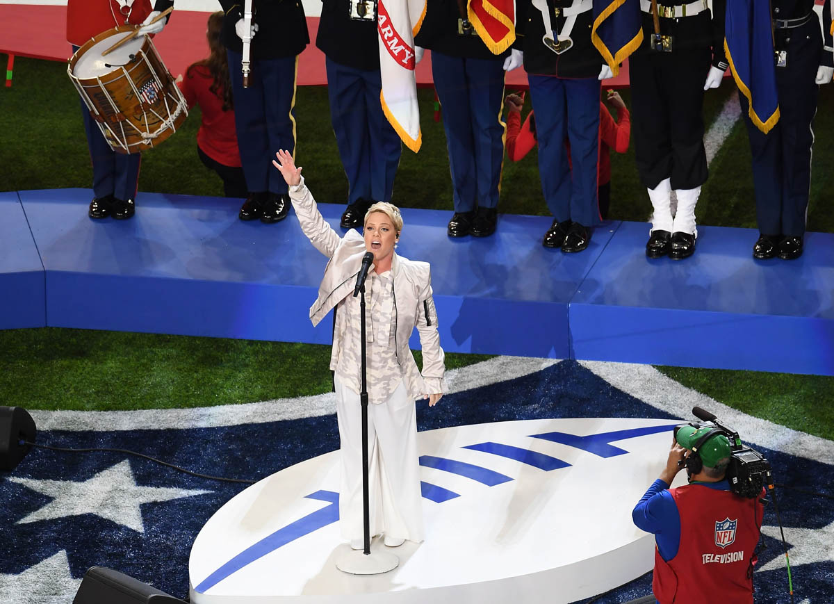 INCREDIBLE.@Pink sings the National Anthem at @SuperBowl LII! #SBLII pic.twitter.com/xWgACgwNib— NFL (@NFL) February 4, 2018