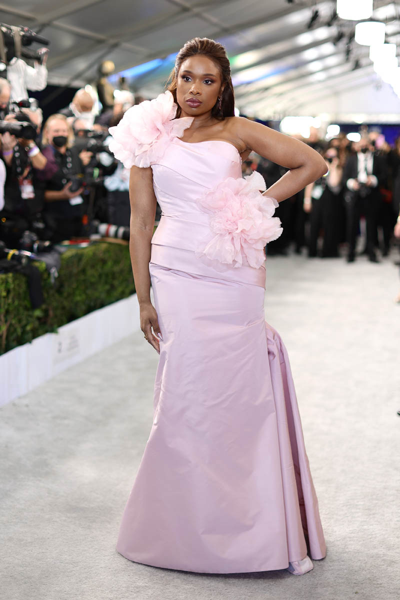 Jennifer Hudson wore a custom pink Vera Wang dress to the Screen Actors Guild Awards last night where she was nominated for Best Actress for her performance as Aretha Franklin in Respect. The night before, at the NAACP Image Awards, it was custom Christian Siriano: