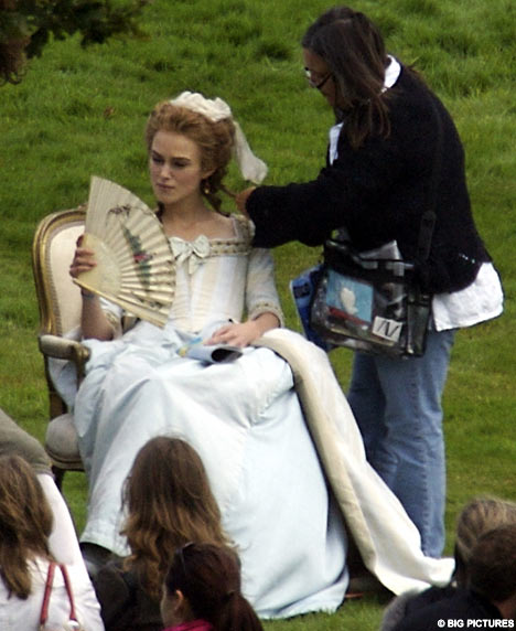 Attached – Keira on the set of her latest period pic called The Duchess.