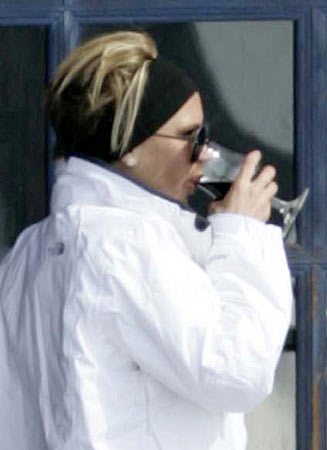 See my Posh flaunting her fabulous chalet patio, enjoying her après–ski well in view of the pappies. Just to rub it in a little more.