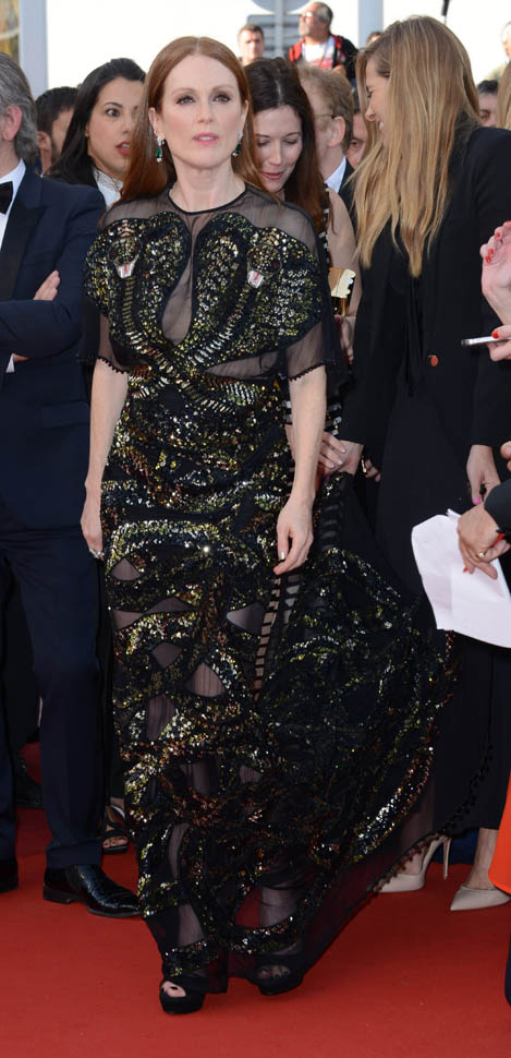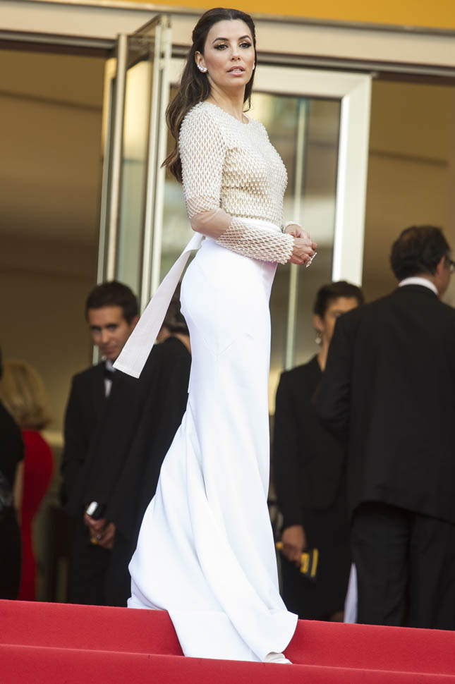 Also attached – Julianne Moore in dramatic Givenchy, Anna Kendrick and Jessica Chastain, both in yellow, and Posh’s friend Eva Longoria in a two-piece that seems too big.