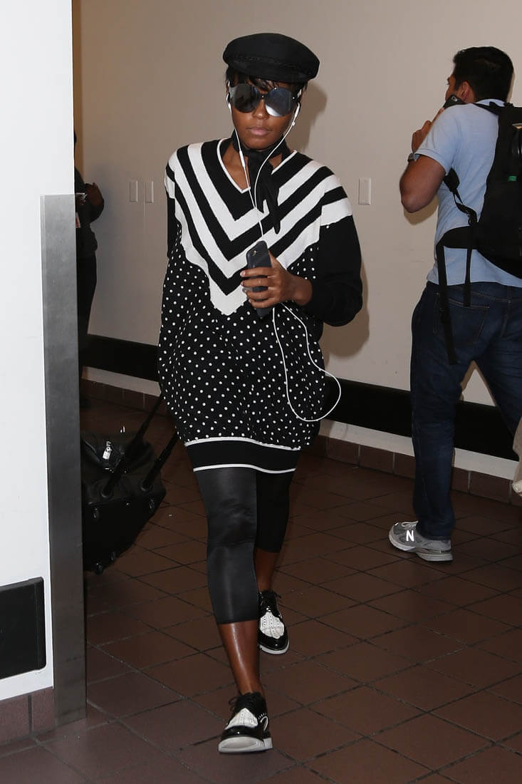 Here’s Janelle at LAX yesterday in her signature colours. That’s another reason why we all need to see this happen. Picture her undercover in all those costumes, whatever it is that the angels are investigating – maybe an MMA fight, maybe it’ll be a hoe-down, maybe a Taylor Swift concert. Those scenes were always so fun in the Drew Barrymore/Lucy Liu/Cameron Diaz version. And even though they’re updating the franchise, I can’t imagine they’d do away with that element.
