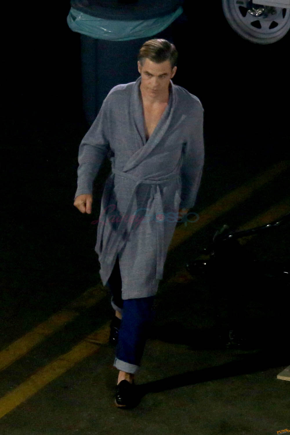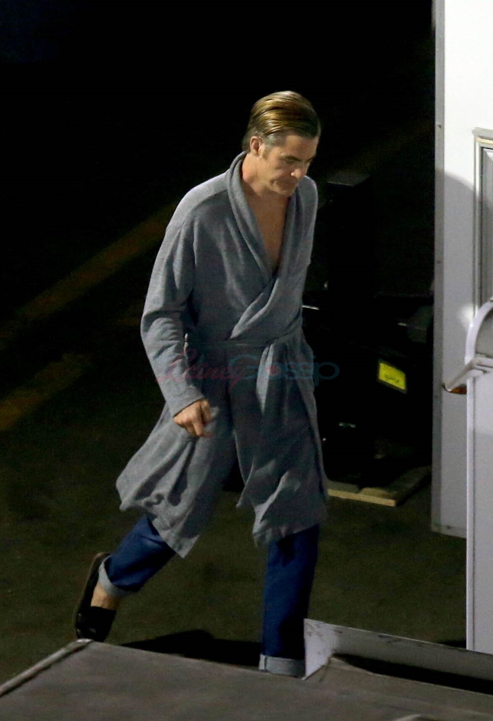 Anyway, Chris is serving two looks here. One corresponds to this fancy scene and the other may not for an official scene but he’s in a robe in jeans and loafers and I like this for him. Like he’s not even my Best Chris and I like this for him. I especially enjoy him with his hair combed back the way it’s styled here.