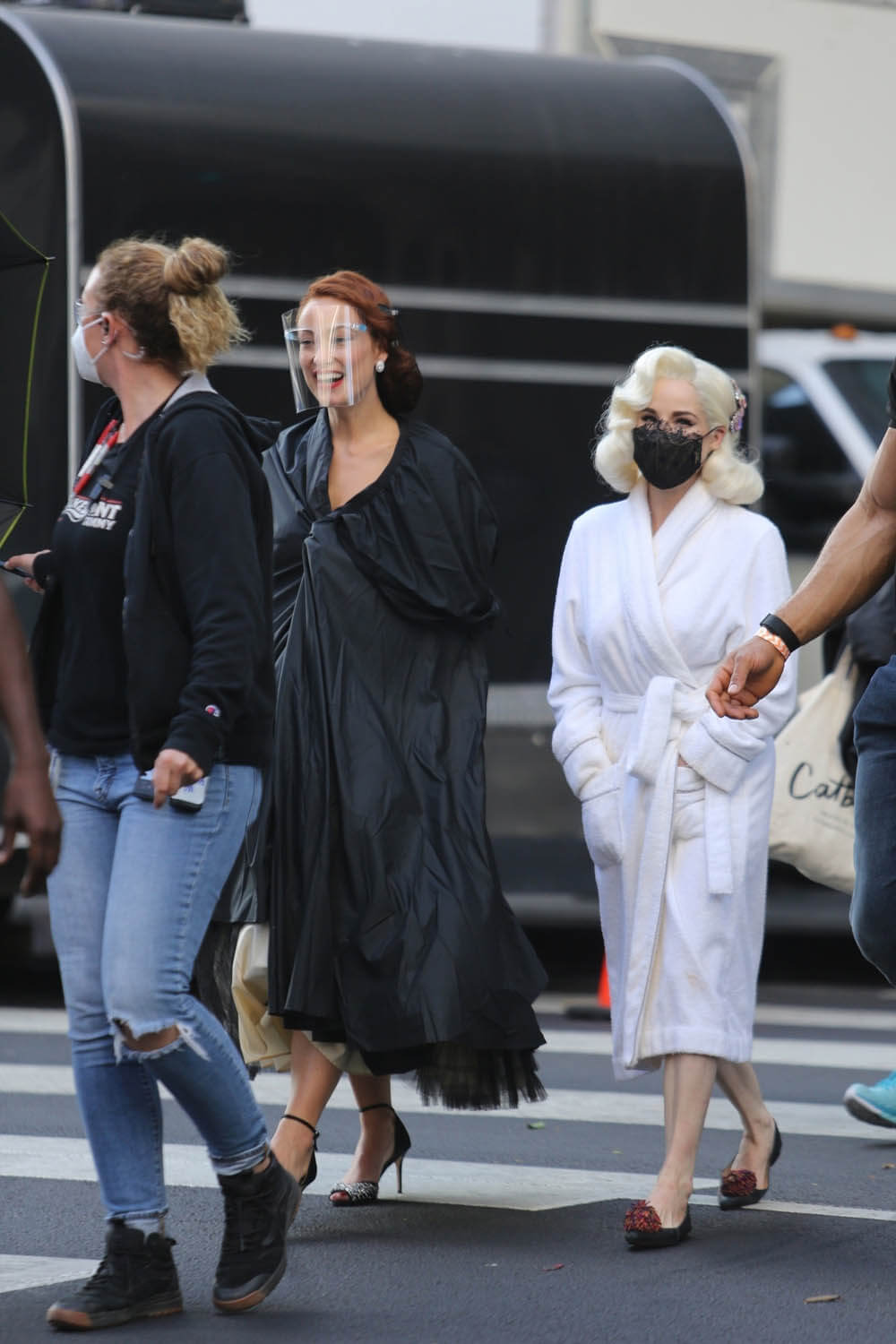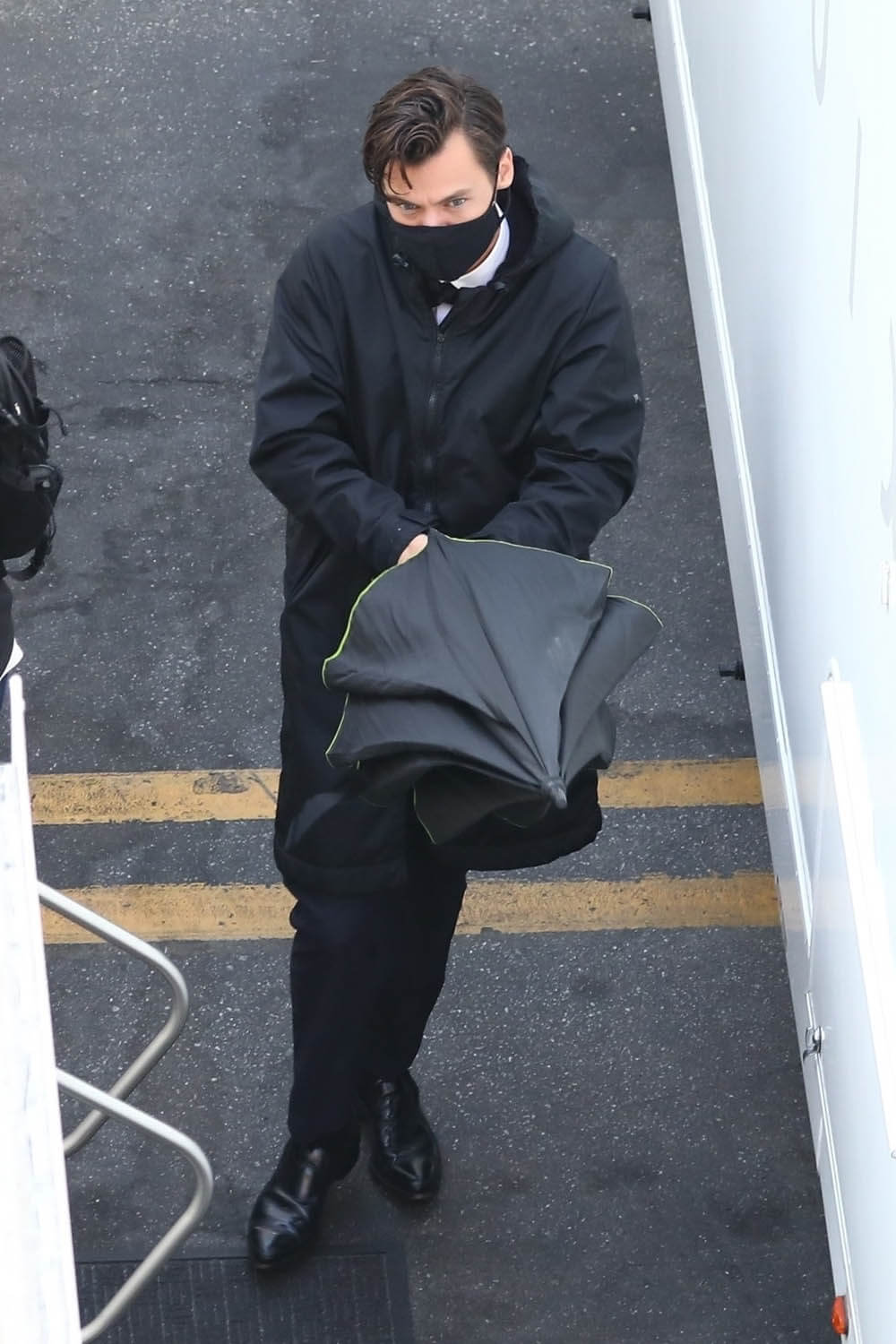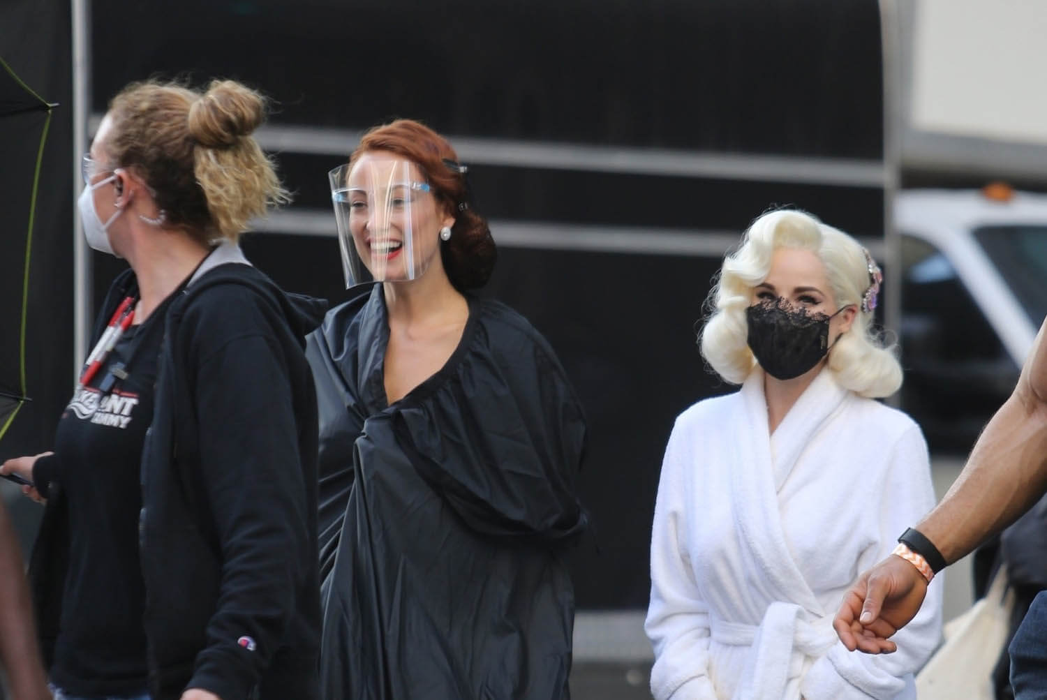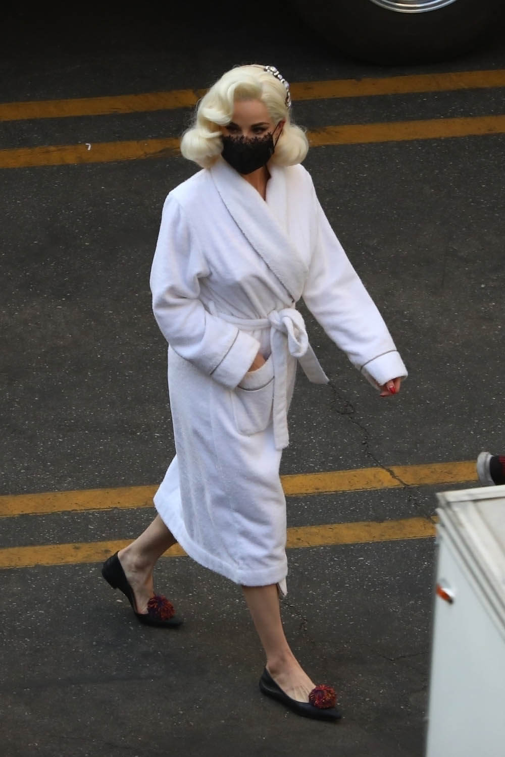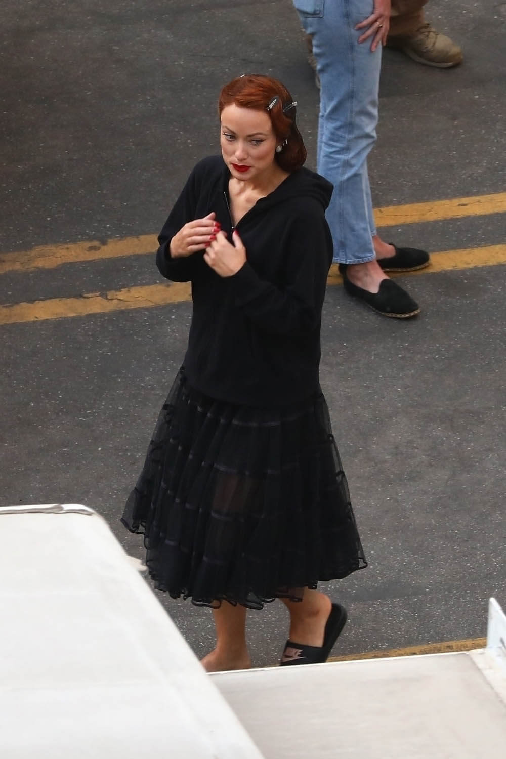 Nope. Not going there. Let’s stay with self-caring through Chris Pine and these shots of him on the set of Don’t Worry Darling (or Don’t Worry, Darling) yesterday. Olivia Wilde, Harry Styles, and Dita Von Teese were also seen prepping for what was evidently a ball or gala. The film is about a housewife in the 1950s living in an affluent community and … some sh-t goes sideways. Chris fits right into that whole look. Also this is why Harry Styles cut his hair.