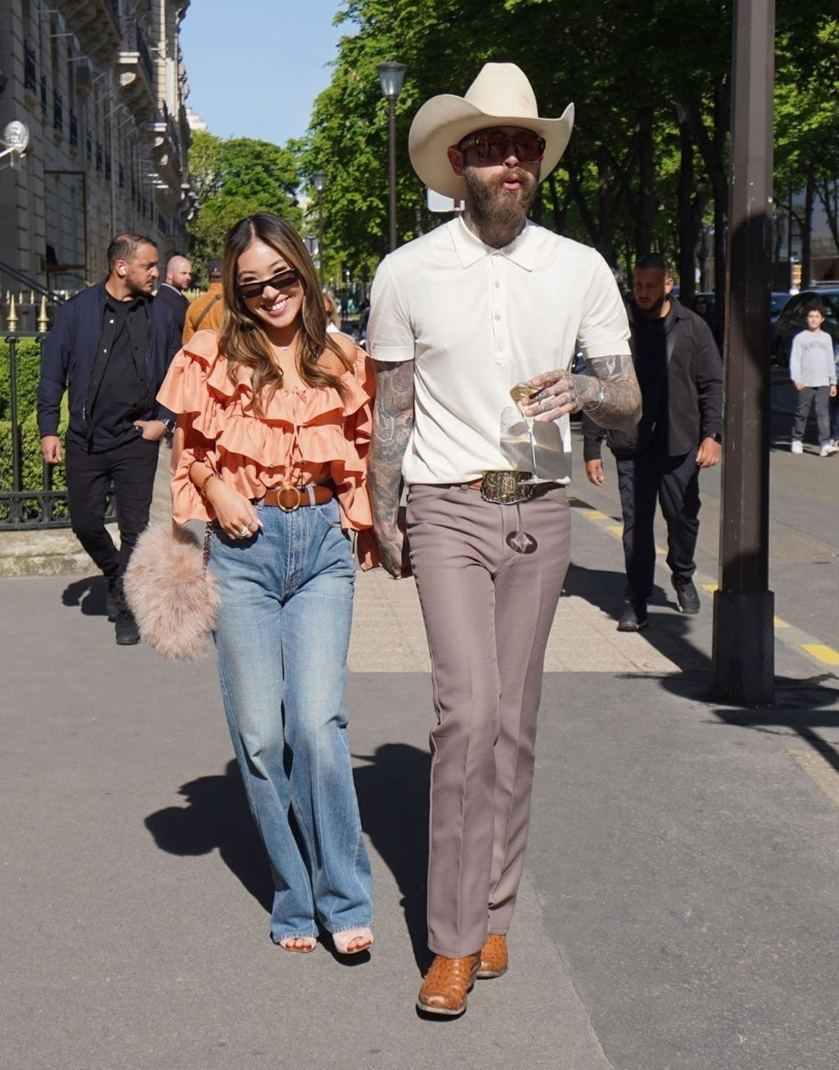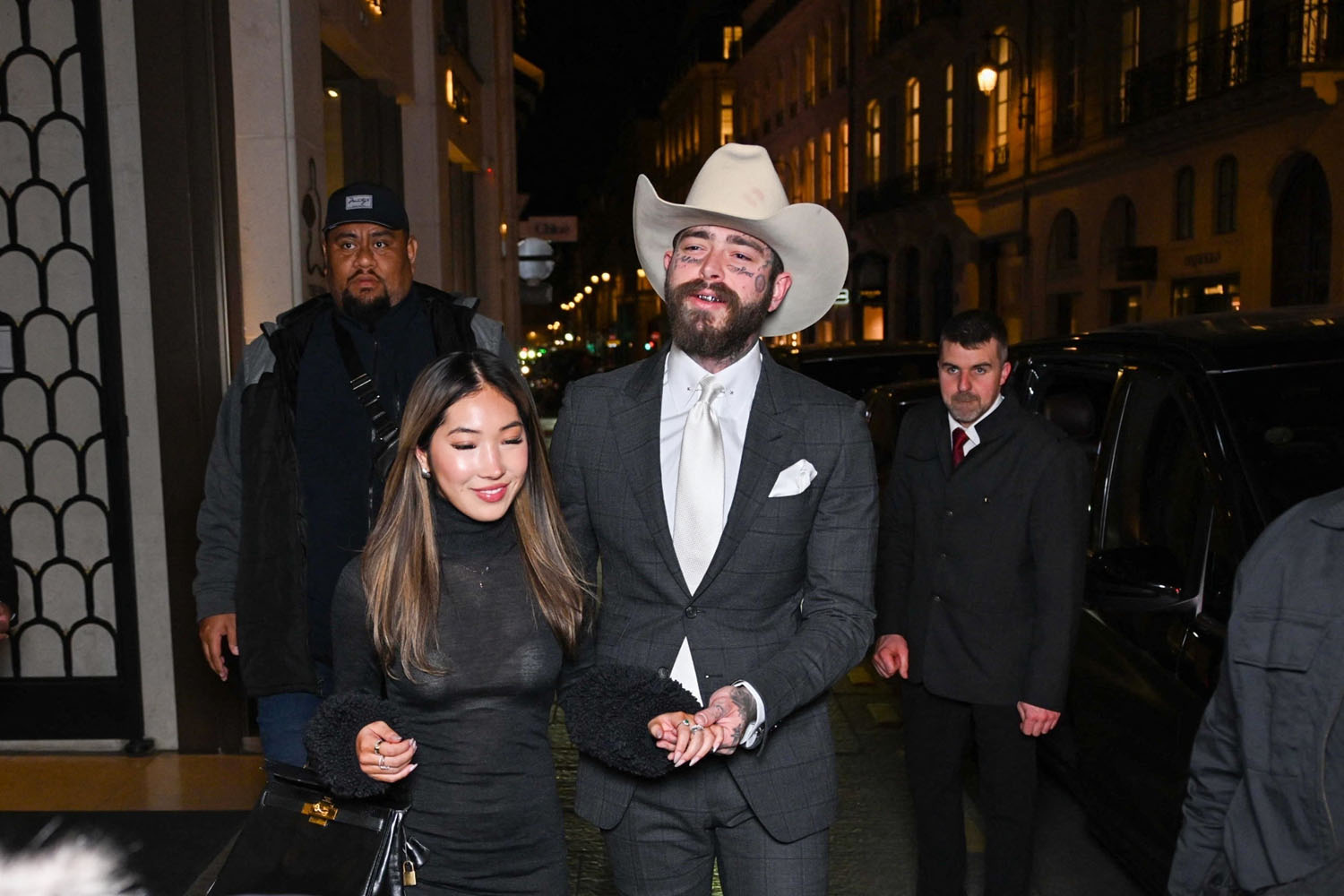 Post Malone has been papped every day for days now while in Paris. There are some people who are photographed often, they’re fixtures at the photo agency websites. Postie doesn’t show up that often – this is why it’s notable that he’s all over the contact sheets. And it’s not just that he’s in Paris, and it’s also not just that he’s shopping and hitting up the places celebrities usually frequent when they’re there, it’s that he’s not alone and all of this outsideness feels like a hard launch.