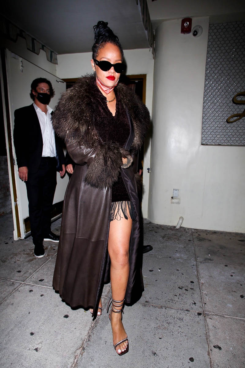 Rihanna and A$AP Rocky were together last week in New York when she celebrated her ma’s birthday and now they’re in LA, photographed leaving Delilah’s last night after 3am. Pre-pandemic, celebrity schedules didn’t often align with their love lives. For Rihanna, a fashion mogul, she was flying from Paris to London to LA working on all her business products, from clothing to makeup to skincare. And, for the Navy, hopefully the recording studio. Rocky would be travelling and touring, performing, etc. While some of this is picking up now, it’s still not the same as before. Which means it’s easier to coordinate schedules, be in the same city at the same time, cross-country if necessary. And it’s a sign of how serious they are that they have been together over a year now, relatively undercover, keeping what they have to themselves, and seemingly very much connected. This is a power couple. They’re just not putting themselves on blast.