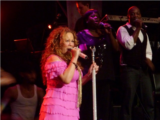 You know if she could, Mimi would perform while reclined on a divan. You know if she could, she’d live her entire life reclined on a divan. She probably already eats like that, she’d f-ck like that, she’d sing like that, and she’d certainly try to dance like that, a melon popping up on and down on a sofa. Mimi is really solidly built. Which is why this fall, sustained in Singapore on Saturday, was barely a fall.