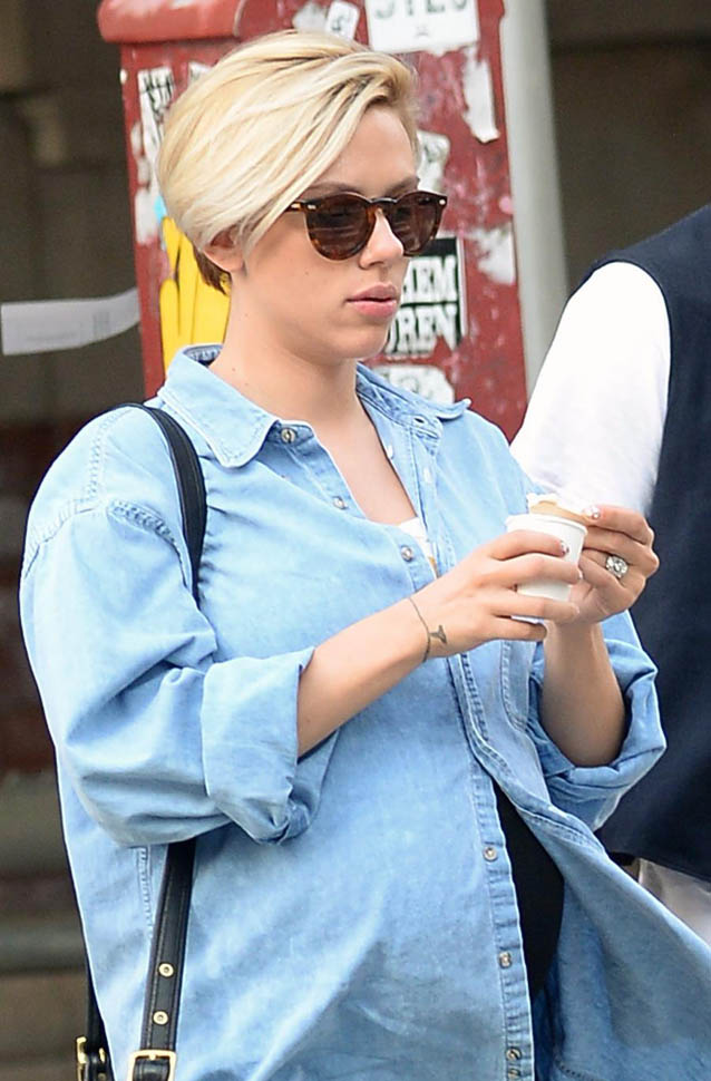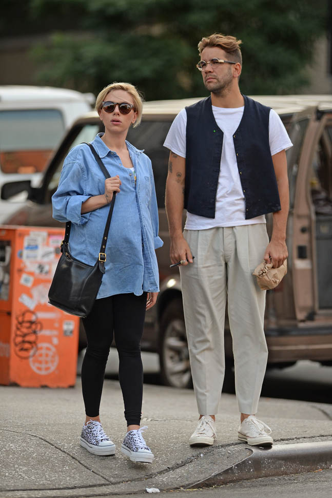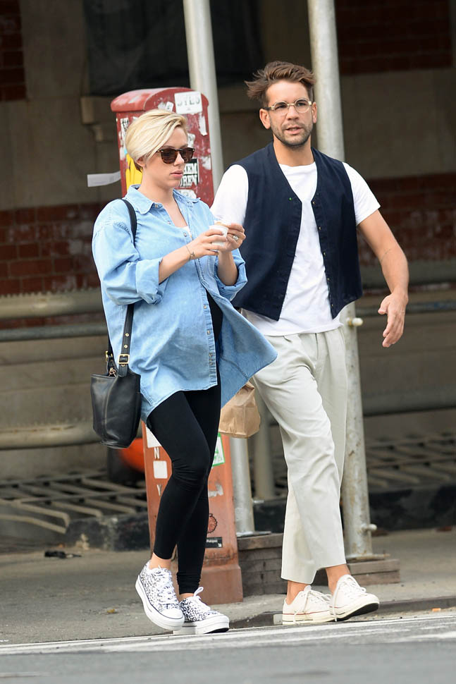 Scarlett Johansson and fiancé Romain Dauriac went for ice cream and a movie yesterday in New York. She’s been in New York for a while now, sighted all over the Hamptons, enjoying the last trimester of her pregnancy. At this point, she’s not supposed to fly anymore, right? If that’s the case, it means that she’s having an American baby?
