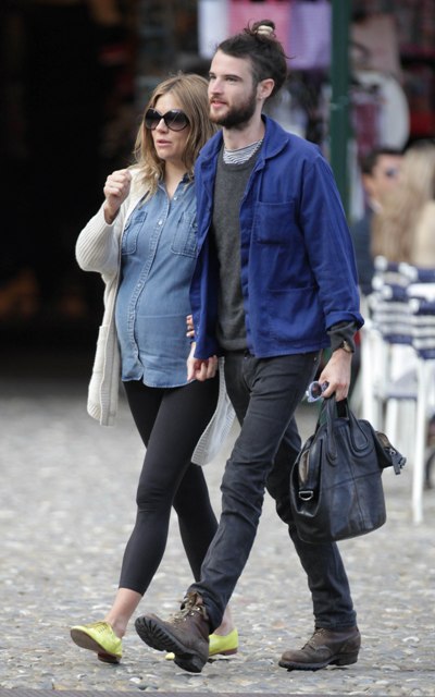 Am finding it hard to believe that Sienna Miller, who can’t resist putting herself in the spotlight at every opportunity, is keep it so low during her pregnancy. She’s almost become the exception, especially in comparison to all the Jessica Simpsons and the Hilary Duffs who’ve had their full terms documented by the paparazzi.
