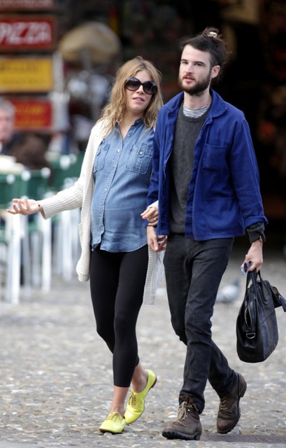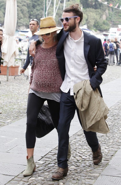 Sienna and Tom Sturridge spent the weekend in Portofino, Italy. God they are cute together, aren’t they? As he’s looking adoringly at the mother of his child still styling in bright yellow oxfords. I don’t know what that kung fu bun on the top of his head is supposed to be about though.