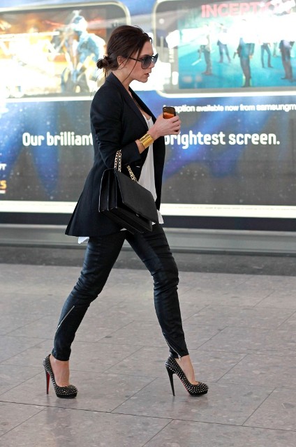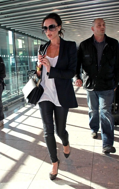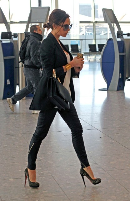 On her way out of Heathrow today on studded heels, tucked into regular size 2 jeans. Full on maternity for her will be a designer 4. Also, obviously, she doesn’t have a foot swelling problem either.