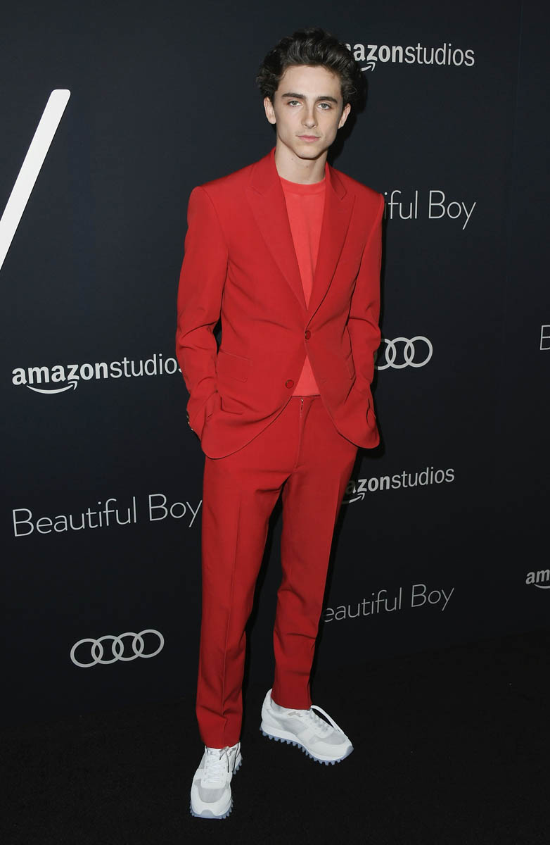 Timmy is promoting Beautiful Boy, in the hopes of generating momentum for the film, of course, but also there may be a Best Supporting Actor nomination on the line. Many experts think he’s got a shot at being among the five actors called to Oscar. He’s also started working on Greta Gerwig’s Little Women. Photos are also attached here of Emma Watson as Meg March on set. Timmy spoke to Variety on the carpet last night at the Beautiful Boy premiere about the shoot. What he said about Greta really jumped out at me: