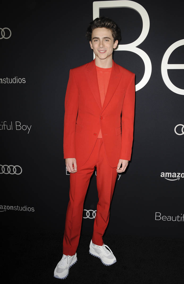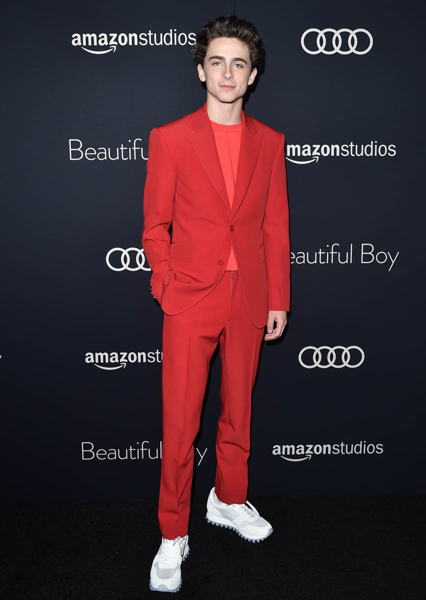 Timmy is promoting Beautiful Boy, in the hopes of generating momentum for the film, of course, but also there may be a Best Supporting Actor nomination on the line. Many experts think he’s got a shot at being among the five actors called to Oscar. He’s also started working on Greta Gerwig’s Little Women. Photos are also attached here of Emma Watson as Meg March on set. Timmy spoke to Variety on the carpet last night at the Beautiful Boy premiere about the shoot. What he said about Greta really jumped out at me: