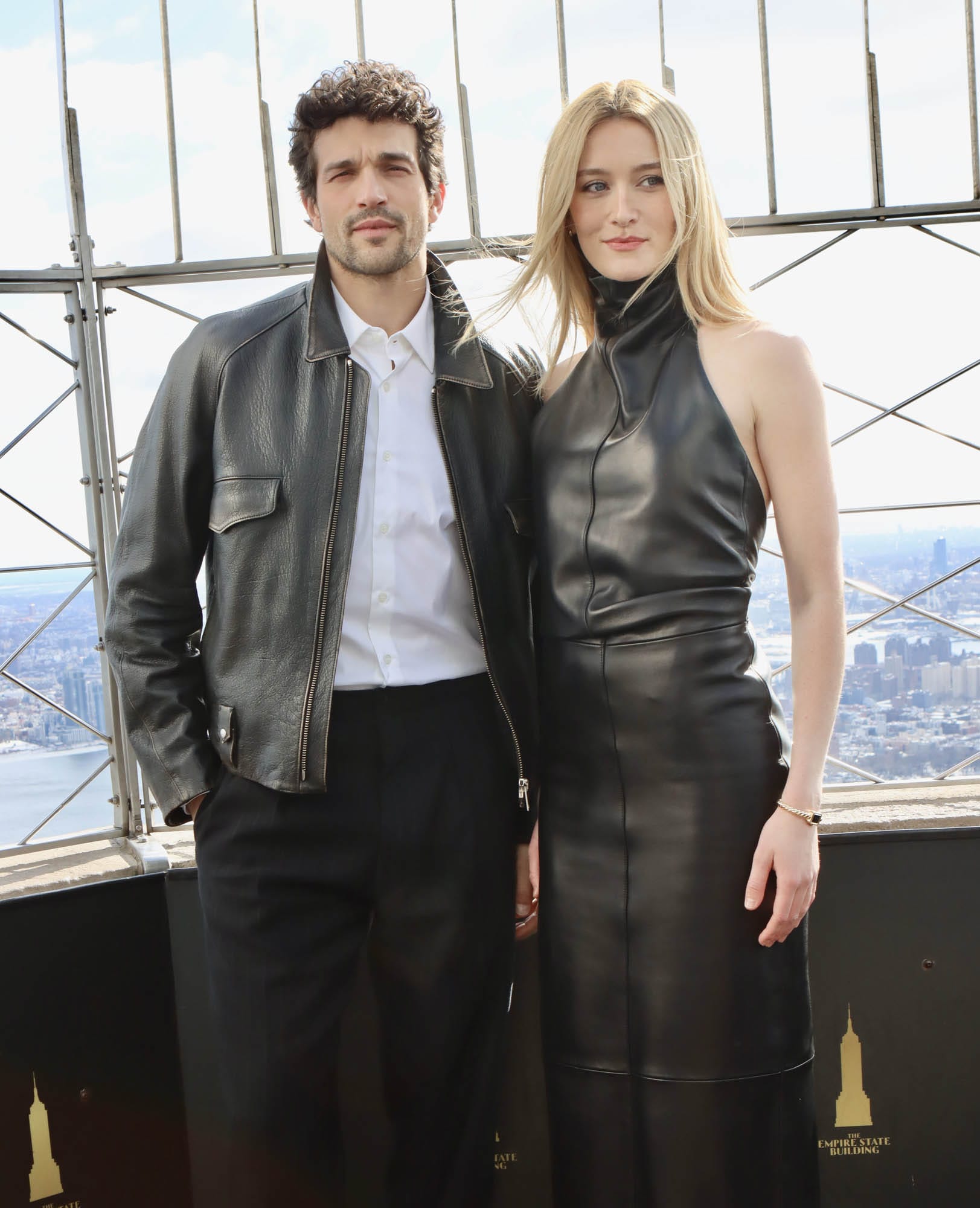 Sarah Pidgeon and Paul Anthony Kelly visit The Empire State Building on February 12, 2026 in New York City