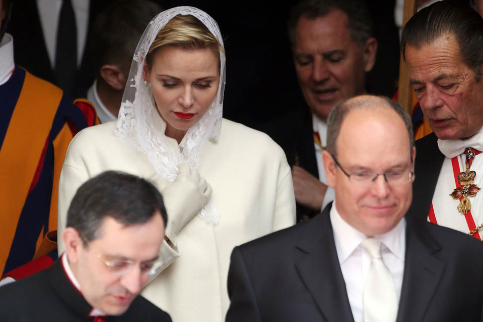As you can see, the princess was indeed serene. And she wore white, which is apparently a thing because typically in the presence of the Pope, women are supposed to wear all black, below the knee, a high collar, long sleeves, and a black mantilla. Apparently there are only seven women in the world who hold the “privilege du blanc”. In addition to Her Sereneness, Queen Sofia of Spain, Queen Paola of Belgium, Grand Duchess Maria Teresa of Luxembourg, Queen Mathilde of Belgium, Queen Letizia of Spain, Princess Marina of Naples are also permitted to wear white with the Pope on very, very special occasions or when/if they have the honour of a private audience with His Holiness, which is what happened yesterday.