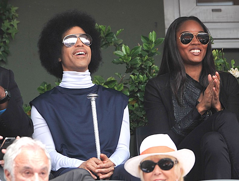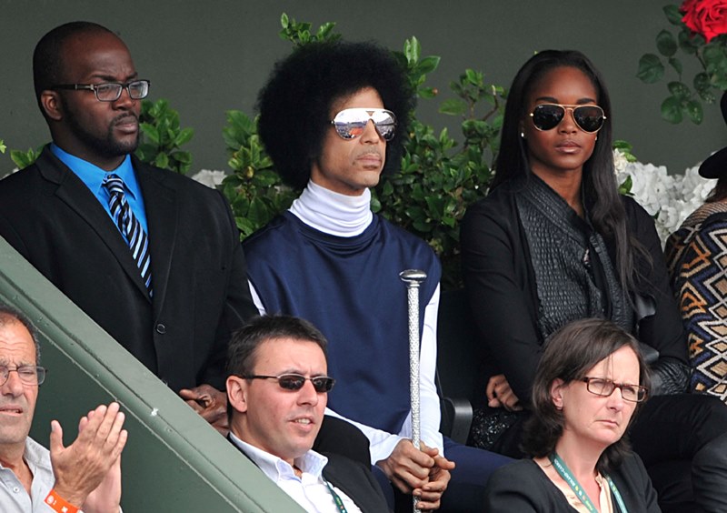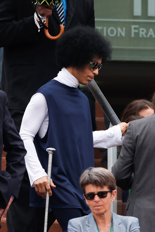 Please enjoy these photos of Prince enjoying Rafael Nadal win in straight sets at the French Open today to advance to the quarterfinals. It takes real commitment to wear a turtleneck this time of year. And to perch on his signature tricked out cane like he’s the boss of everyone and they’re all there to play for him. For his pleasure. I am not being sarcastic. I am being appreciative.
