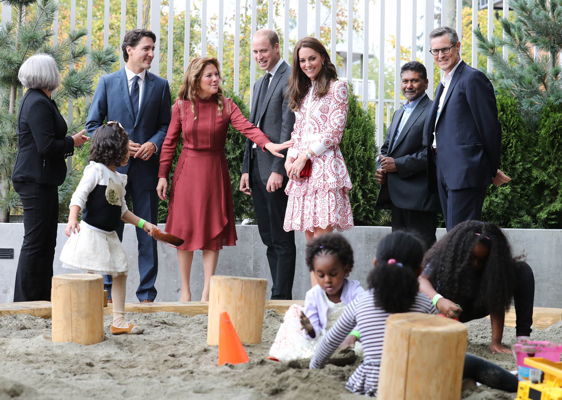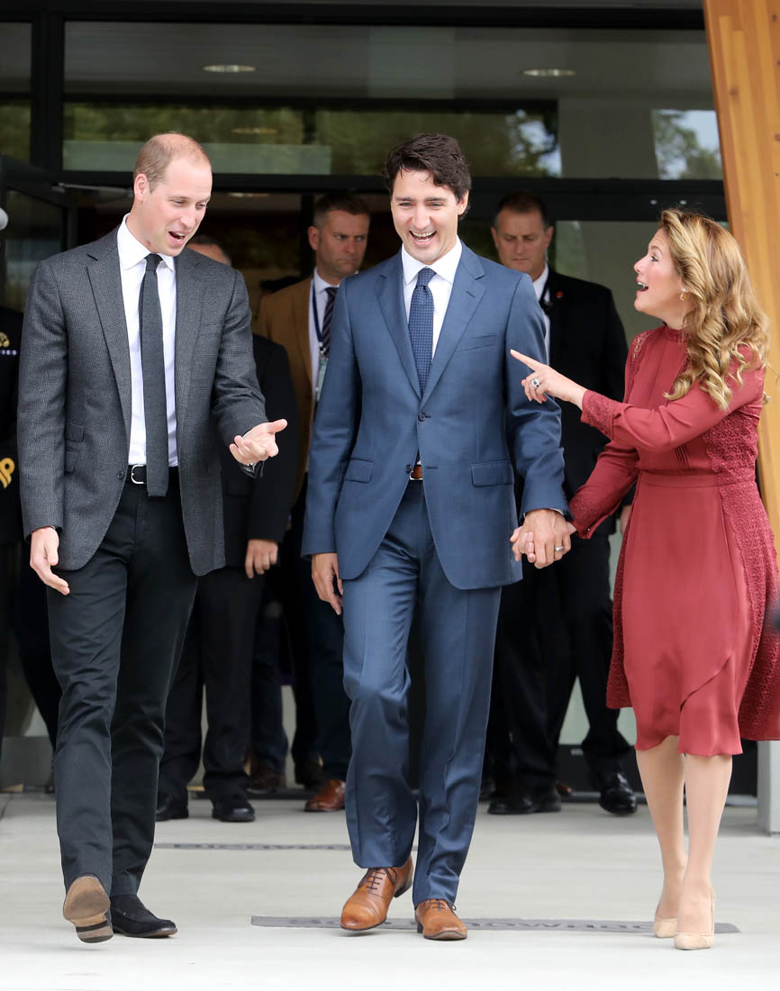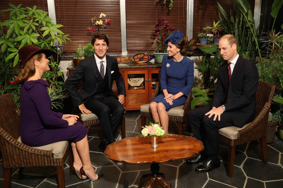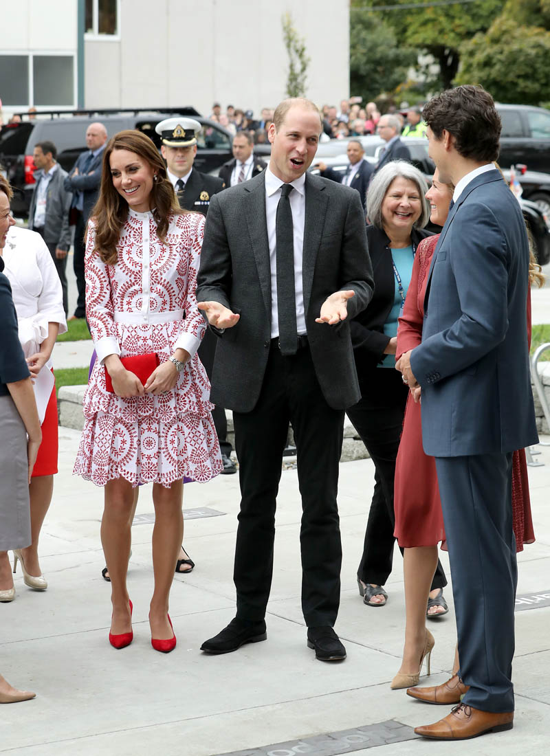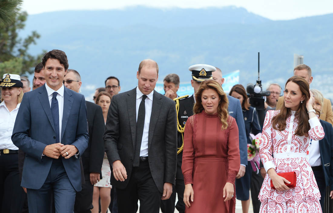 All four Cambridges are in Canada right now on a royal tour of our country’s west coast. Will and Kate will be homebasing in Victoria with day trips here and there while Big G and Charlotte hang back at Government House. Kate wore a white and red Alexander McQueen on Sunday – one of her best outfits in a long time – and the two visited Sheway, a pregnancy outreach program, but the big story from their trip so far is how Big G, unlike the rest of the world, had no time for Prime Minister Justin Trudeau.
