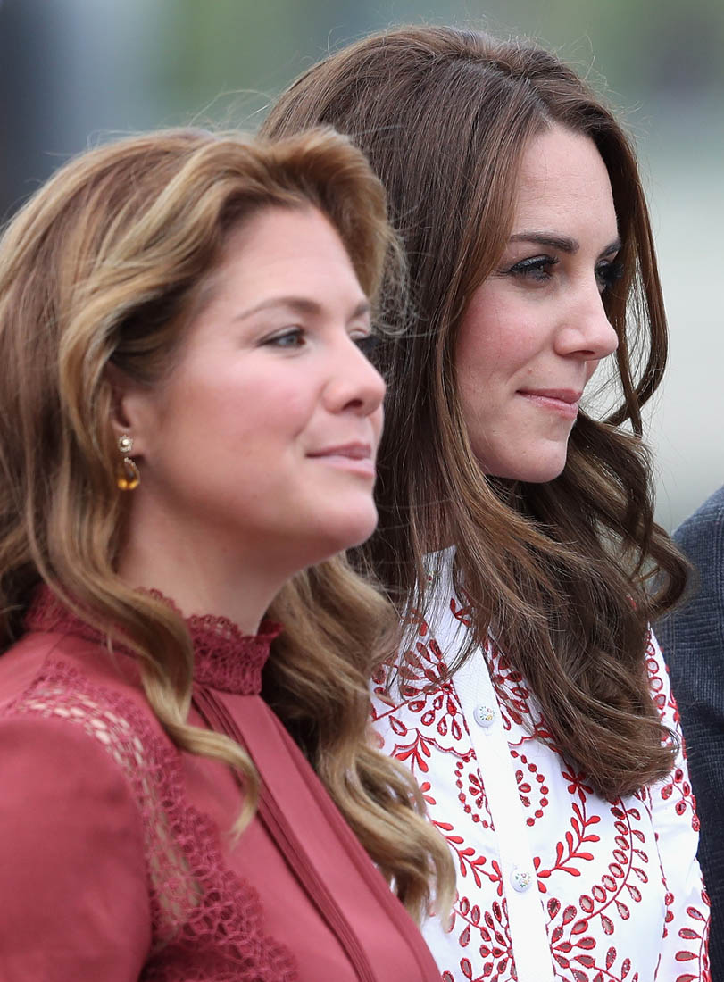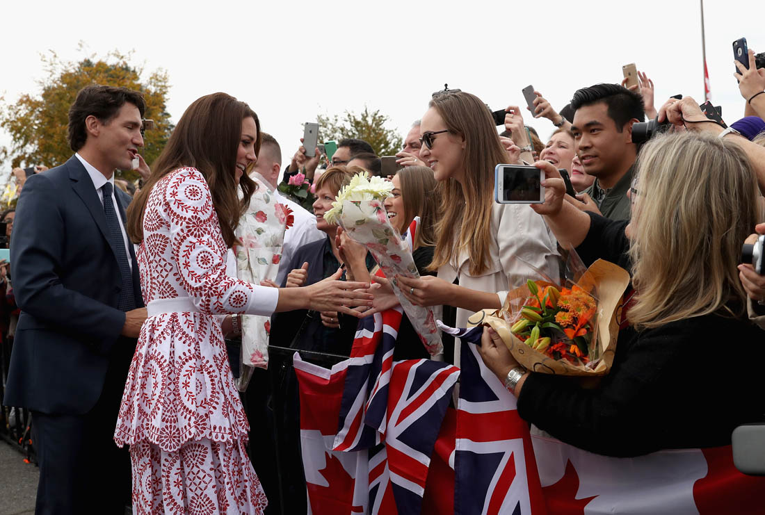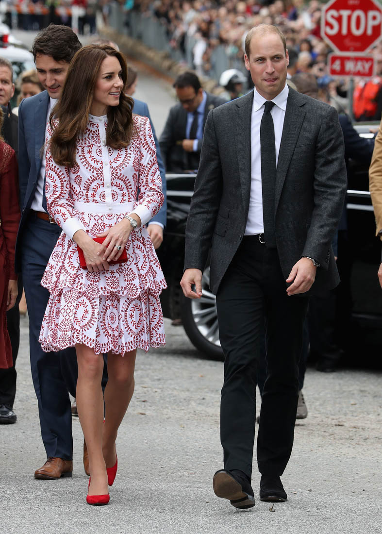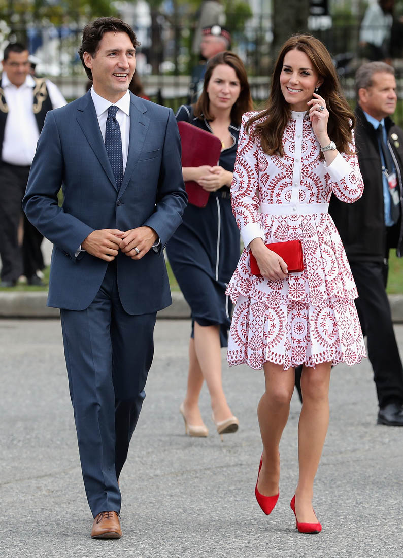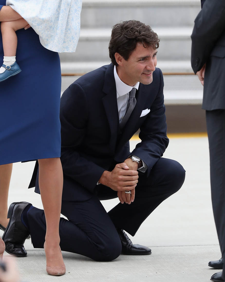 All four Cambridges are in Canada right now on a royal tour of our country’s west coast. Will and Kate will be homebasing in Victoria with day trips here and there while Big G and Charlotte hang back at Government House. Kate wore a white and red Alexander McQueen on Sunday – one of her best outfits in a long time – and the two visited Sheway, a pregnancy outreach program, but the big story from their trip so far is how Big G, unlike the rest of the world, had no time for Prime Minister Justin Trudeau.