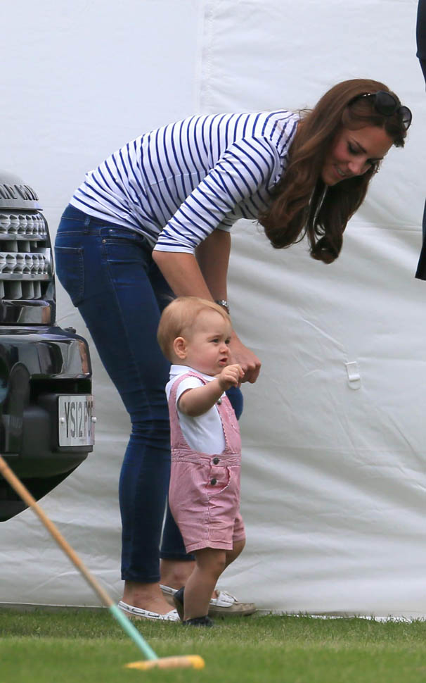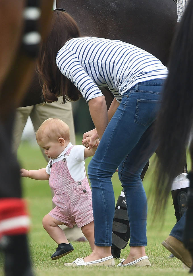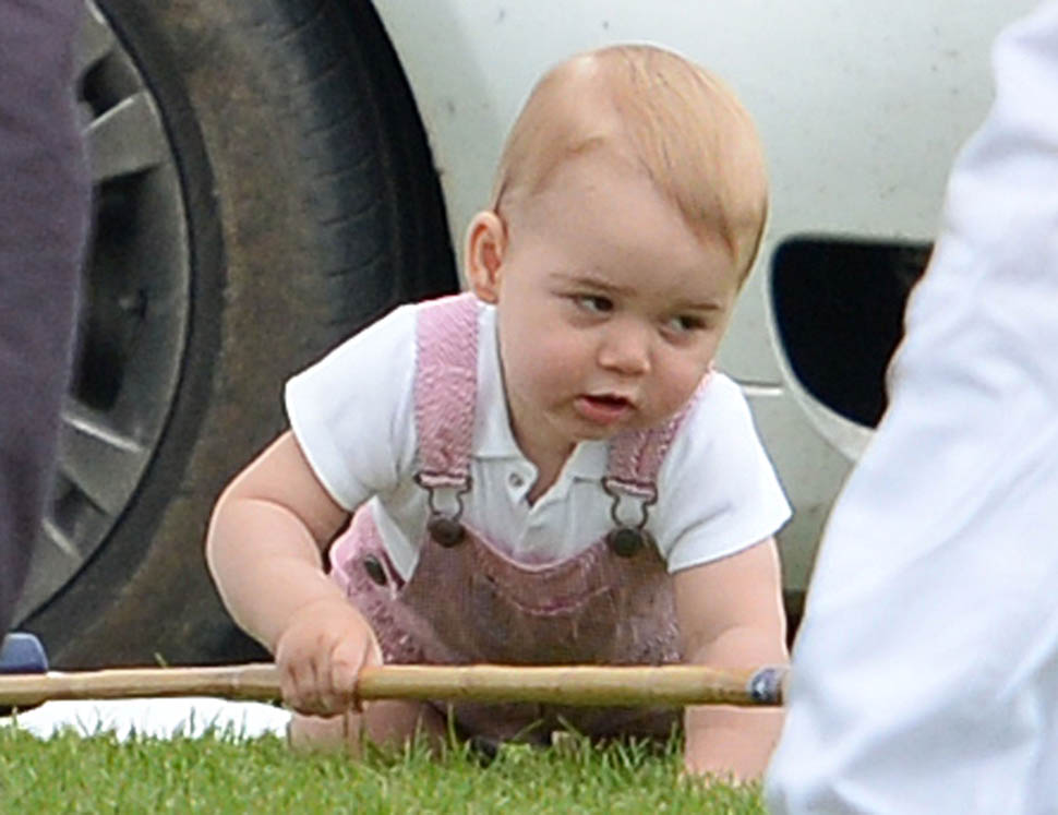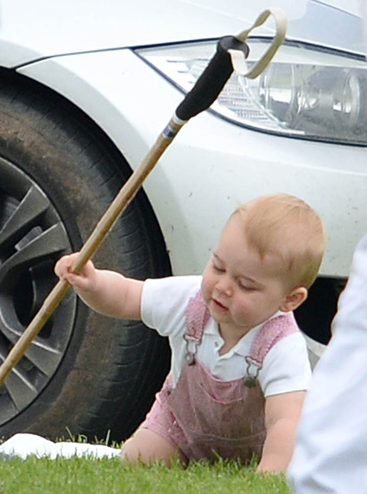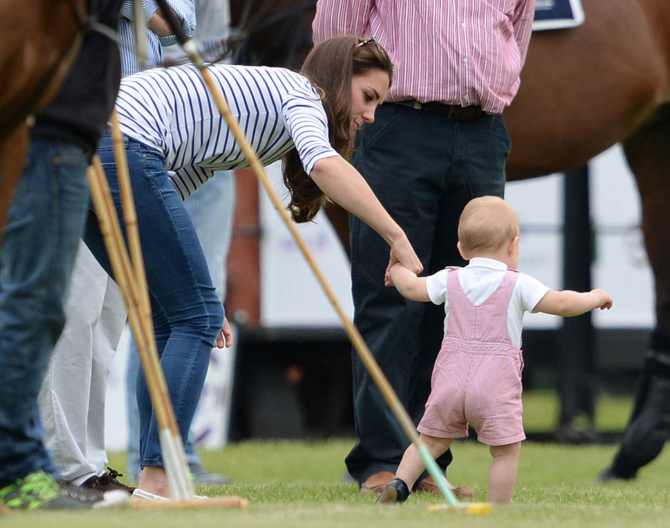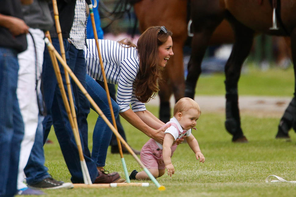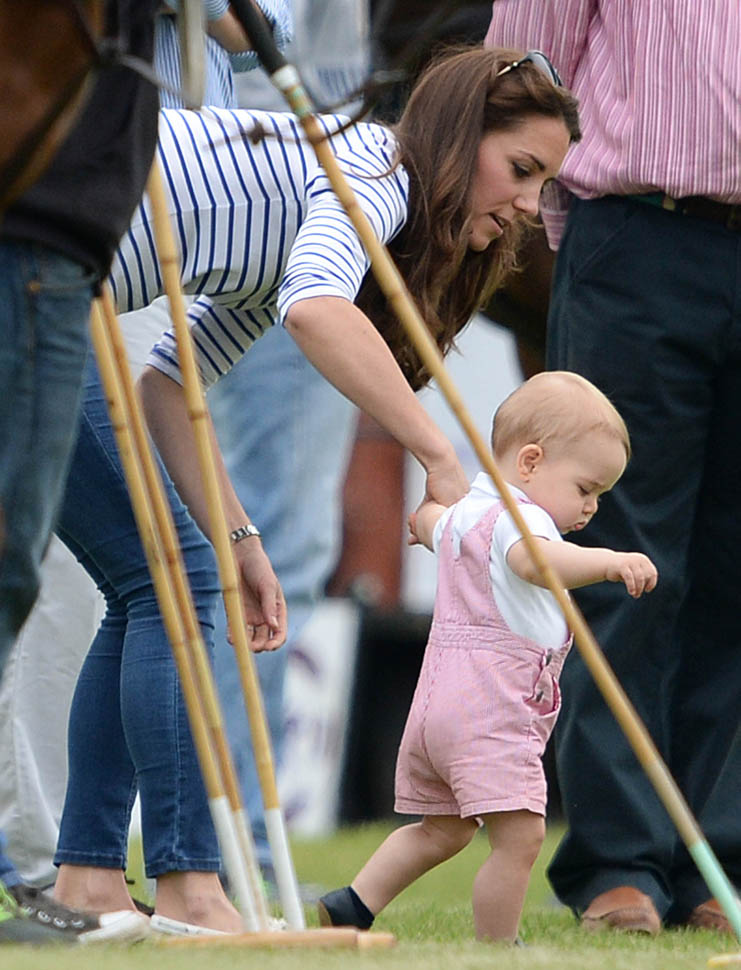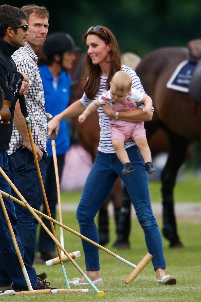 Big G was also at the polo match yesterday to watch his dad and his uncle ride around on horses. He didn’t seem all that interested. Dressed in seersucker pink, Bruiser, as usual, was a handful, determined to get out of his mother’s arms so that he could wrap his chubby fingers around a mallet and go find someone to club in the head. How medieval. Like all the warmongering of his ancestors has convened in his blood. And, just a month before his first birthday, he’s walking now. This kid was punching babies and trying to strangle zoo animals before he was mobile. Now that he’s figuring out how to use his legs, there will be more victims. I bet you he’ll be a biter too.
