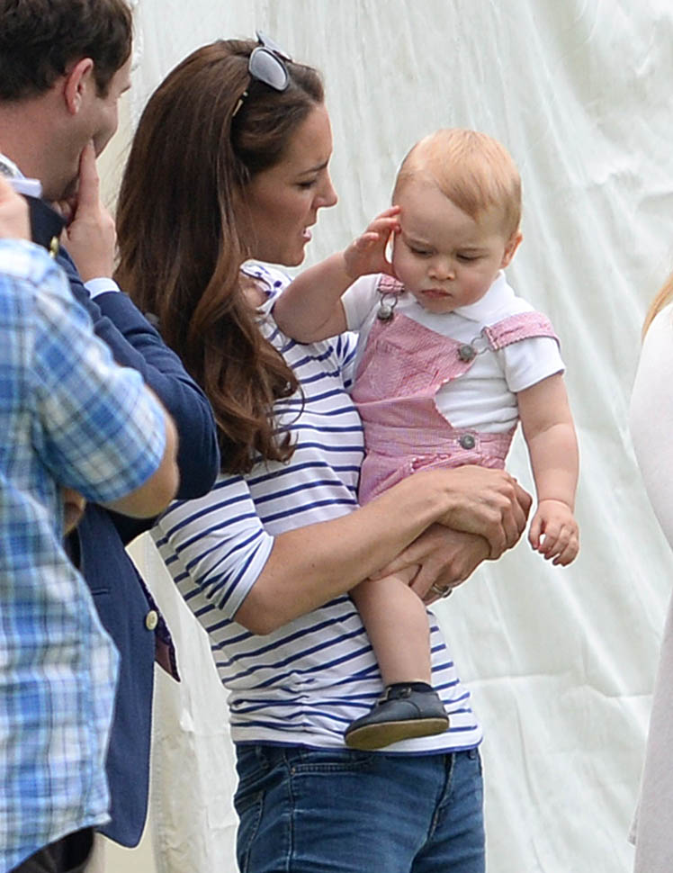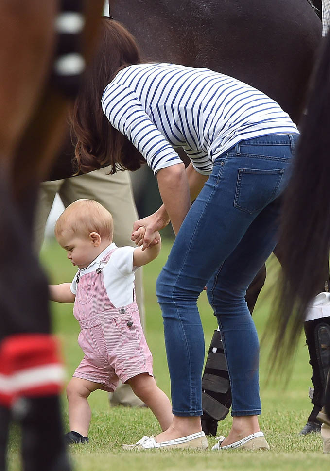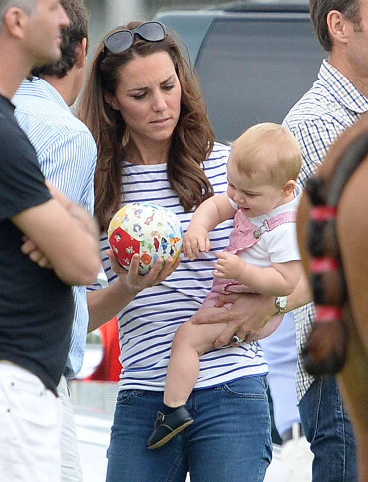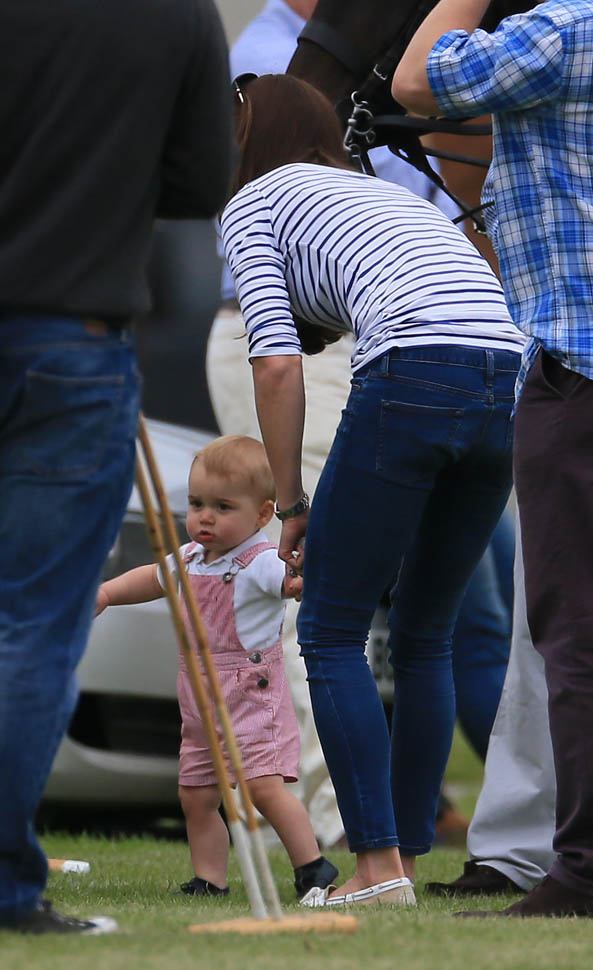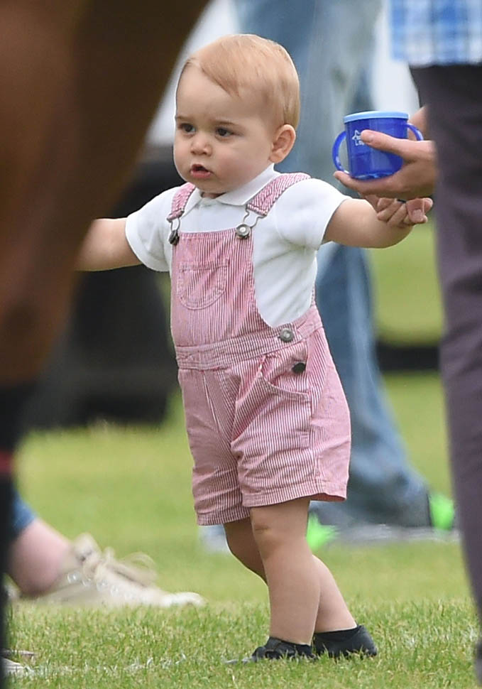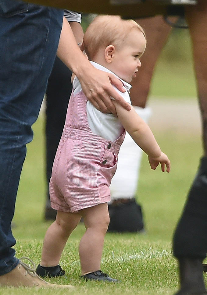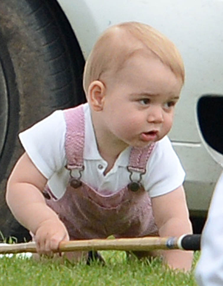 Big G was also at the polo match yesterday to watch his dad and his uncle ride around on horses. He didn’t seem all that interested. Dressed in seersucker pink, Bruiser, as usual, was a handful, determined to get out of his mother’s arms so that he could wrap his chubby fingers around a mallet and go find someone to club in the head. How medieval. Like all the warmongering of his ancestors has convened in his blood. And, just a month before his first birthday, he’s walking now. This kid was punching babies and trying to strangle zoo animals before he was mobile. Now that he’s figuring out how to use his legs, there will be more victims. I bet you he’ll be a biter too.