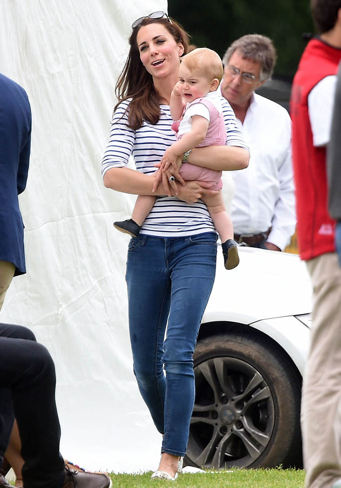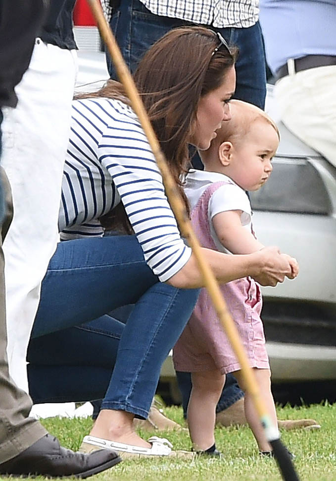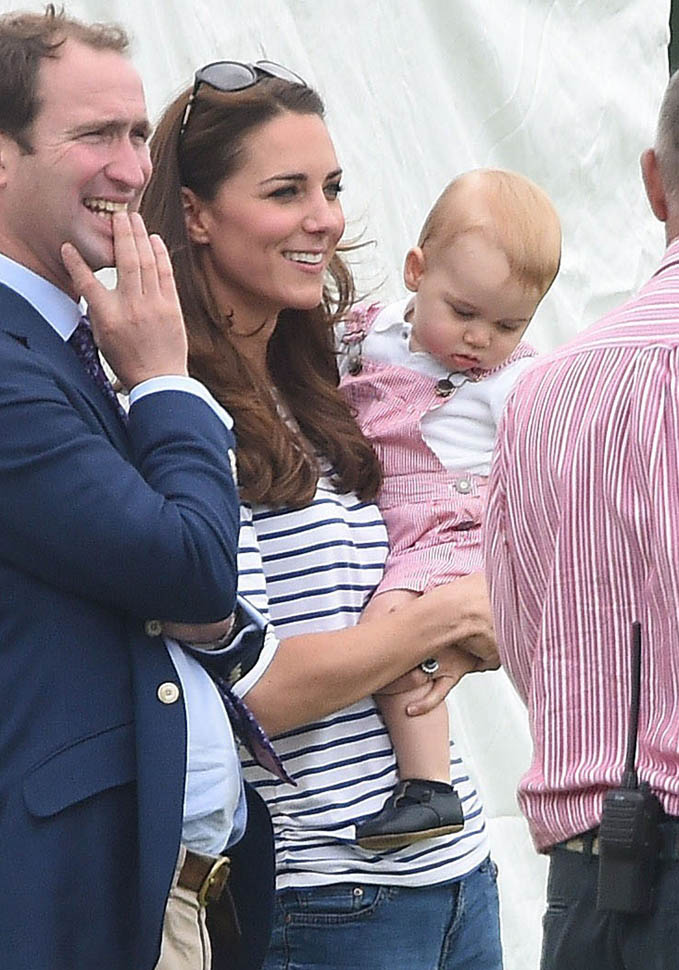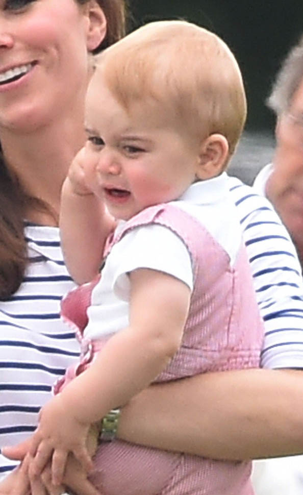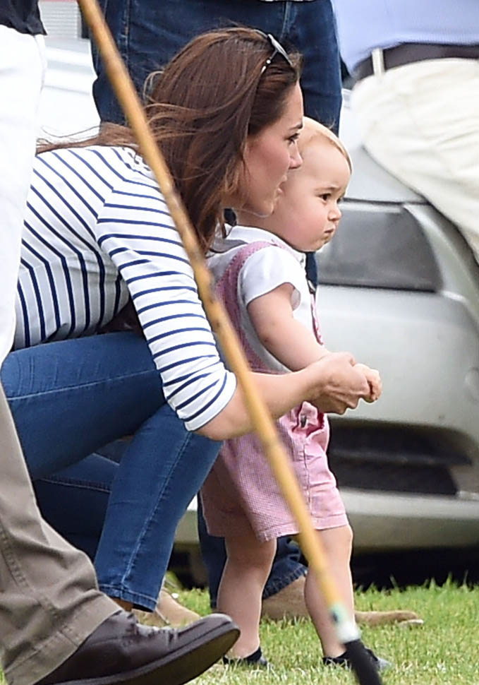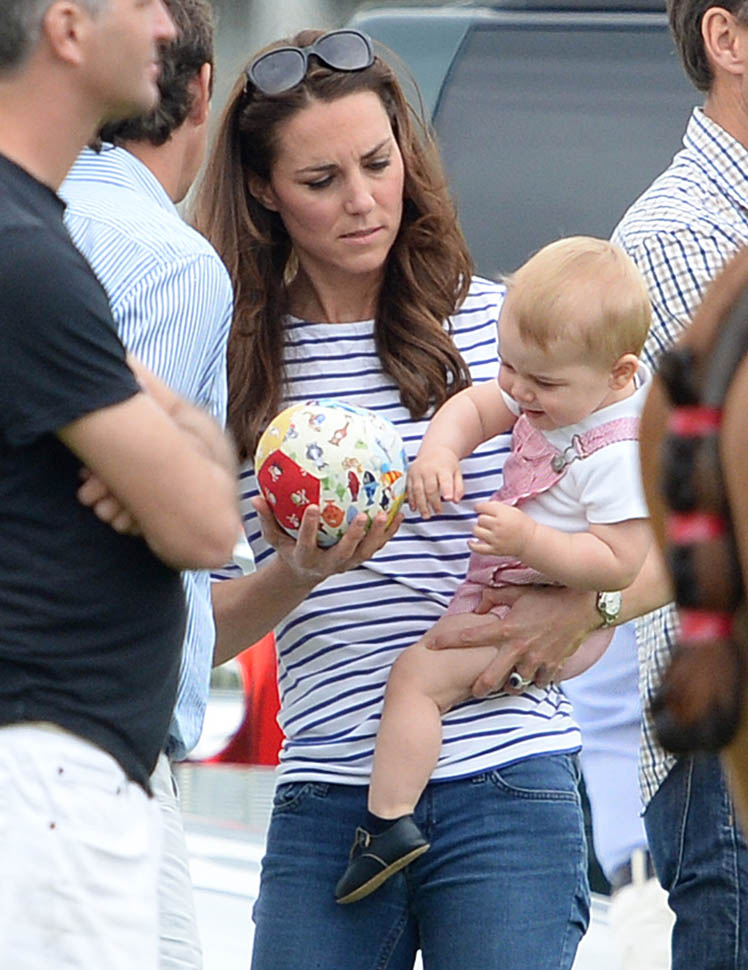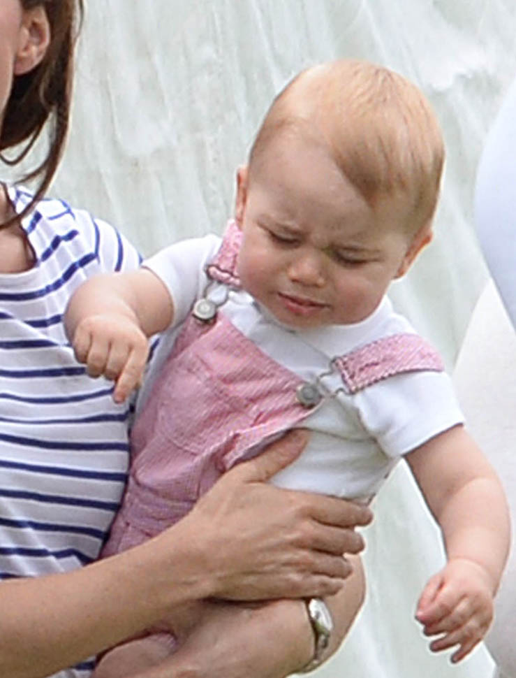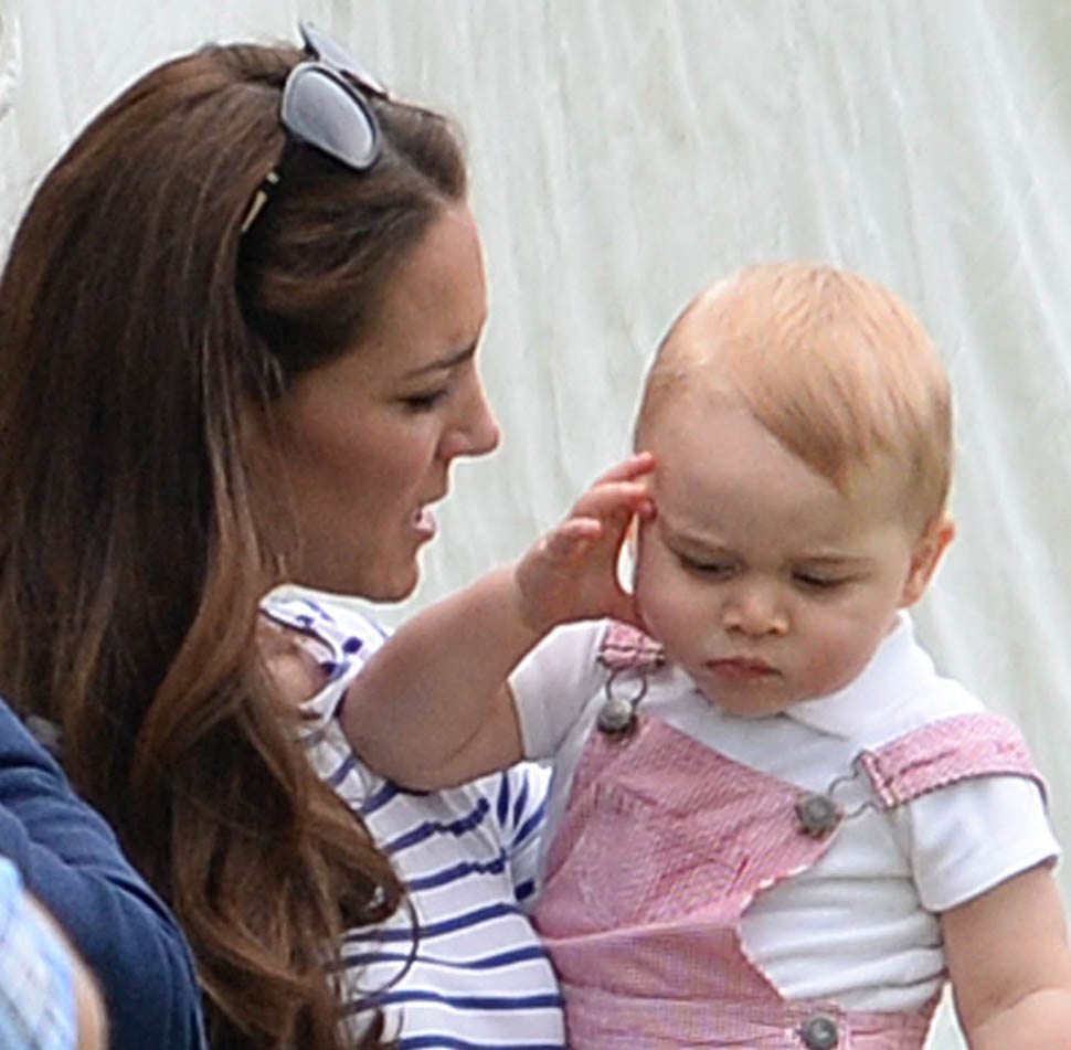 Big G was also at the polo match yesterday to watch his dad and his uncle ride around on horses. He didn’t seem all that interested. Dressed in seersucker pink, Bruiser, as usual, was a handful, determined to get out of his mother’s arms so that he could wrap his chubby fingers around a mallet and go find someone to club in the head. How medieval. Like all the warmongering of his ancestors has convened in his blood. And, just a month before his first birthday, he’s walking now. This kid was punching babies and trying to strangle zoo animals before he was mobile. Now that he’s figuring out how to use his legs, there will be more victims. I bet you he’ll be a biter too.