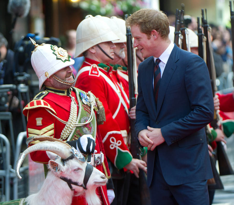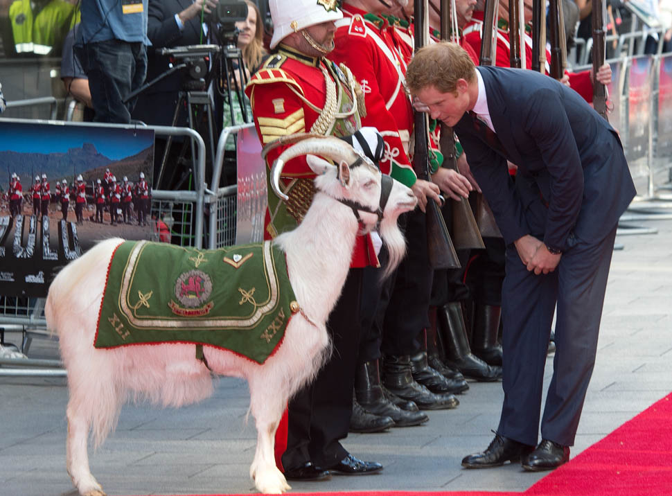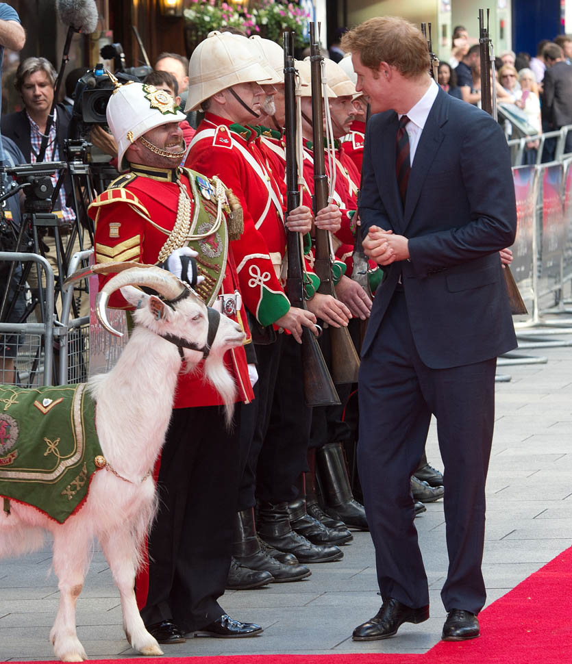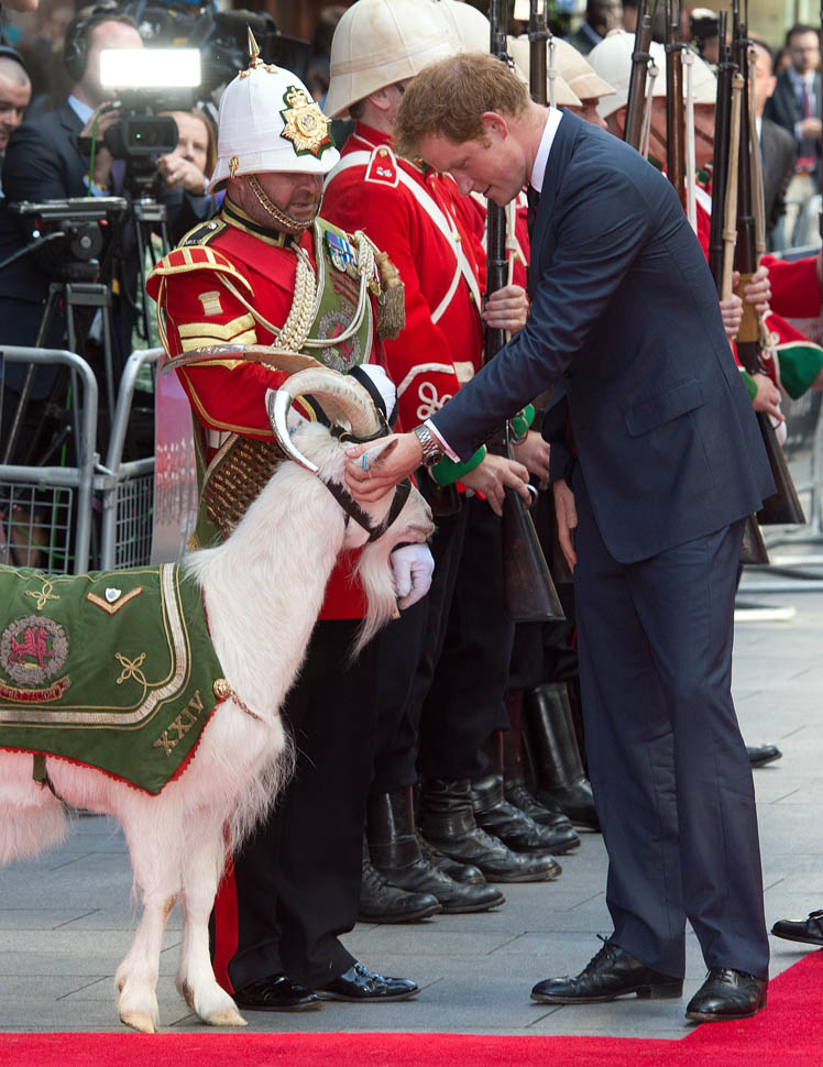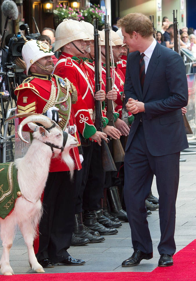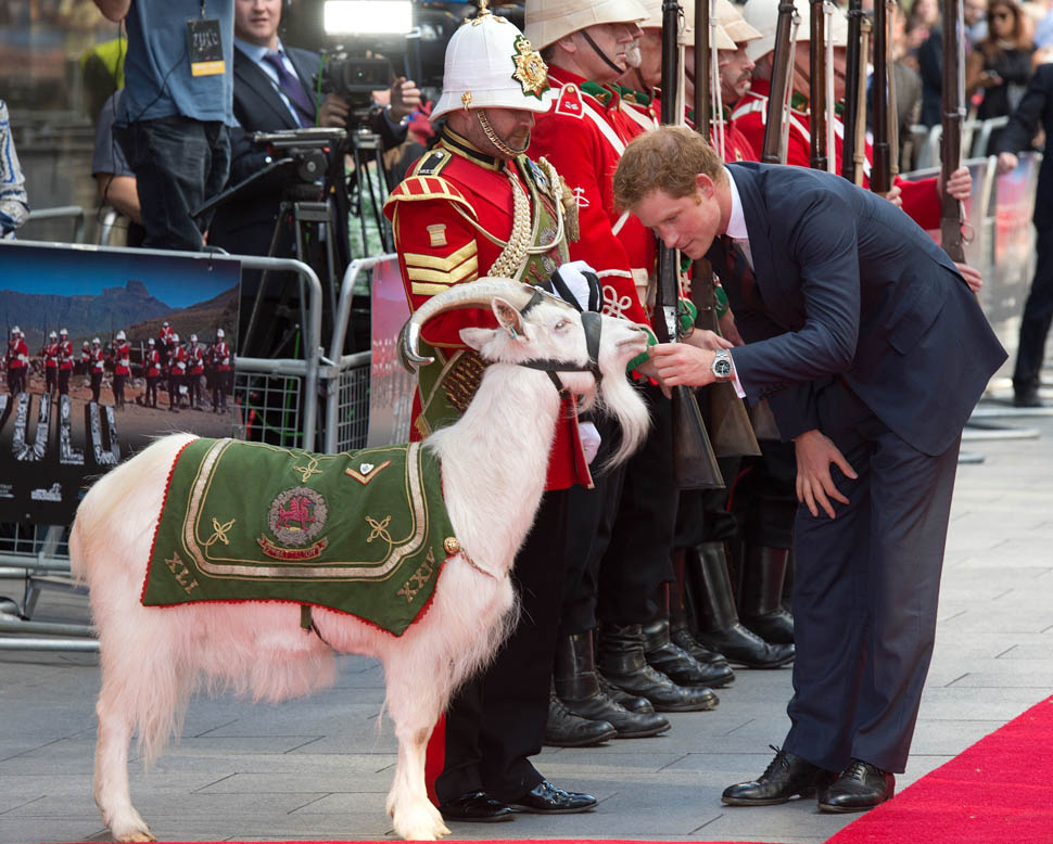 Prince Harry was out yesterday at the 50th anniversary screening of Zulu in London where he hung out with a goat. I could look at Hot Harry with an animal all day.
