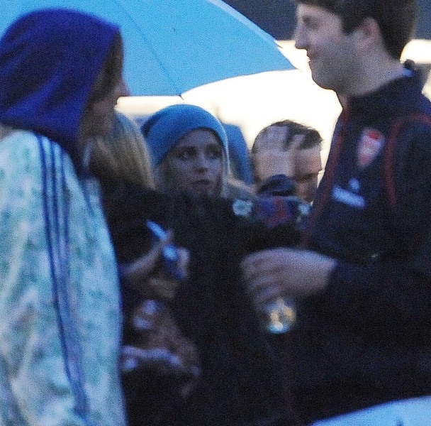 Check him out in what looks like a grey trilby. Hot, right? Cressida’s the one in the blue slouchy beanie. Photo Assumption? I say he’s keeping an eye on her.