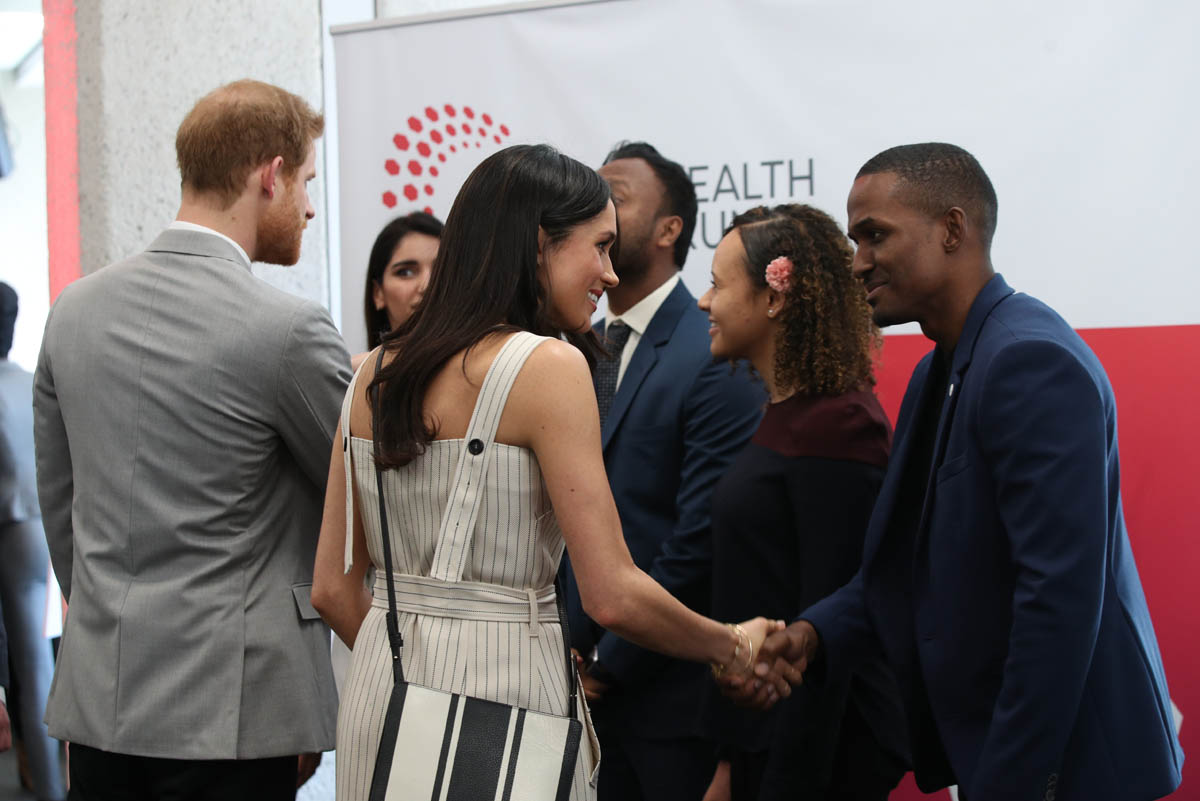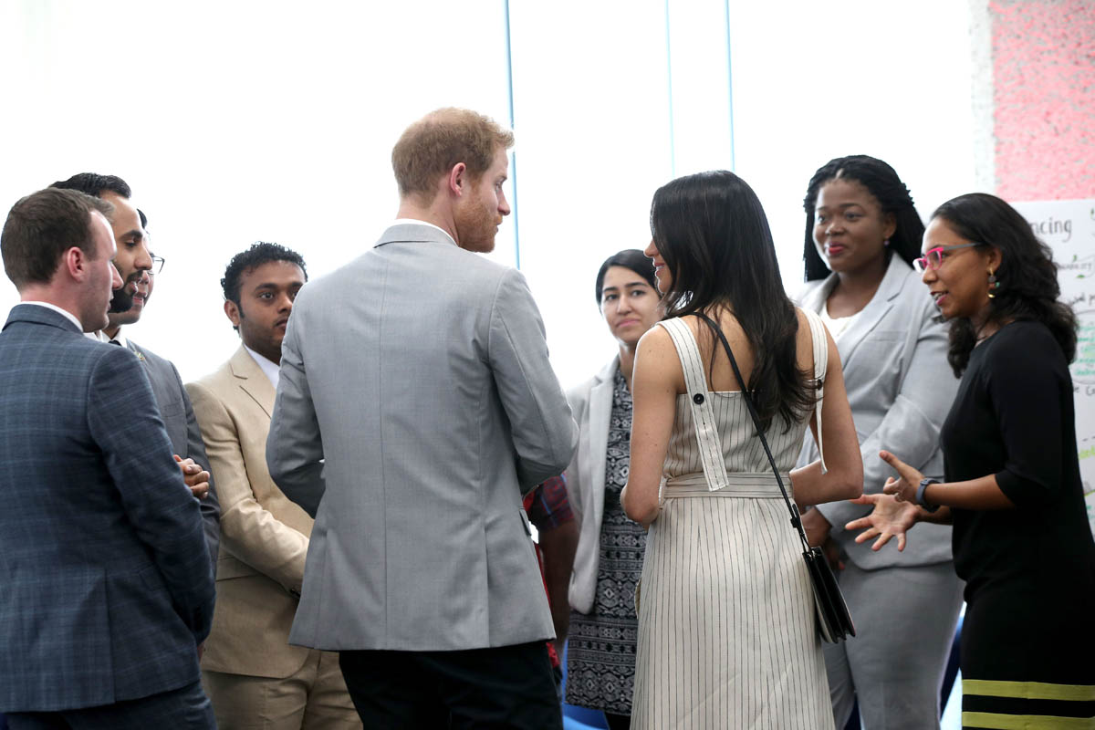 Prince Harry and Ms. Markle also meet past winners of the @QueensLeaders Award, who were taking part in the forum too. #CHOGM2018 pic.twitter.com/5x2OhfRv5j— Kensington Palace (@KensingtonRoyal) April 18, 2018