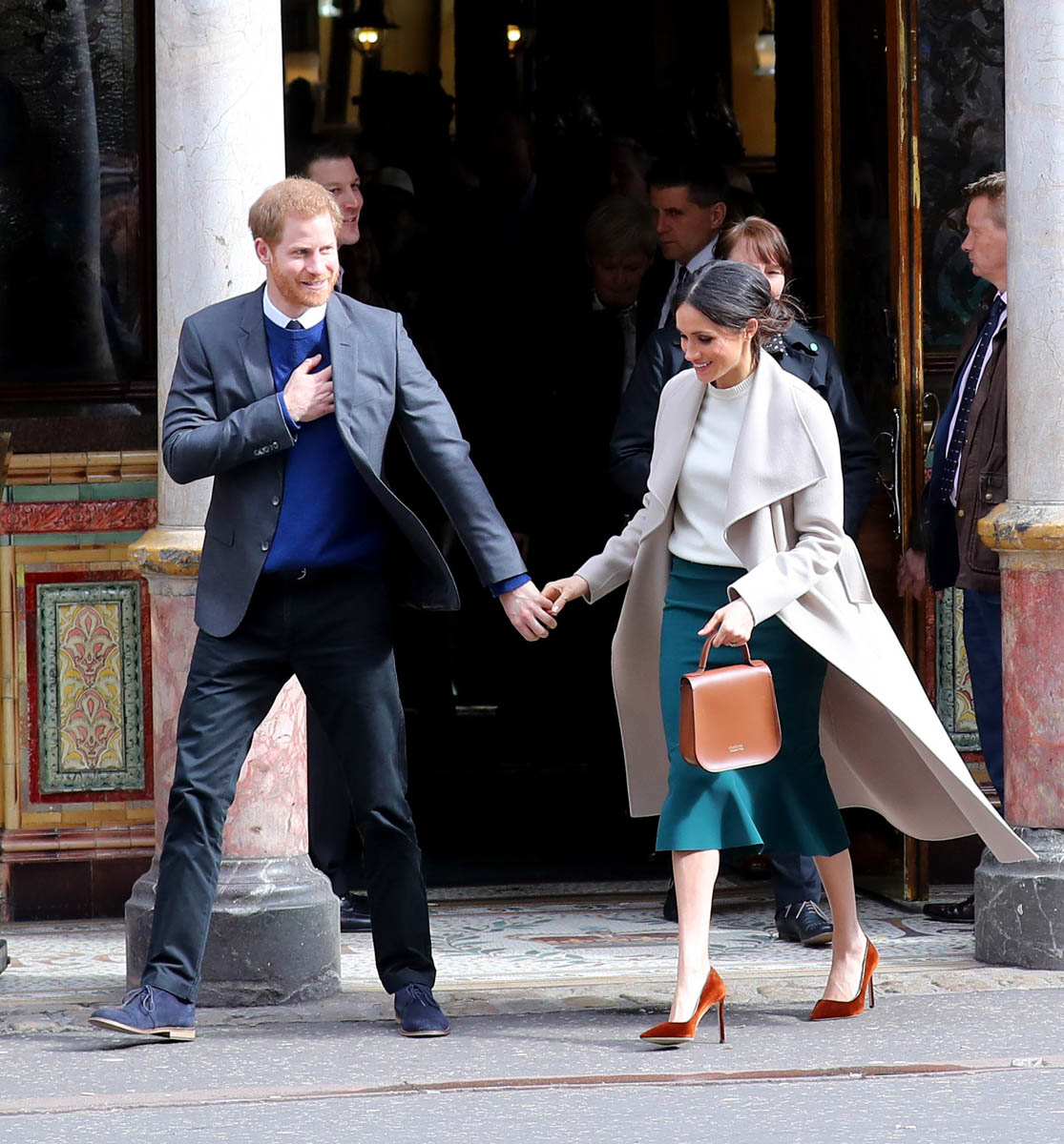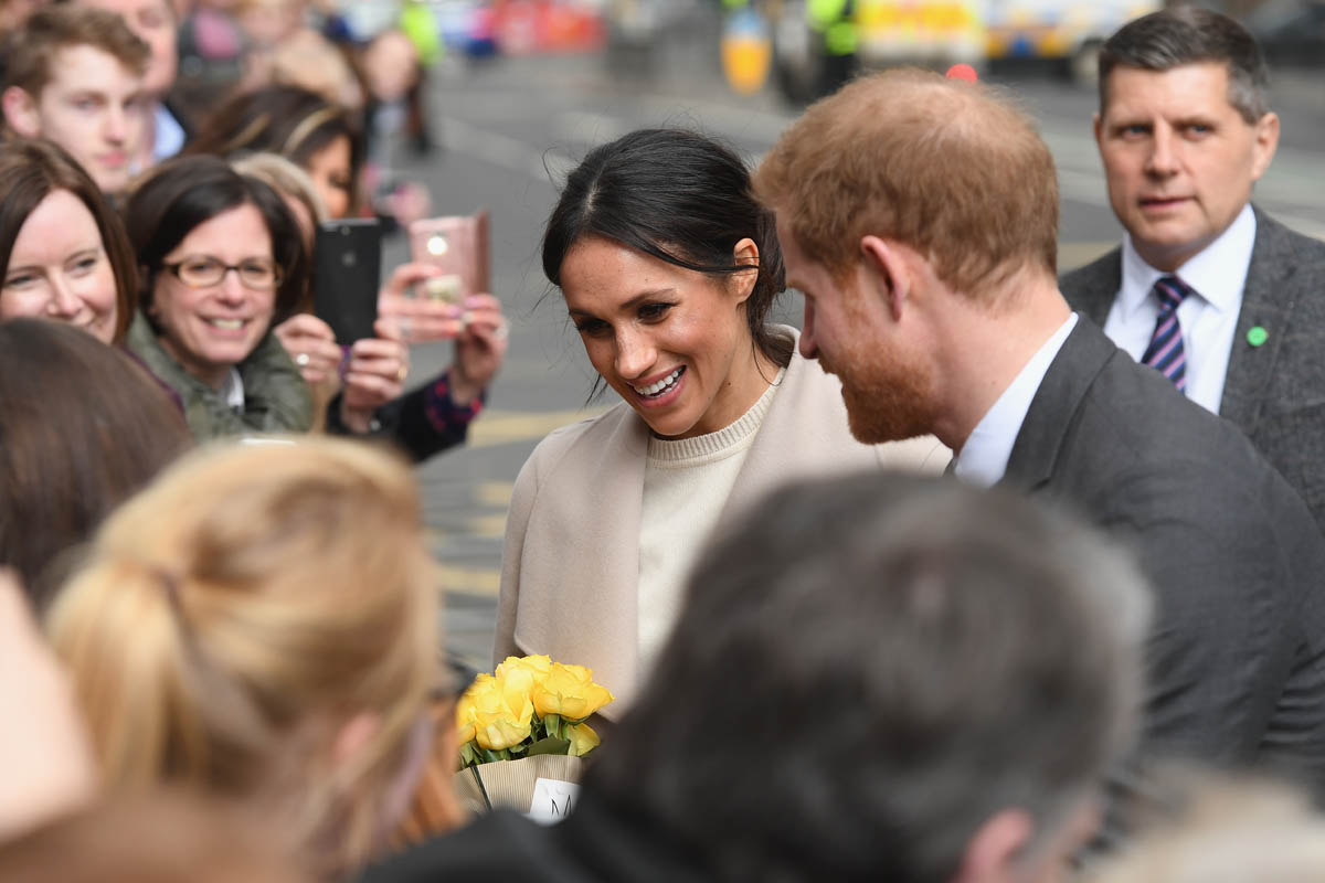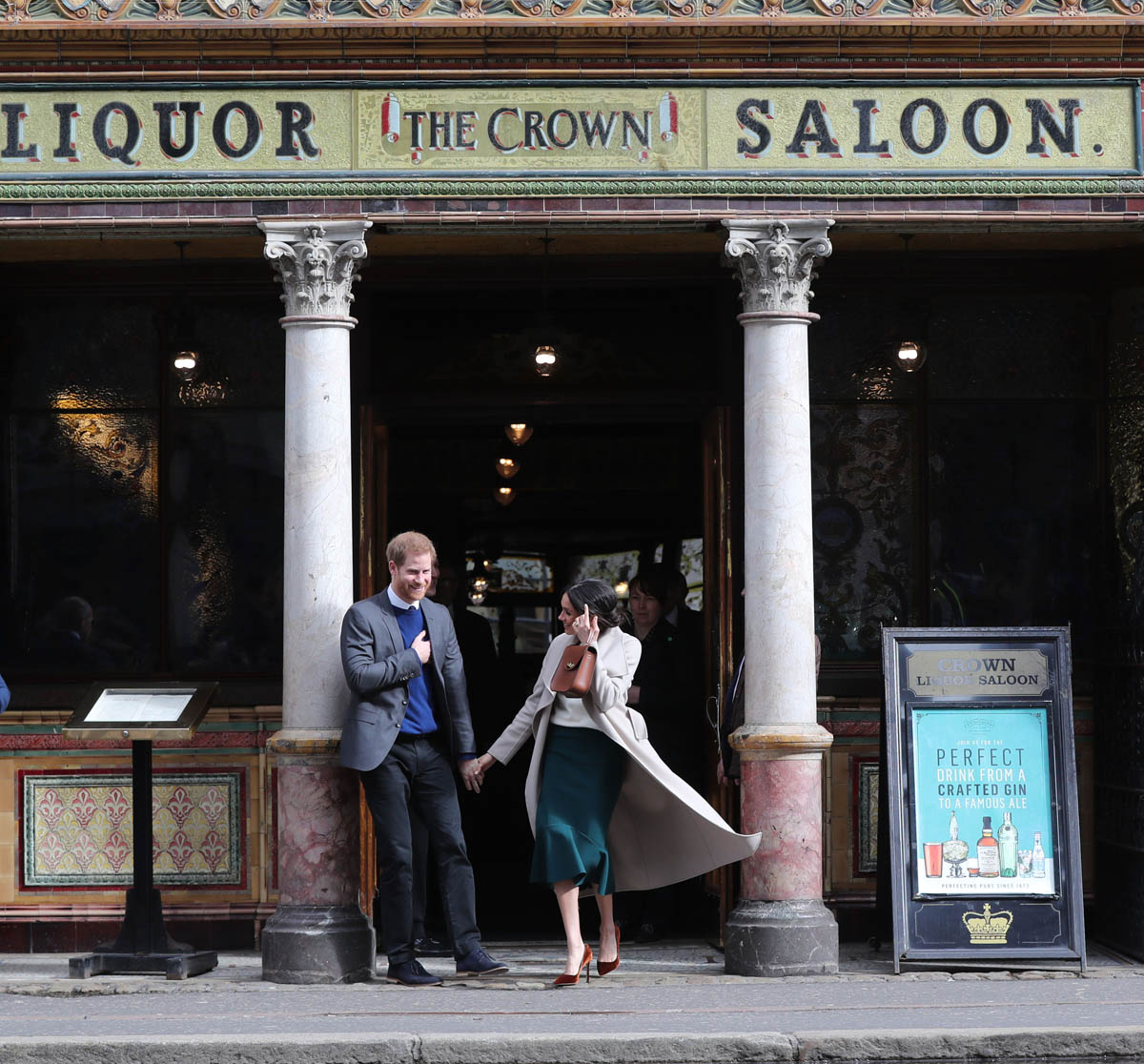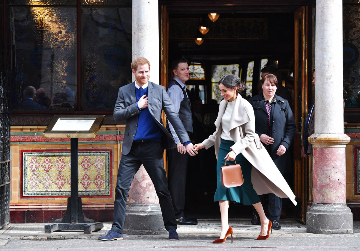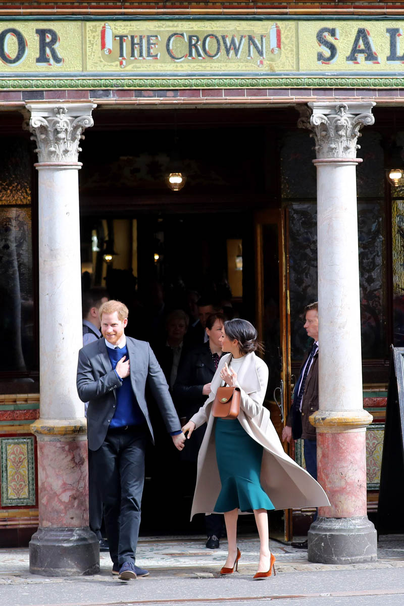 Harry and Meghan leave to meet locals during a walkabout outside the @CrownBarBelfast🙋🏼♂️🙋🏻♀️ pic.twitter.com/O73G2pq8Ii— Omid Scobie (@scobie) March 23, 2018