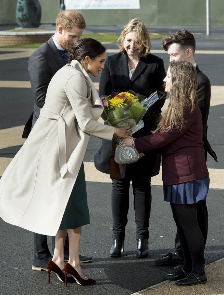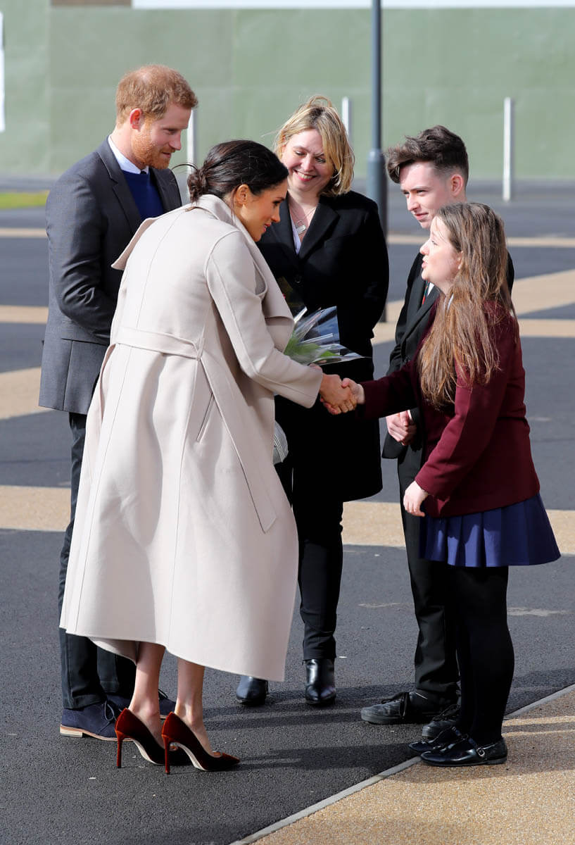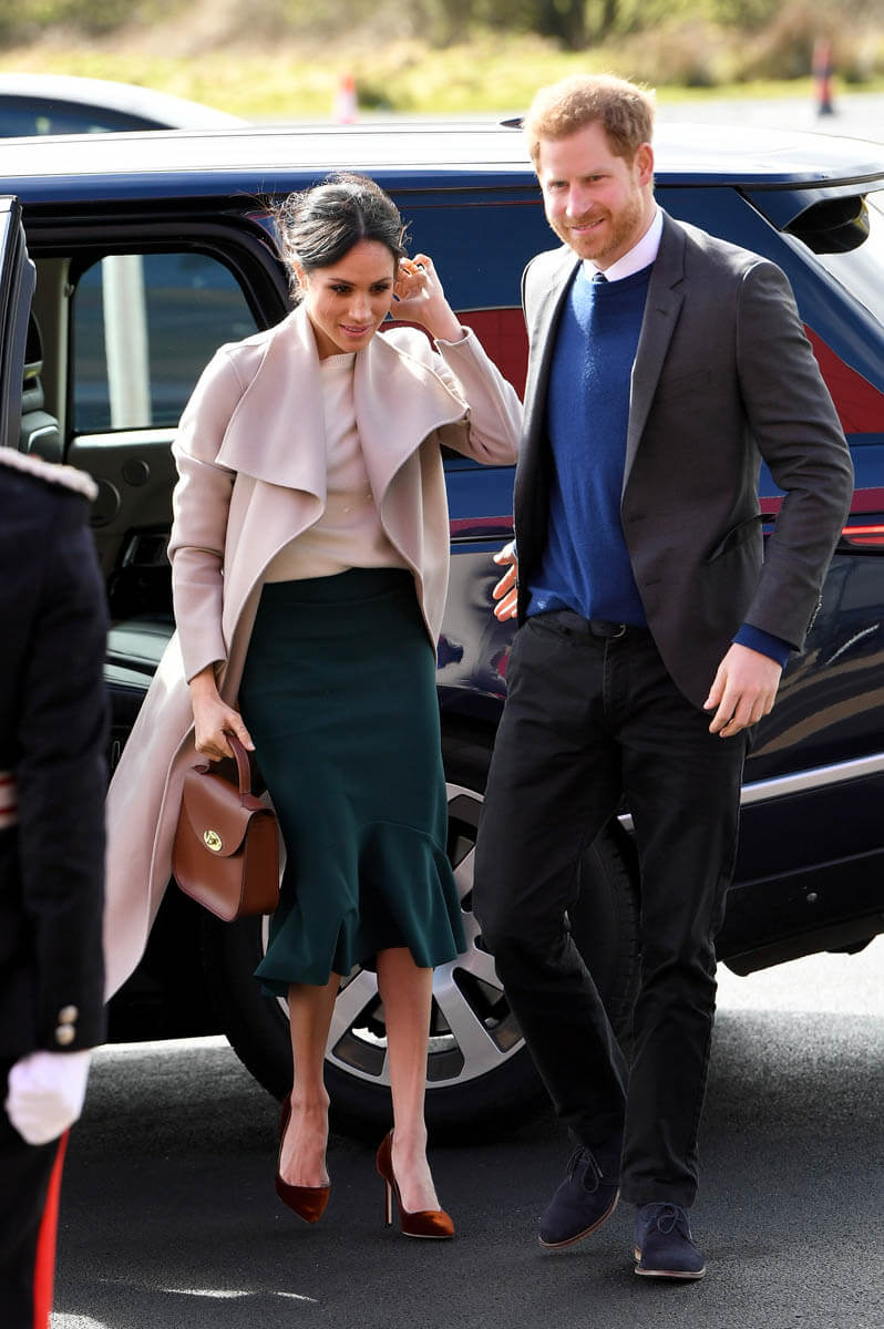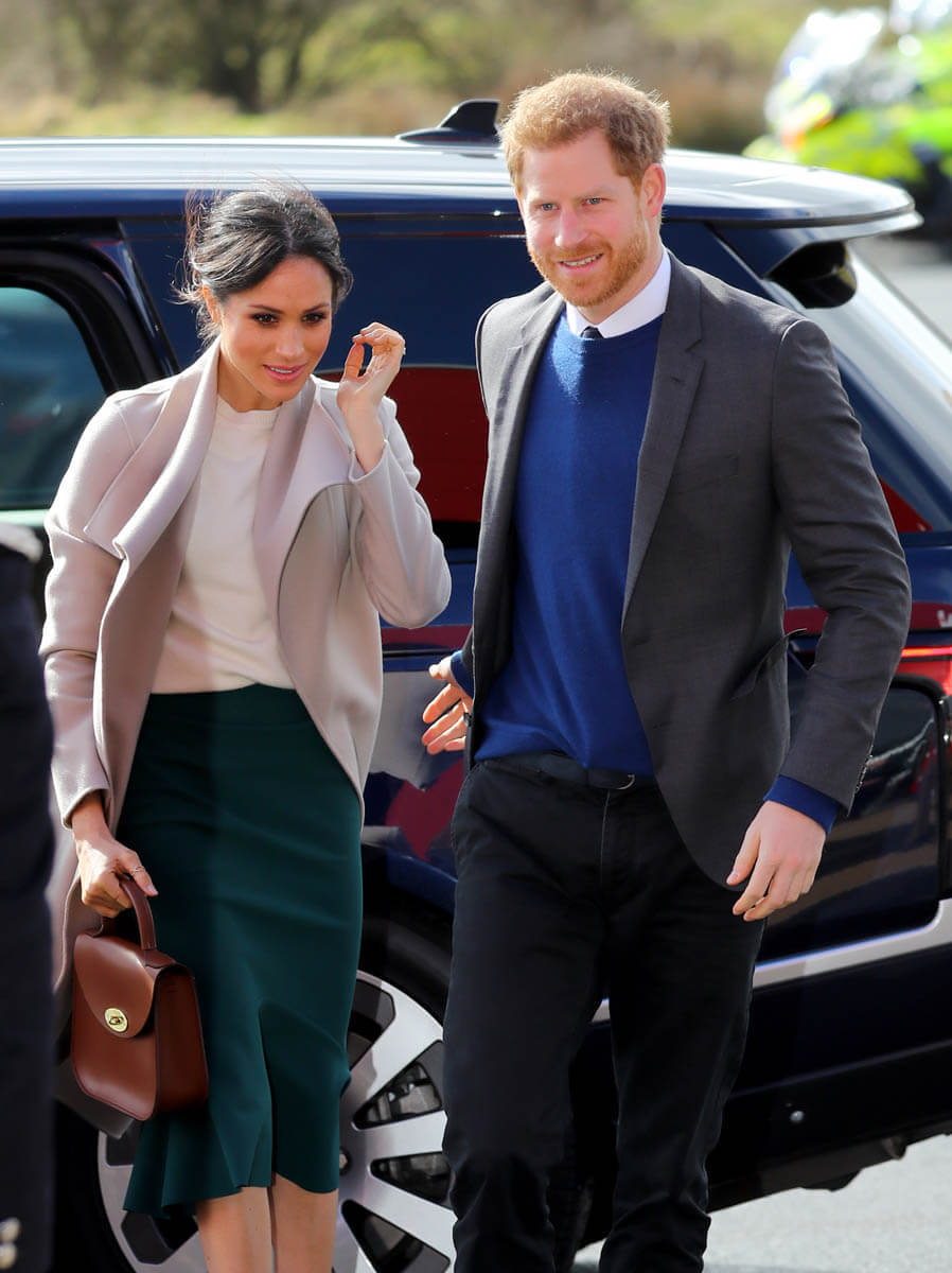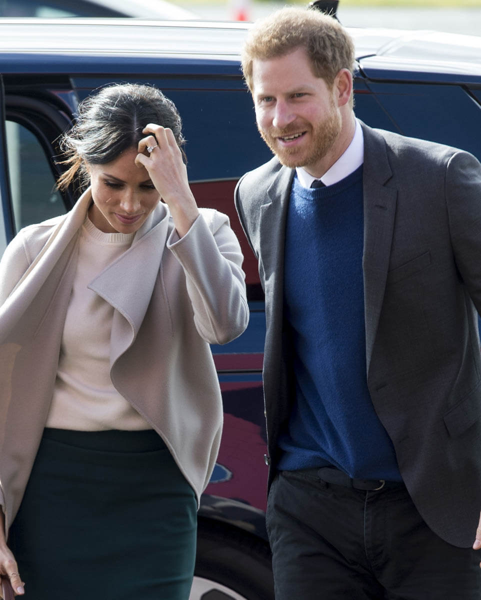Prince Harry and Meghan Markle are in Belfast today for their first official visit to Northern Ireland. Here they are arriving at Eikon Centre to visit Amazing the Space, a youth-led peace-building initiative. The trip was not announced in advance for security concerns although certain royal reporters and members of the press were given a heads-up to prepare.
