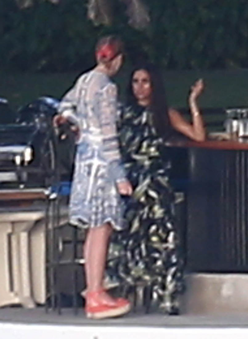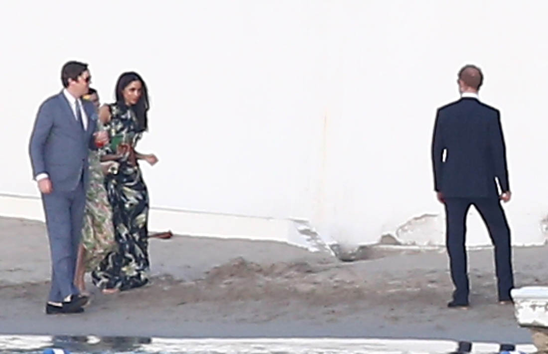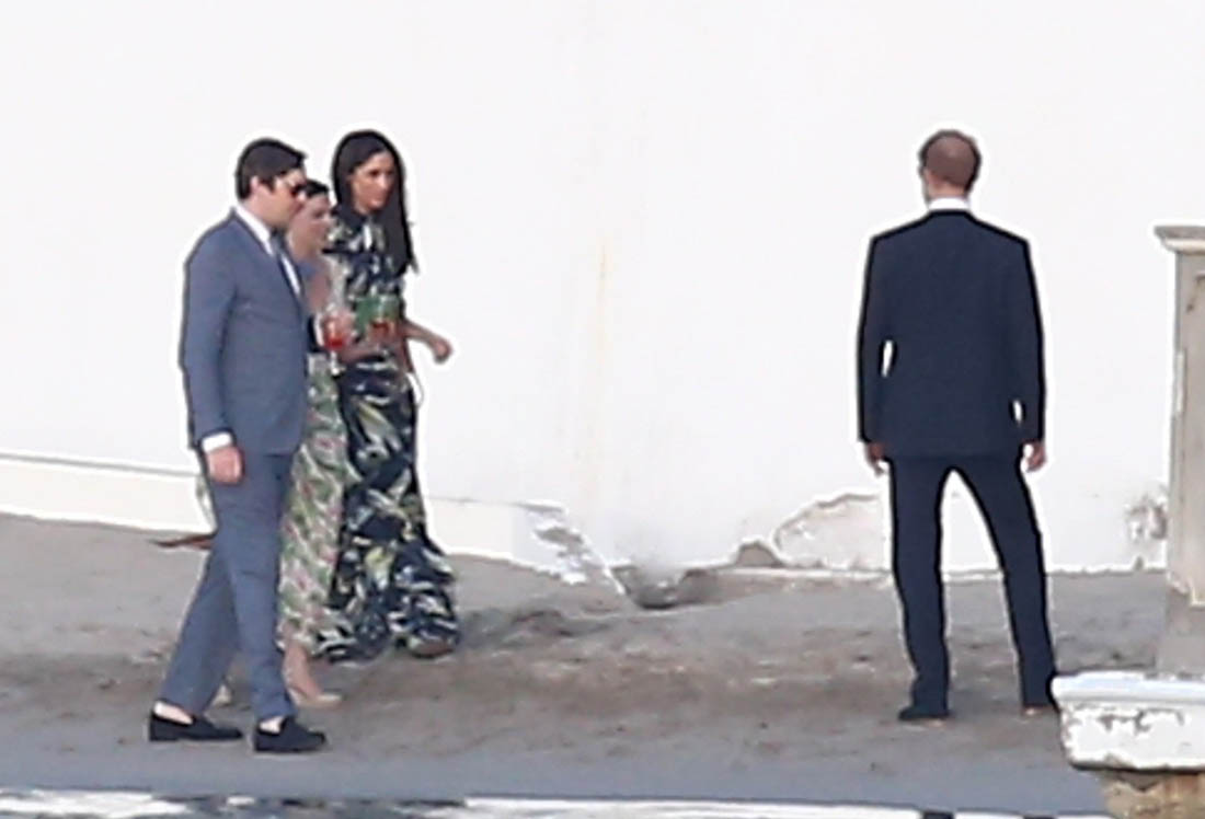Sources tell me that the day before the wedding day photos were taken, the paps were able to get two different sets of photos of Harry and Meghan. According to my sources, they were outside on the upper balcony of their villa. And the images are sensational. They’re kissing, passionately. He has his arms wrapped full around her back, like a really romantic movie kiss. From these pictures, there’s no denying that their situation is SUPER hot. Then they go down to the beach. She’s in a dark green bikini. They’re holding hands in the water – the only word to describe what they’re doing is “frolicking”. They’re frolicking in the ocean. And laughing.