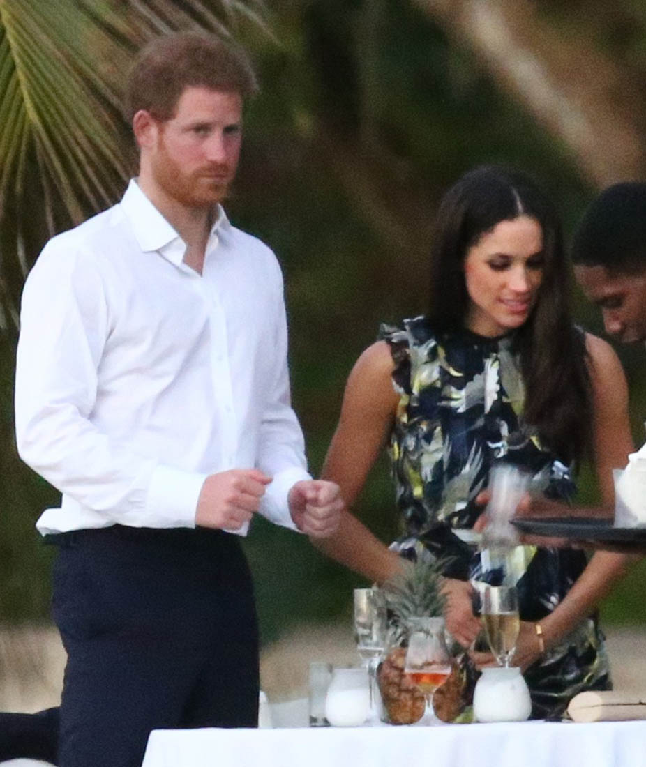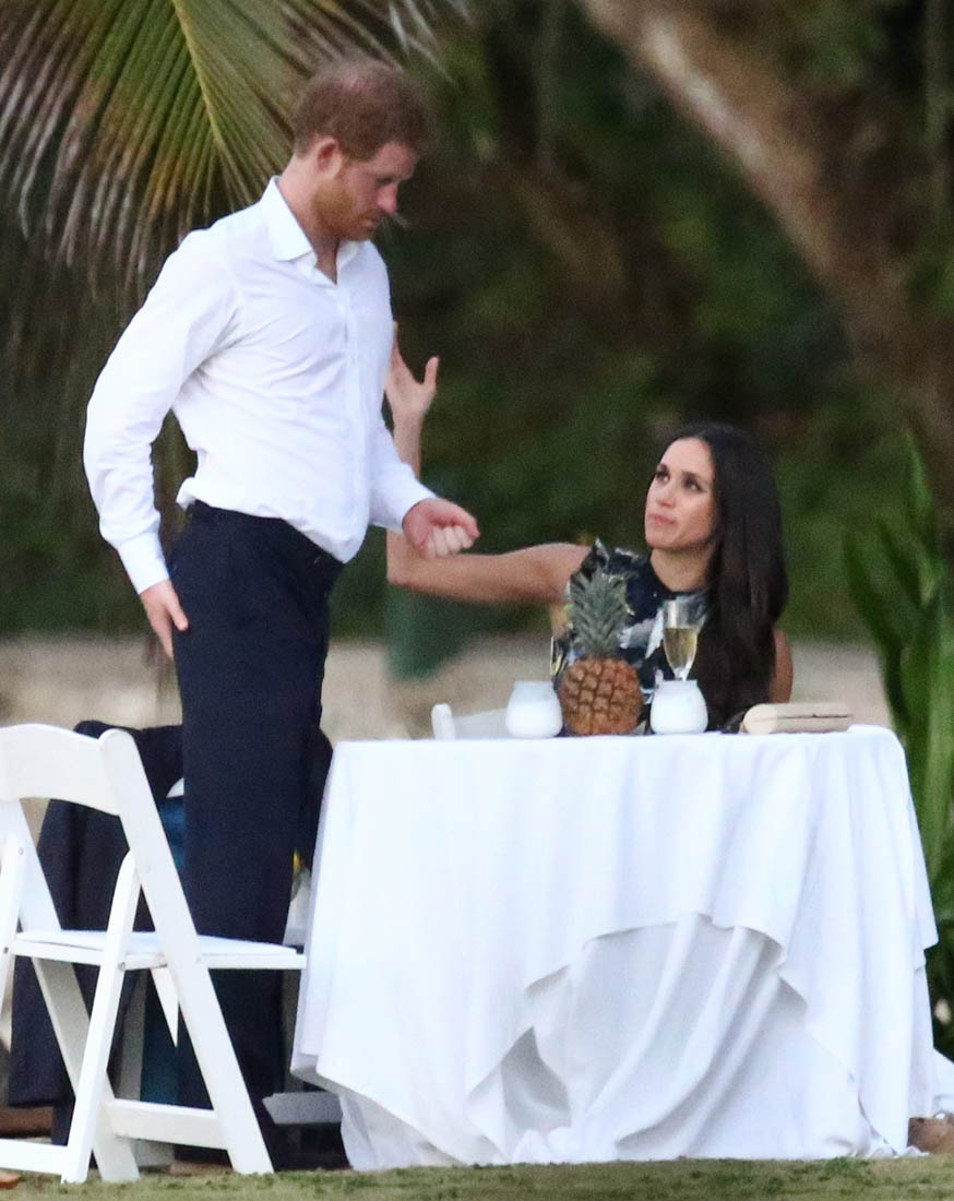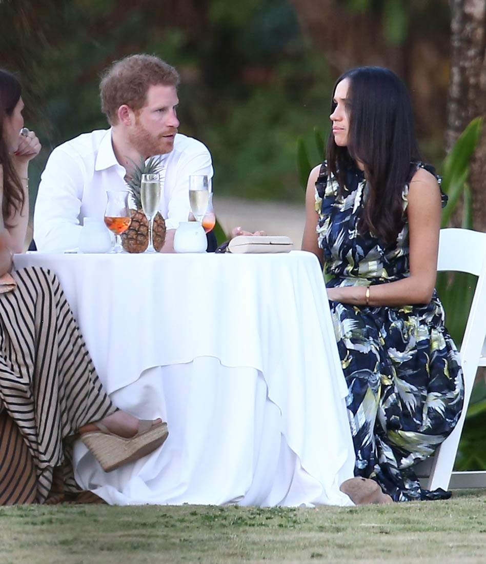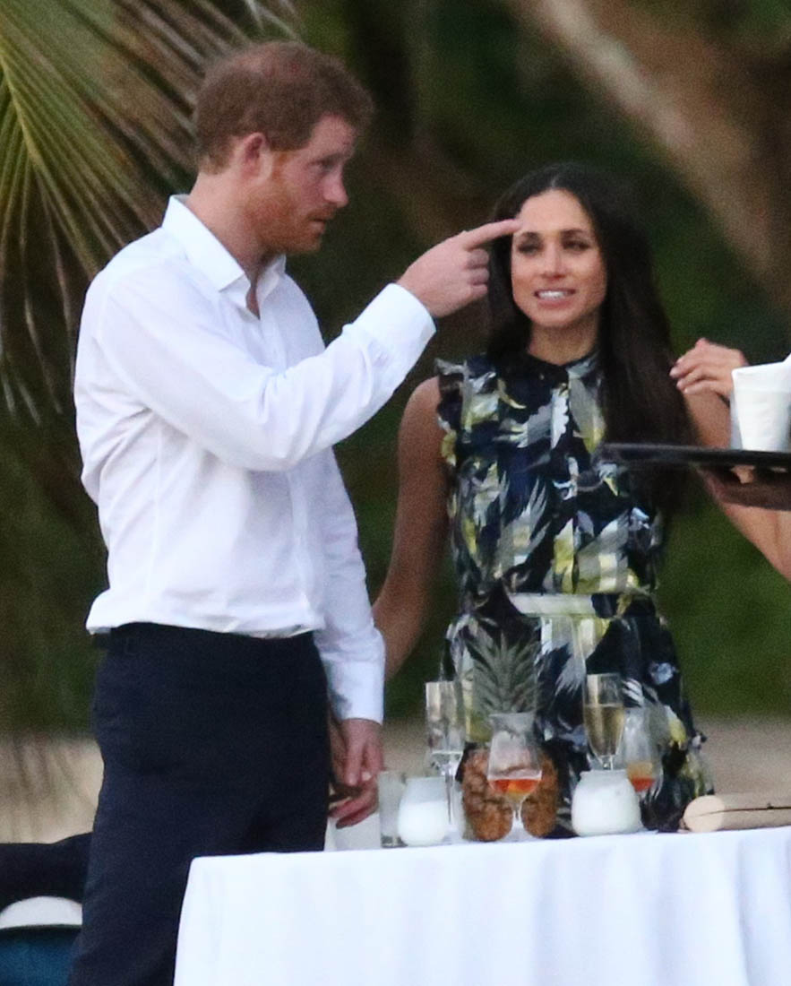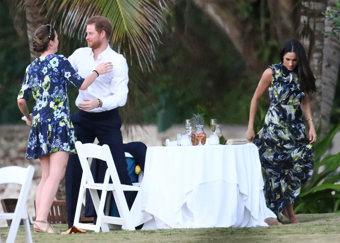 I was waiting on some additional information which is why I didn’t get to this yesterday so you’ve probably already seen these photos of Prince Harry and Meghan Markle in Jamaica at his friend’s wedding. What surprised me though is that some of you have emailed and tweeted at me about the Photo Assumption that’s going on about some of these shots? Basically there are people photo assuming from a few of these pictures that Harry and Meghan don’t look happy and that it’s going to be over soon.