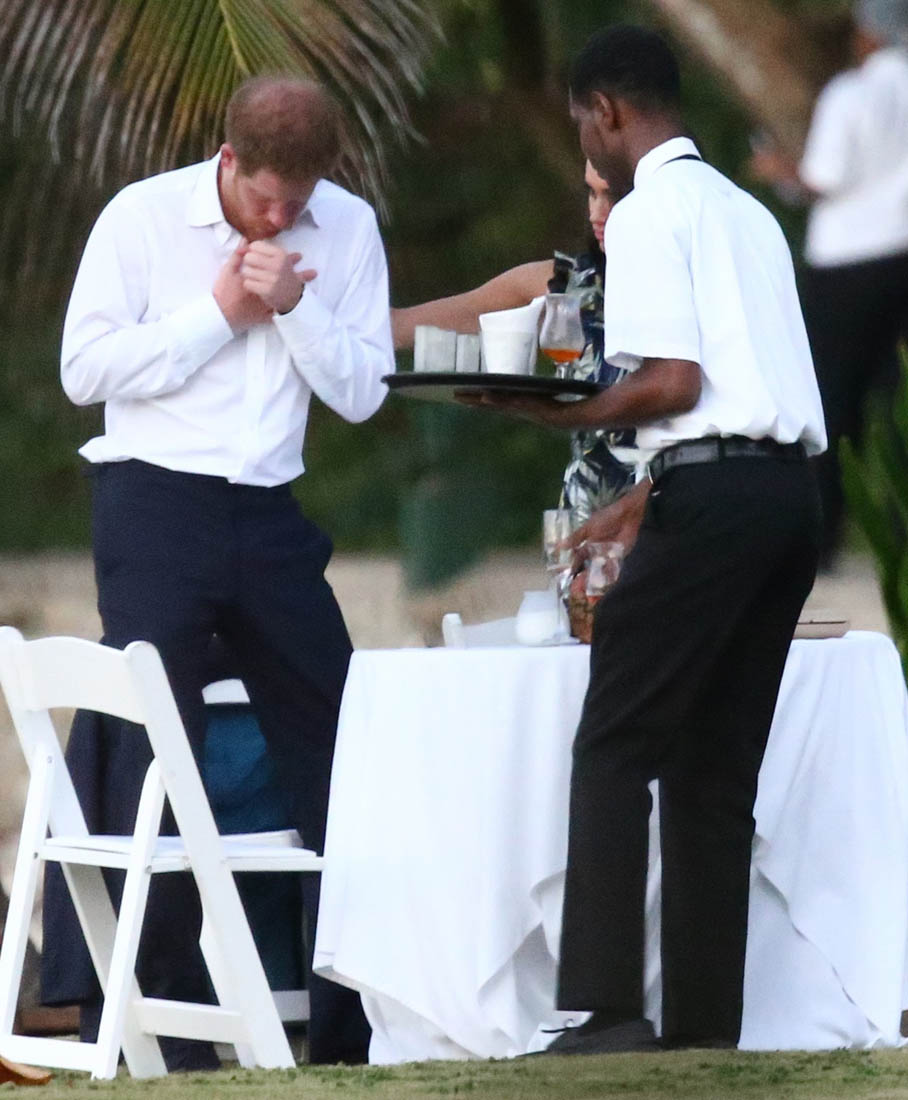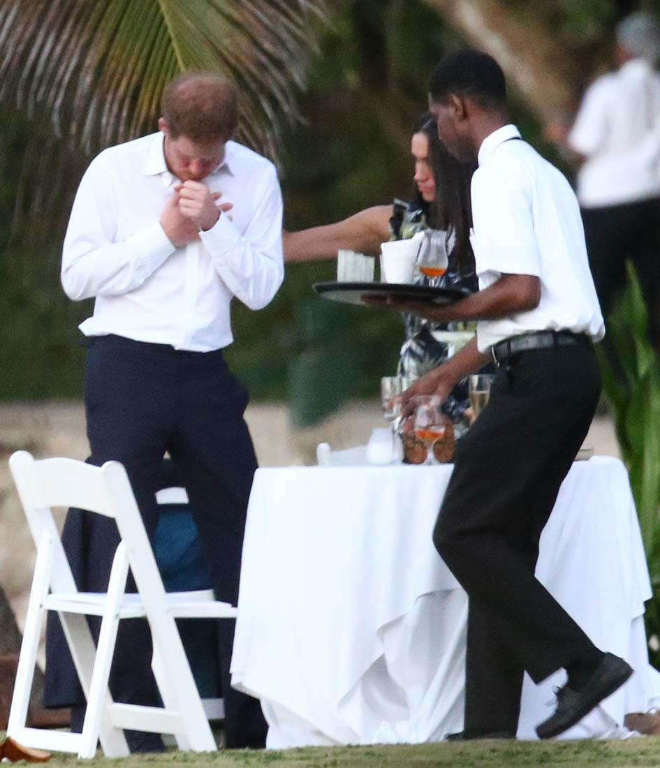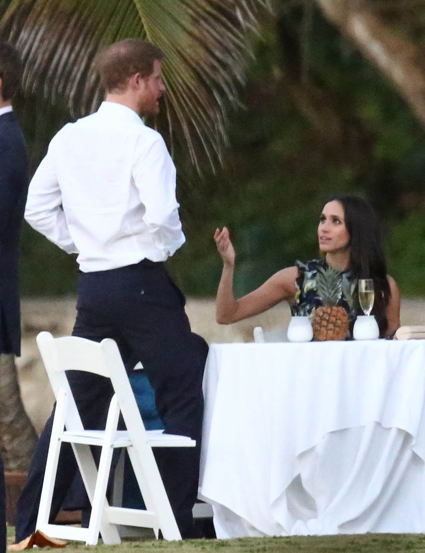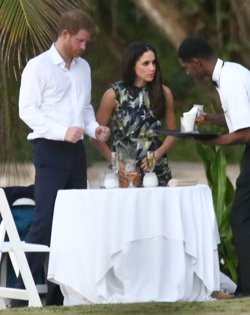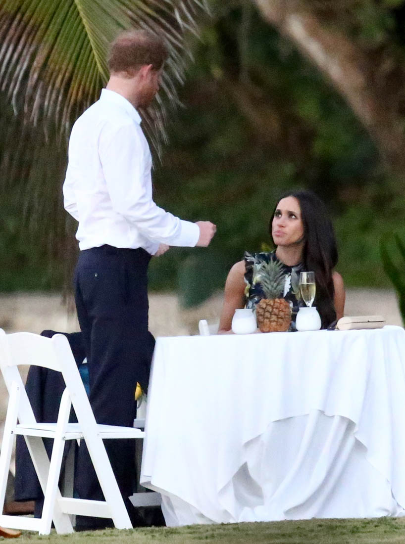 I was waiting on some additional information which is why I didn’t get to this yesterday so you’ve probably already seen these photos of Prince Harry and Meghan Markle in Jamaica at his friend’s wedding. What surprised me though is that some of you have emailed and tweeted at me about the Photo Assumption that’s going on about some of these shots? Basically there are people photo assuming from a few of these pictures that Harry and Meghan don’t look happy and that it’s going to be over soon.