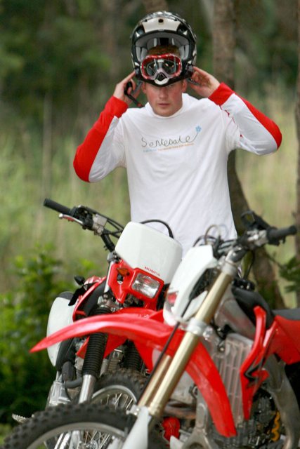 Hot Harry hopped on a bike today to participate in the Enduro Africa 2008 Motorcycle Rally to benefit UNICEF, Sentebale and the Nelson Mandela Children's Fund in South Africa.