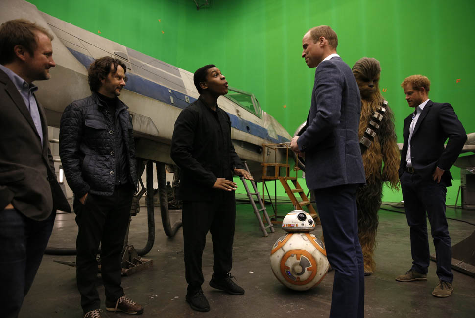 I opened with Princes William and Harry visiting the Star Wars Episode VIII set today at Pinewood Studios outside of London. Here are some more shots of them with the cast, including John Boyega and Daisy Ridley.