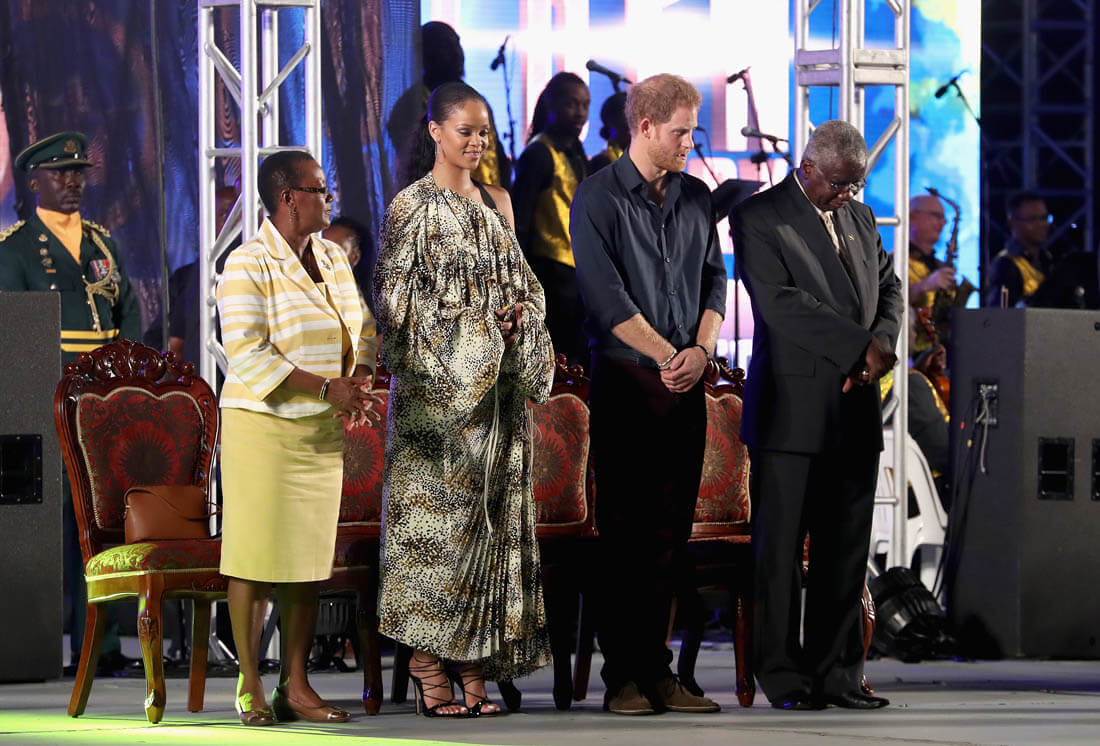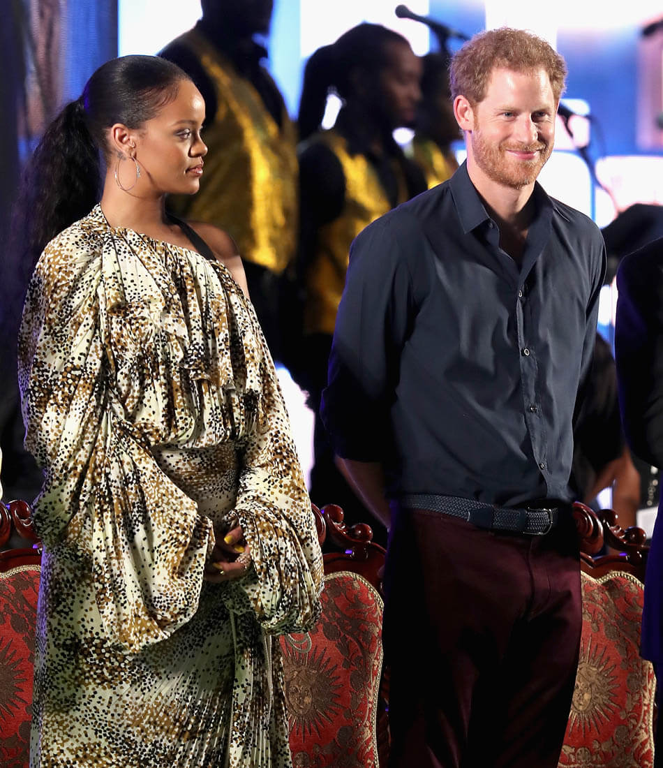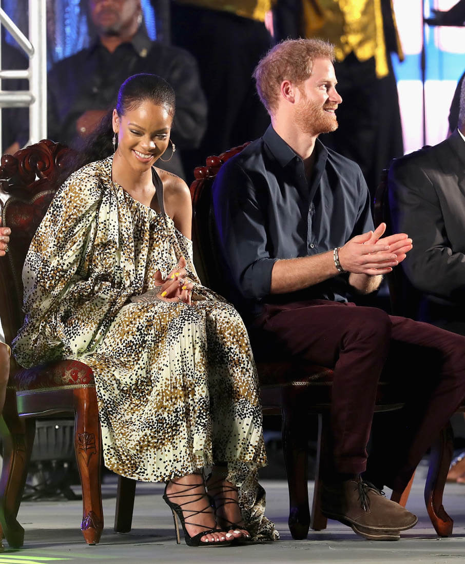 As mentioned yesterday, Rihanna went home to Barbados yesterday to celebrate the 50th anniversary of the country’s independence. And Prince Harry is in Barbados on his tour of the Caribbean. They met at a reception in the afternoon and then they both attended the celebration concert in the evening. My Photo Assumption says that Harry seems more star-struck than she does. Look at his face. “OMG I’m meeting RiRi!”