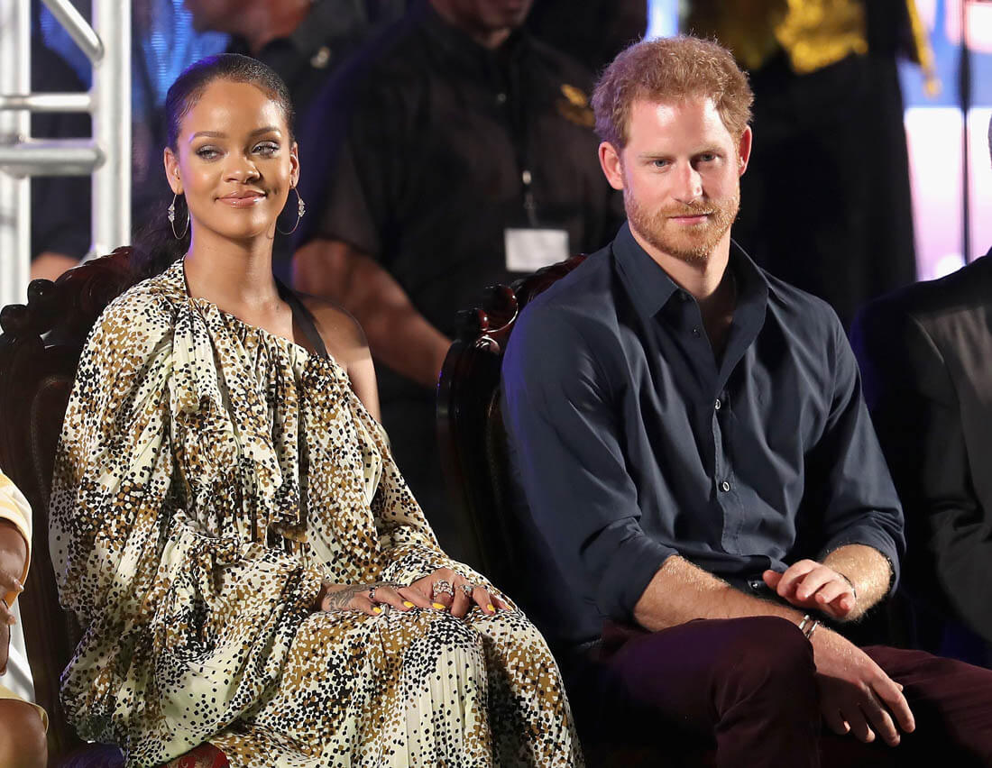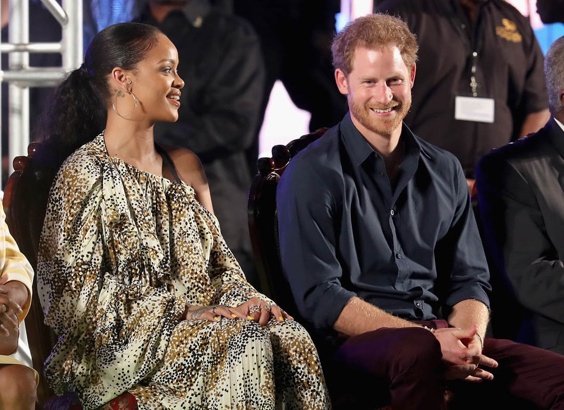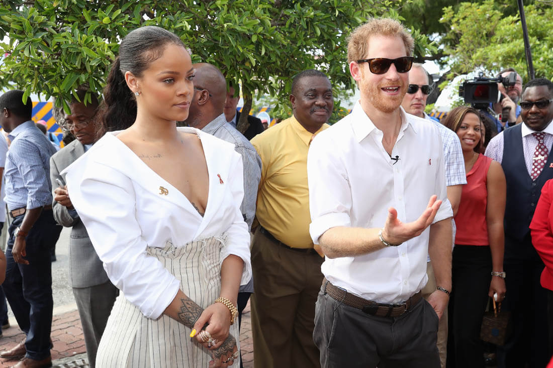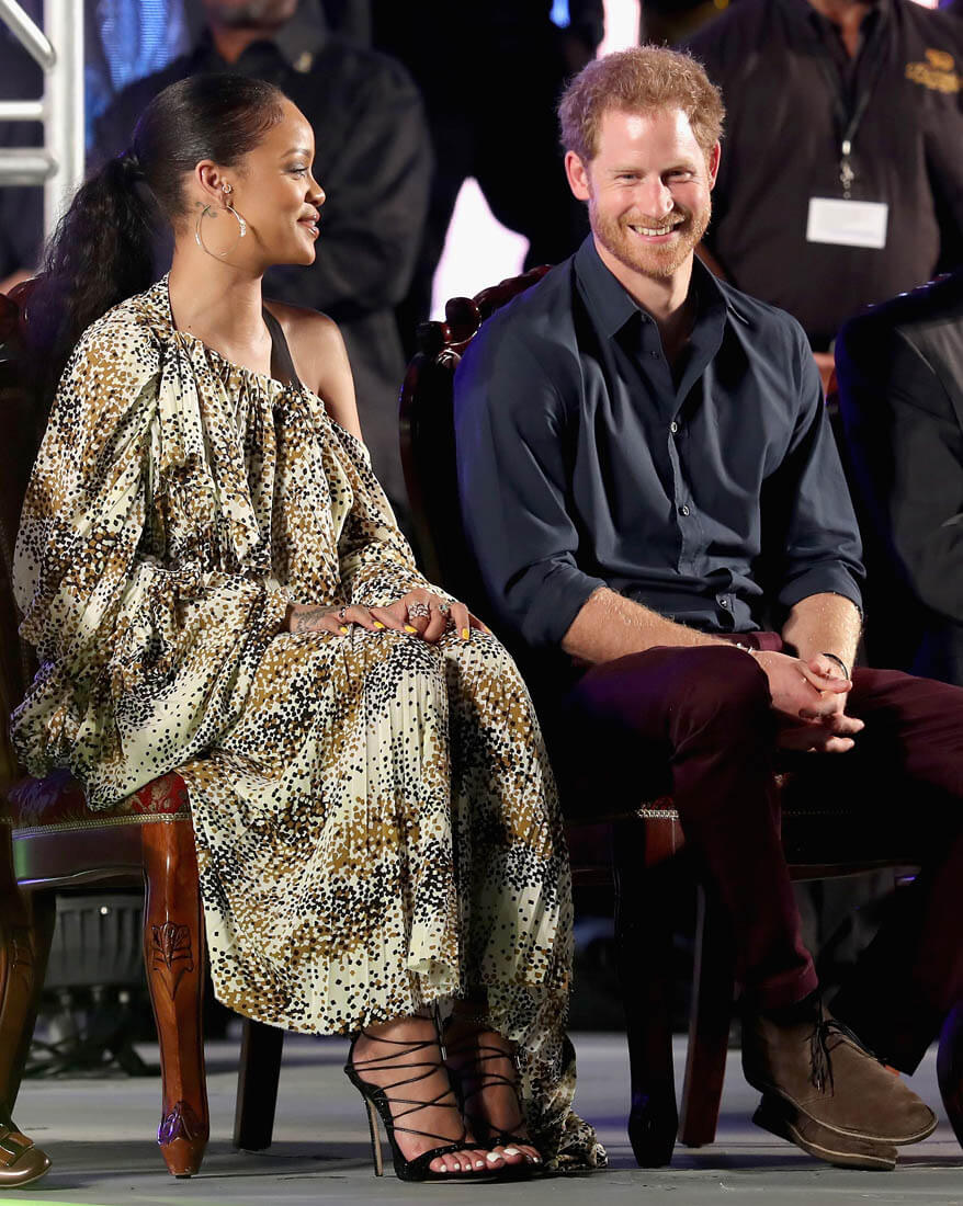As mentioned yesterday, Rihanna went home to Barbados yesterday to celebrate the 50th anniversary of the country’s independence. And Prince Harry is in Barbados on his tour of the Caribbean. They met at a reception in the afternoon and then they both attended the celebration concert in the evening. My Photo Assumption says that Harry seems more star-struck than she does. Look at his face. “OMG I’m meeting RiRi!”