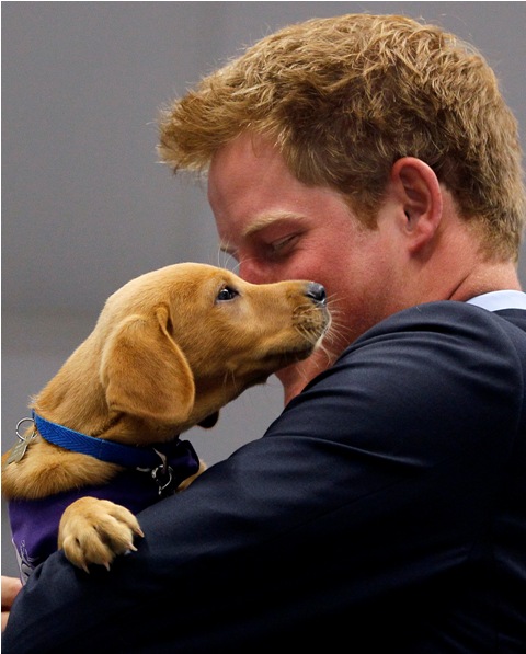So here he is with the puppies in 2010 and his adorable smile and it’s a cute explosion up in there and, really, how can you resist this? How can you resist a prince and a puppy?