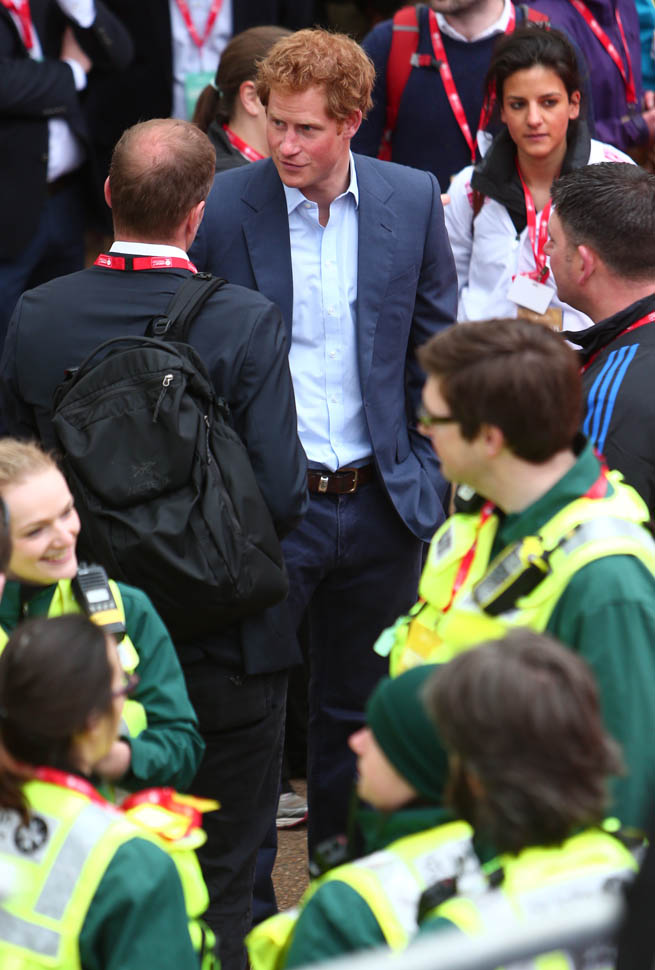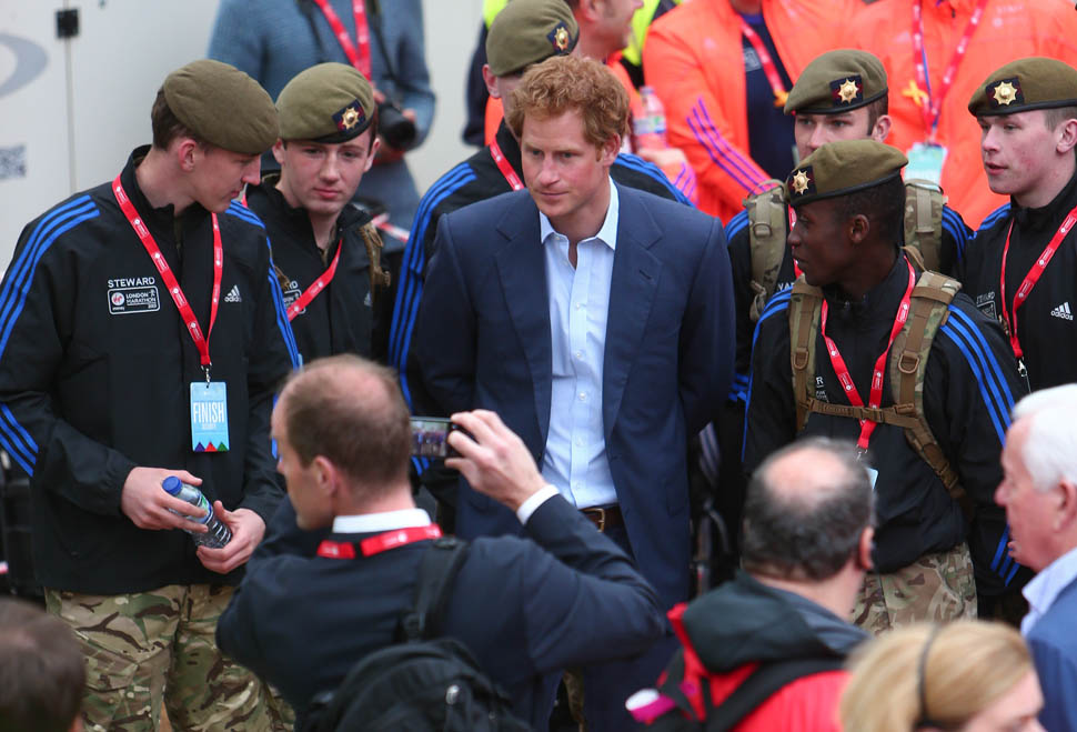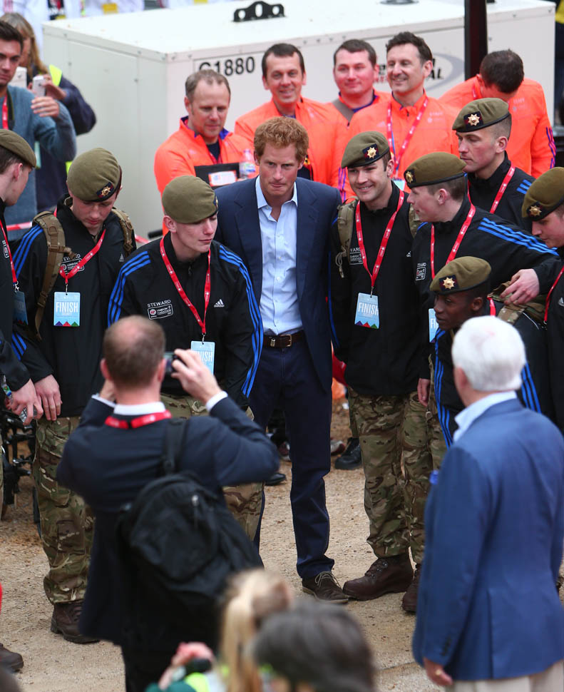 Hot Prince Harry has been in Australia the last few weeks on secondment with the military. He took a leave this weekend however and joined his father in Turkey to commemorate the centenary of the WWI Gallipoli campaign on Saturday. On Sunday he was home in London for the London Marathon, meeting racers at the finish line and spending time with volunteers. Some thought that the timing would be perfect and that he’d conveniently be in town for the arrival of the baby. According to US Weekly, he visited with Will and Kate in the morning but is now off, back to Australia for duty, and will miss the birth, not that he’d be too broken up about that. It’s not like if he was around he’d be in the delivery room.