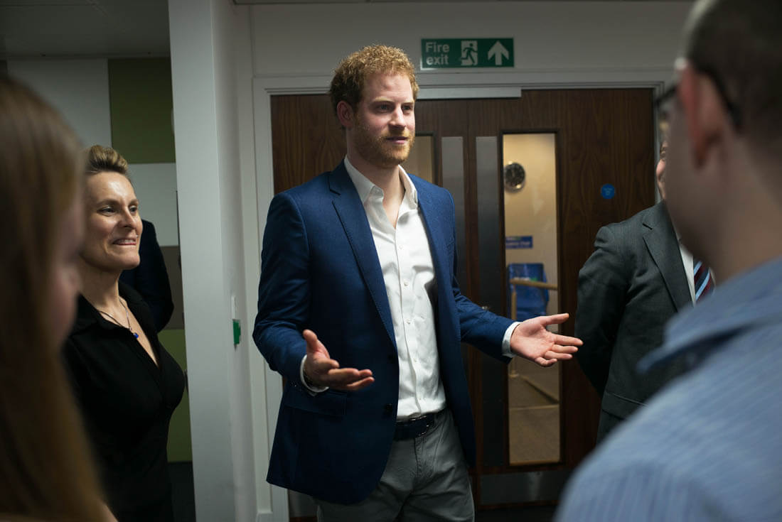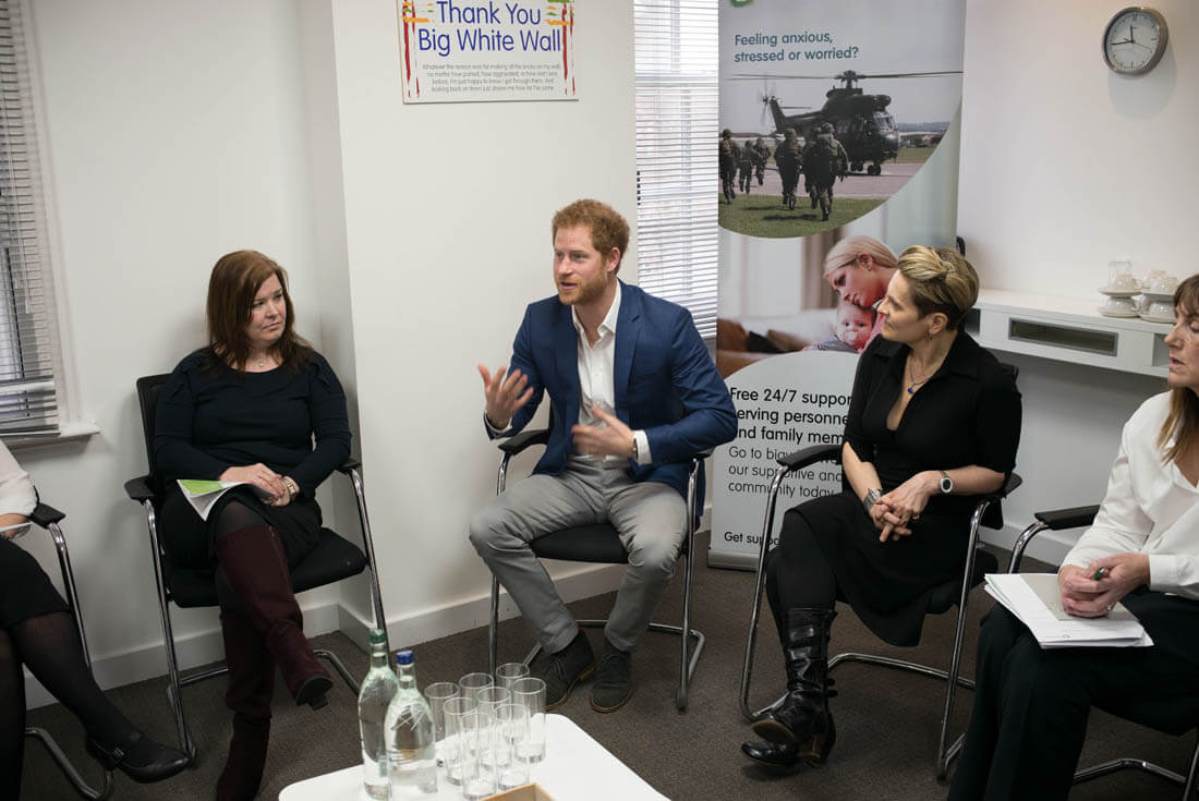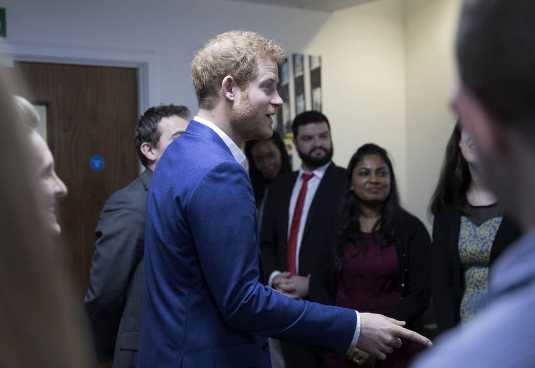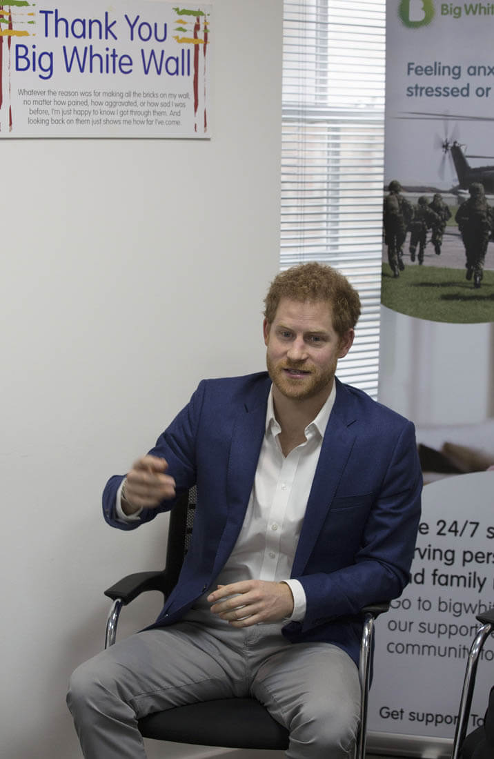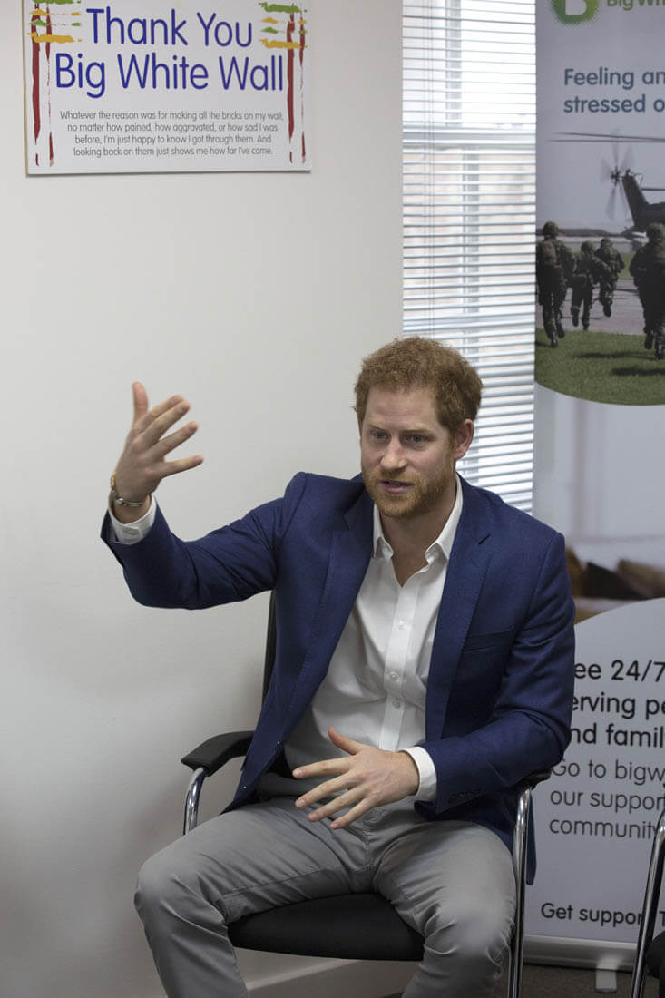Here's Prince Harry visiting Big White Wall, a mental health service in London on Monday.