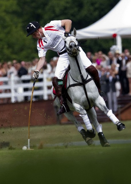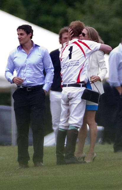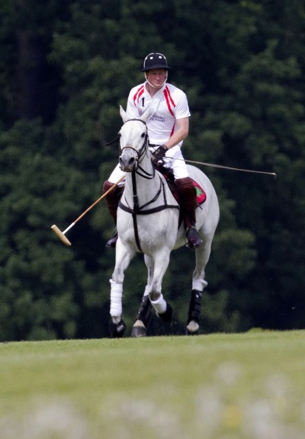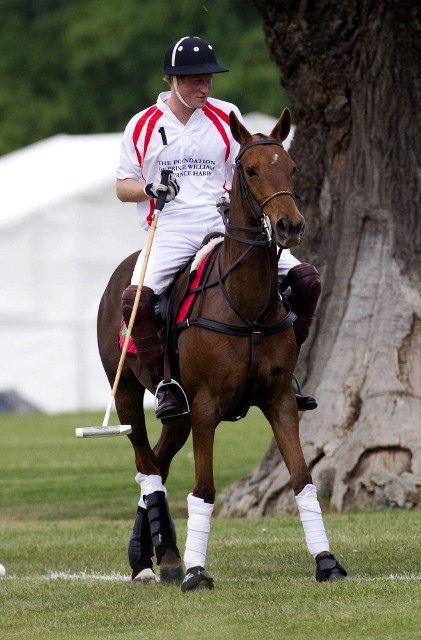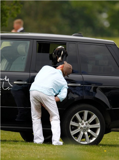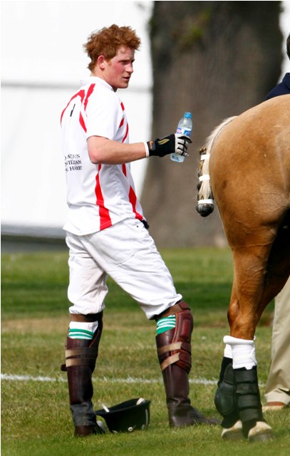 Anyway, last week Hot Harry made us weak when he was sweet with the children and popped out a wiggly worm at just the right moment. This weekend he was back on a horse, playing polo for charity, and sharing a tender moment with a dog in car…