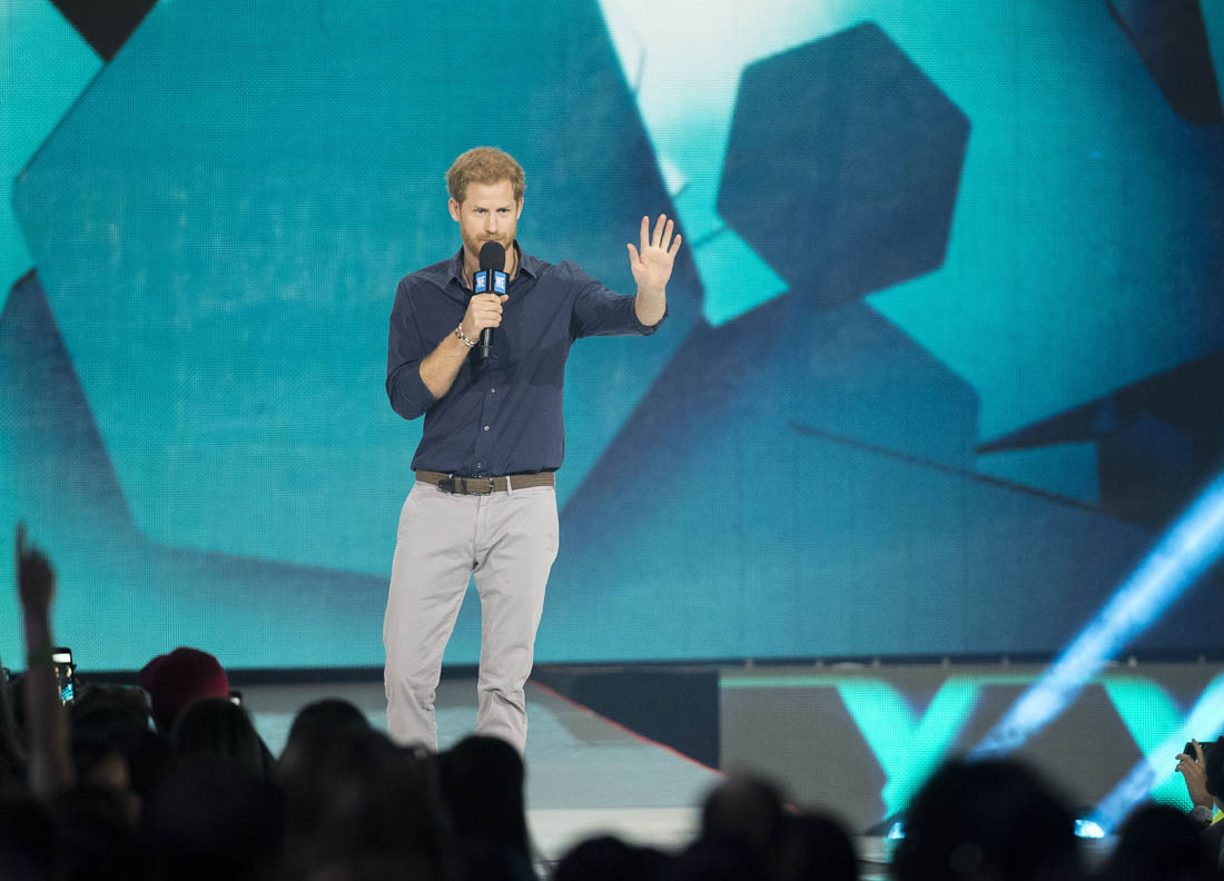 Prince Harry made a surprise appearance at WE Day Toronto yesterday. He opened his remarks by shouting out the Invictus Games and then continued on to encourage young people to continue find ways to give back, to contribute to their communities. And he challenged the youth to stay open, to reject cynicism, to look for the truth, to overcome “entrenched mindsets”, to “say yes to optimism, yes to hope, and yes to belief”.