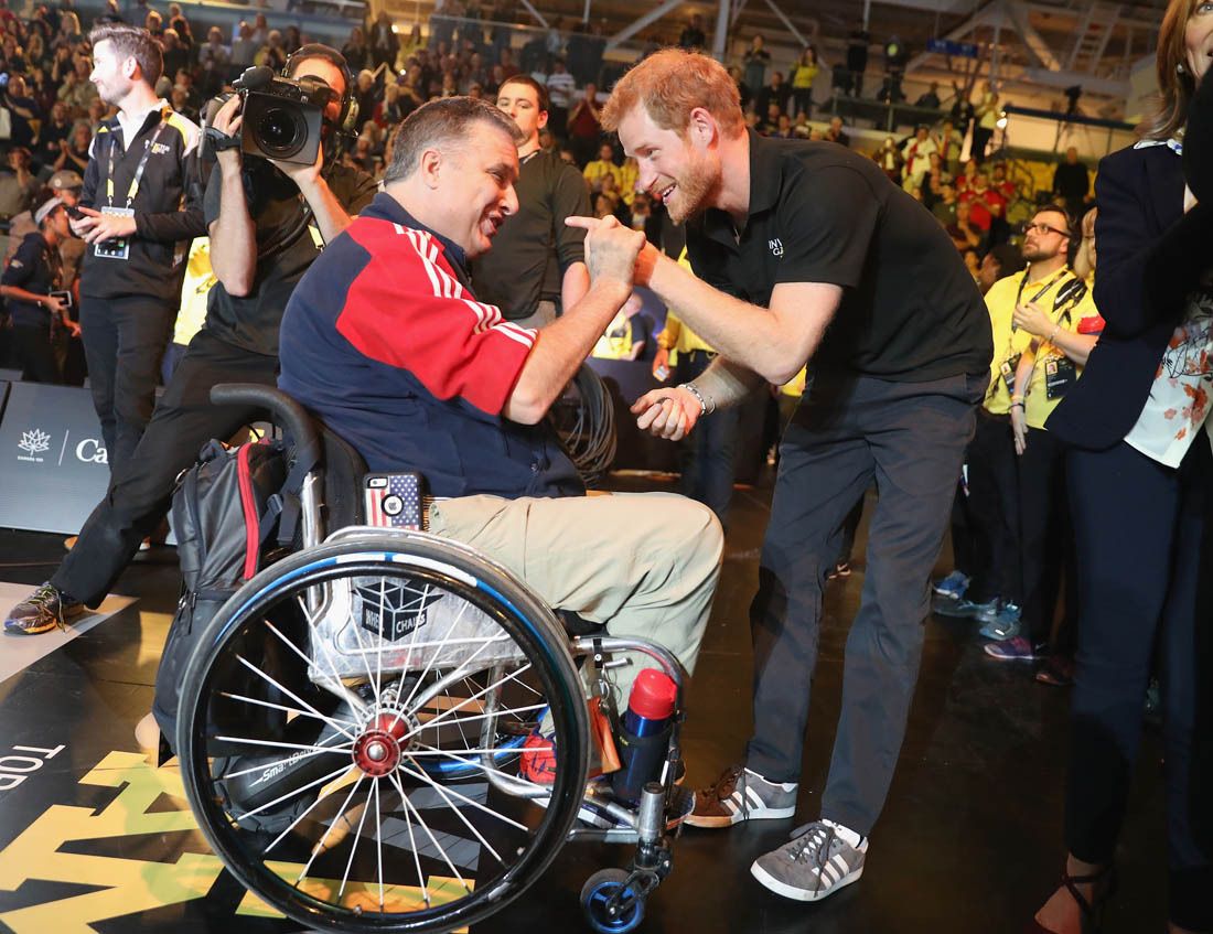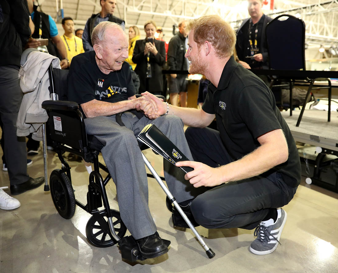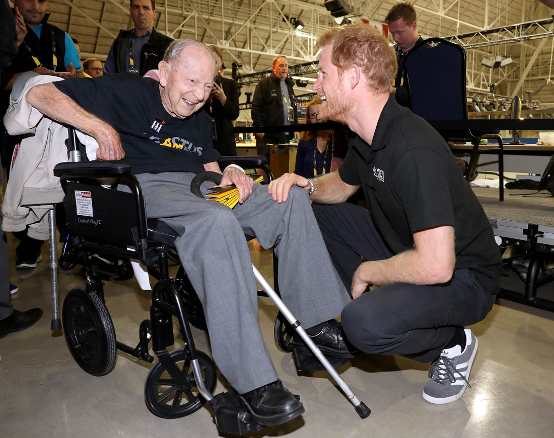 After WE Day, Harry attended wheelchair rugby and also met with 101-year-old James Norman Baker, WW2 veteran, who spoke at the event to thank Prince Harry for giving veterans the opportunity to compete and to tell their stories. Harry was so moved by the speech he sought out “Norm” immediately afterwards. I love how delighted they are with each other.