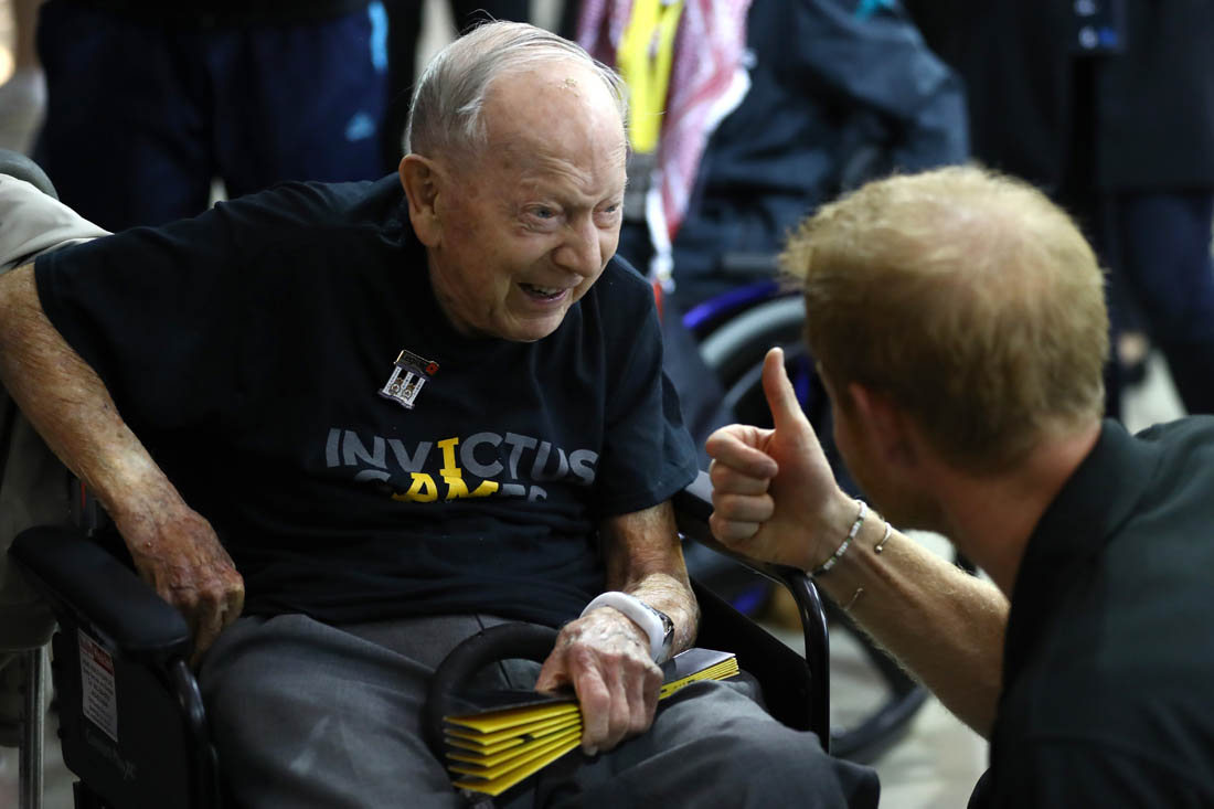 Prince Harry meets WW2 veteran James Norman Baker aged 101, after he gave the crowd a moving tribute about the impact of the #InvictusGames. pic.twitter.com/ccDkjPVp6G— Kensington Palace (@KensingtonRoyal) September 29, 2017