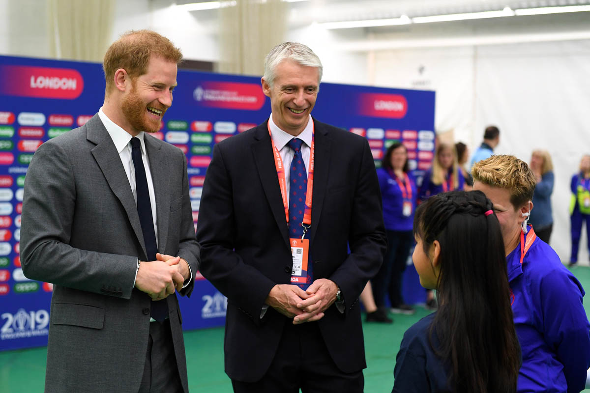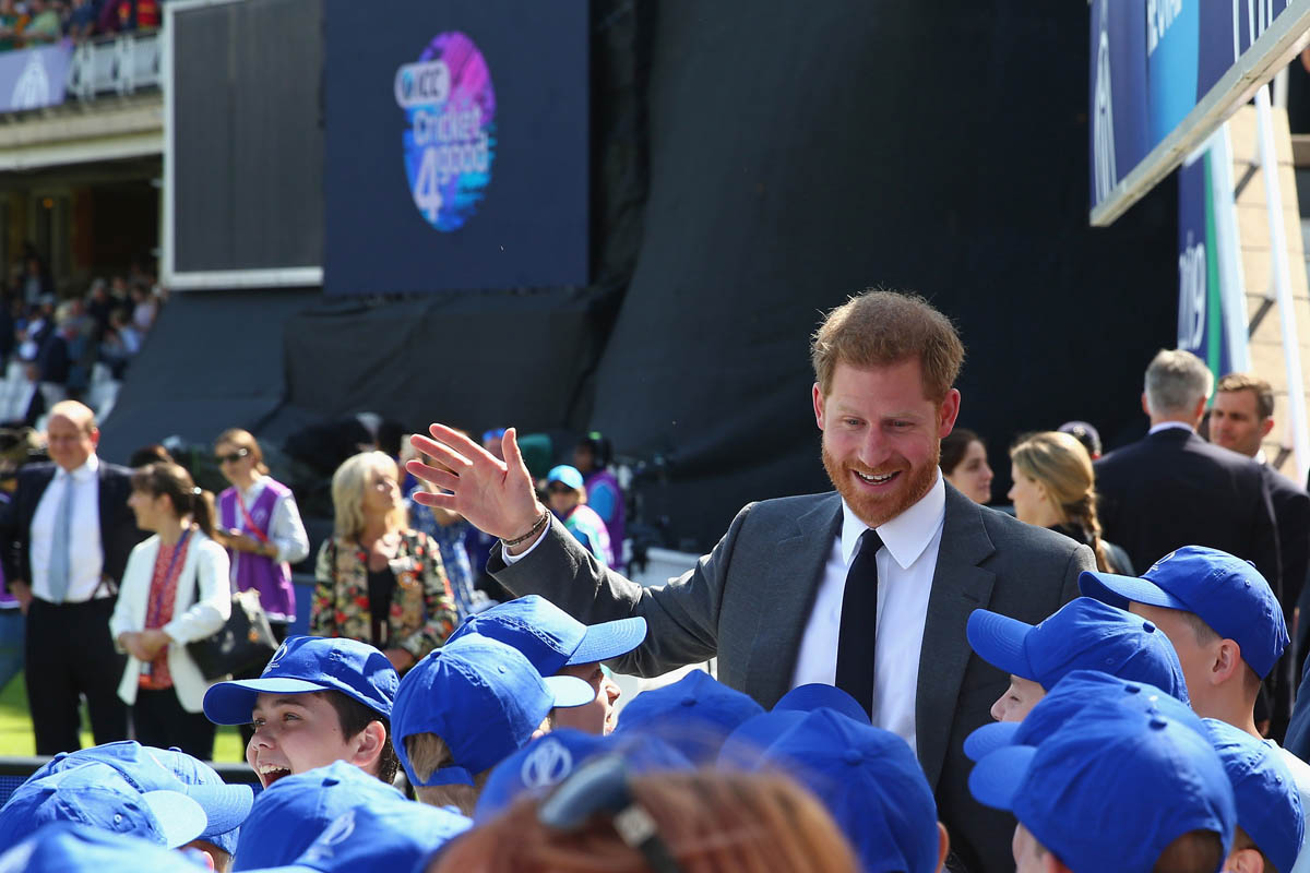 Today Harry was at the opening match of the ICC Cricket World Cup between England and South Africa, speaking at the ceremony and hanging out with the kids to encourage participation in the sport. It was a delight, as always on both sides. The youth were excited to meet him and he was excited to be with them.