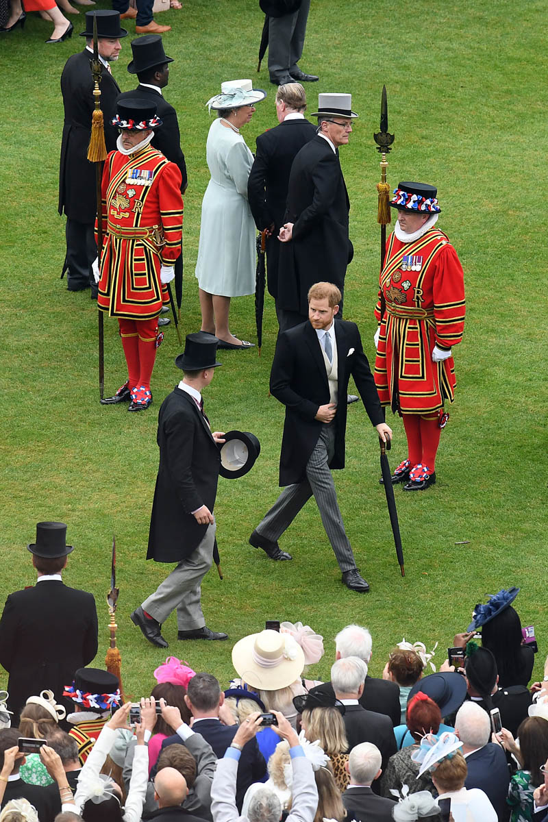 Prince Harry attended two events yesterday – first he joined Queen Elizabeth at Buckingham Palace to meet with the ICC Cricket World Cup team and then they went outside for the Garden Party. Harry and Meghan Markle attended the Garden Party last year shortly after their wedding. Meghan, of course, is currently on maternity leave, at home with Archie Harrison Mountbatten-Windsor.