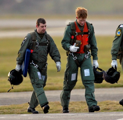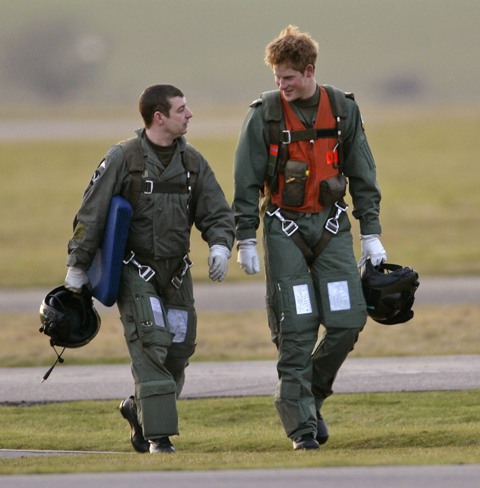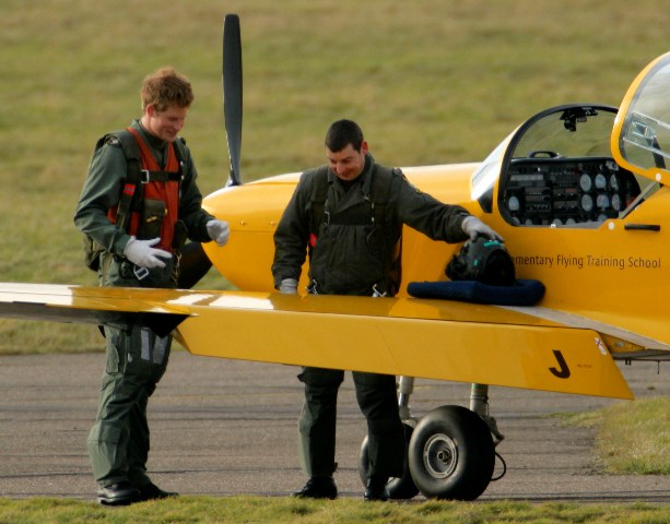 Hot Harry failed his pilot’s theory test. So apparently he’s getting extra lessons. Check him out, yesterday at the airfield looking relaxed and exuberant before taking to the skies. Hot Harry is hoping to fly helicopters in Afghanistan once his training is complete. Hot Harry is also getting schooled in racial awareness after his recent gaffes were made public.