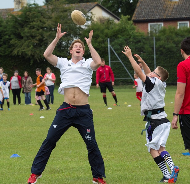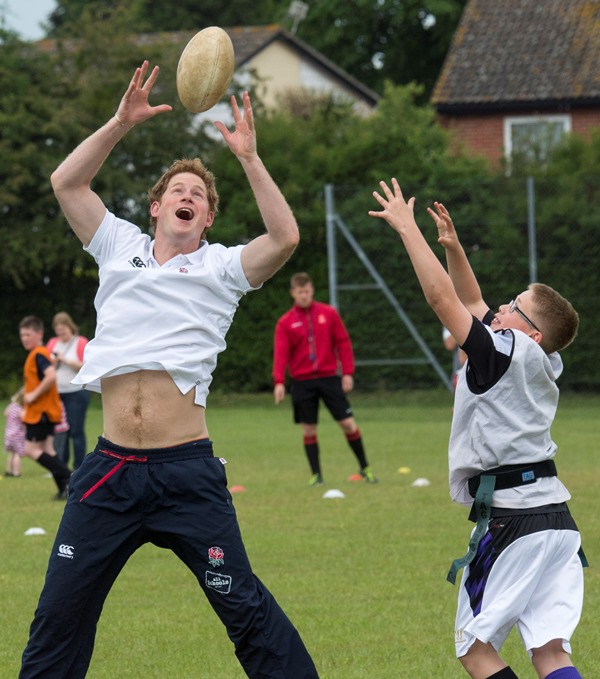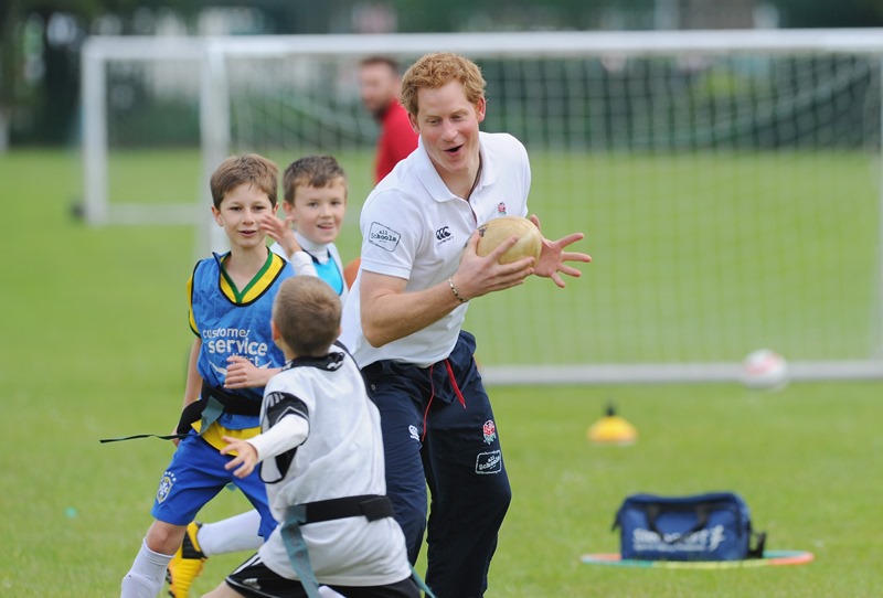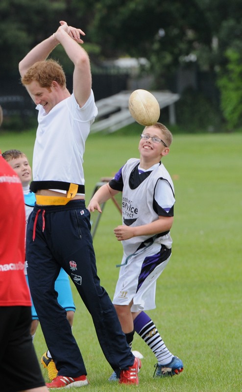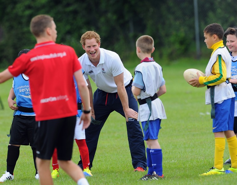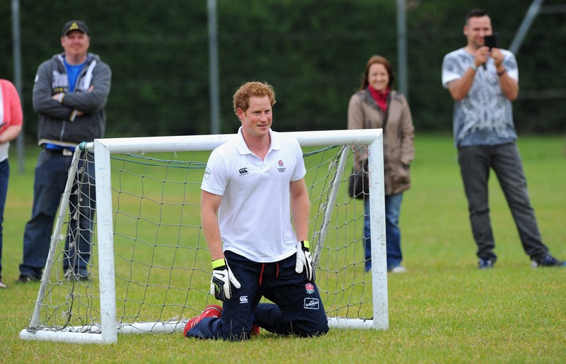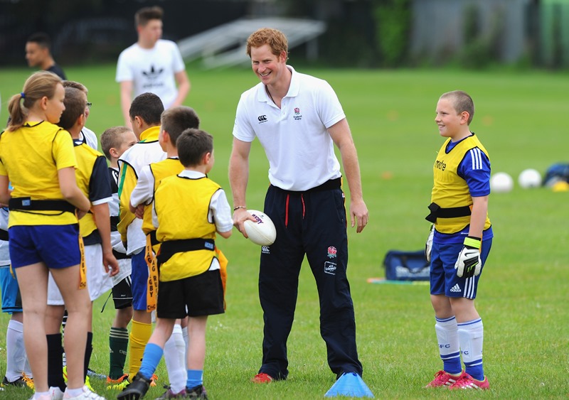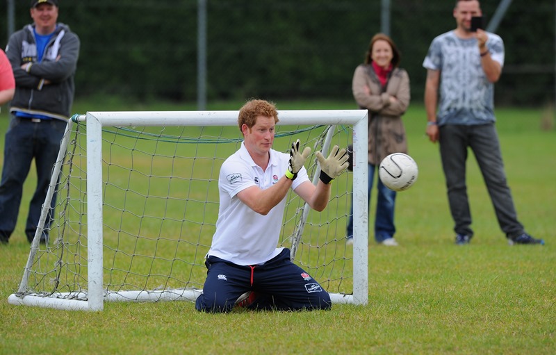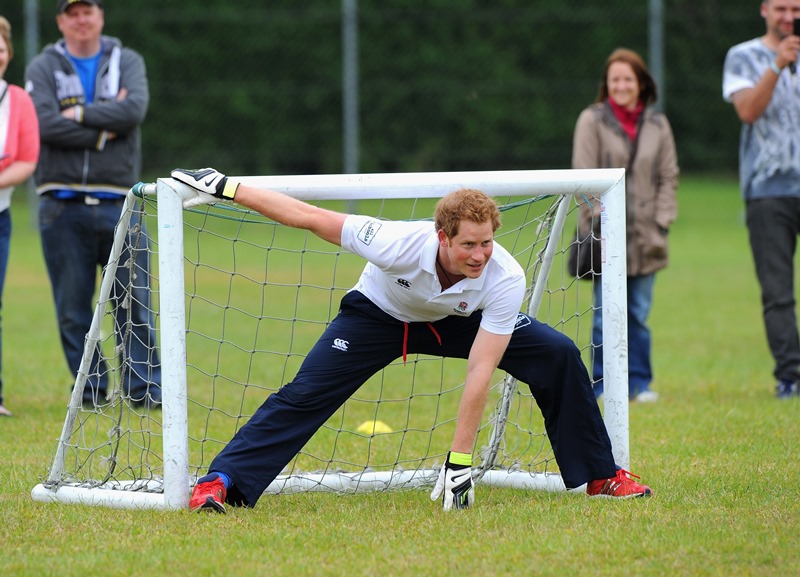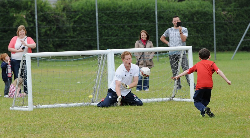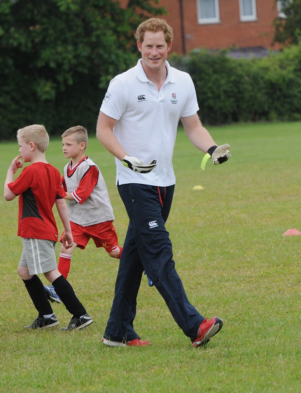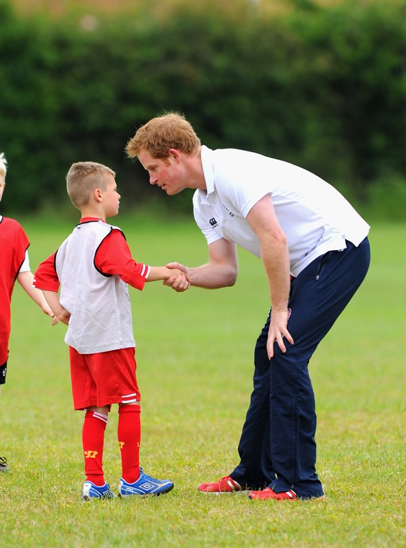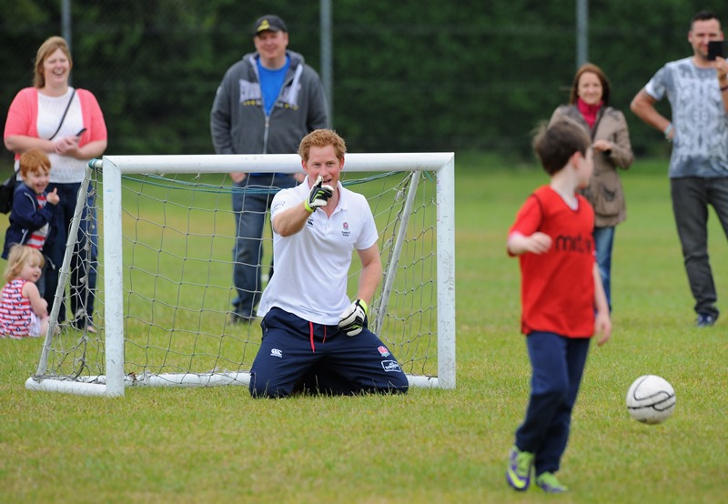 Prince Harry was out today at the Inspire Suffolk event in Ipswich, England. He wore a suit to say a few words and then later changed into play clothes to kick around in. Very practical. Unlike the last time he was hanging out in a playground and couldn't get out of his suit and tie.